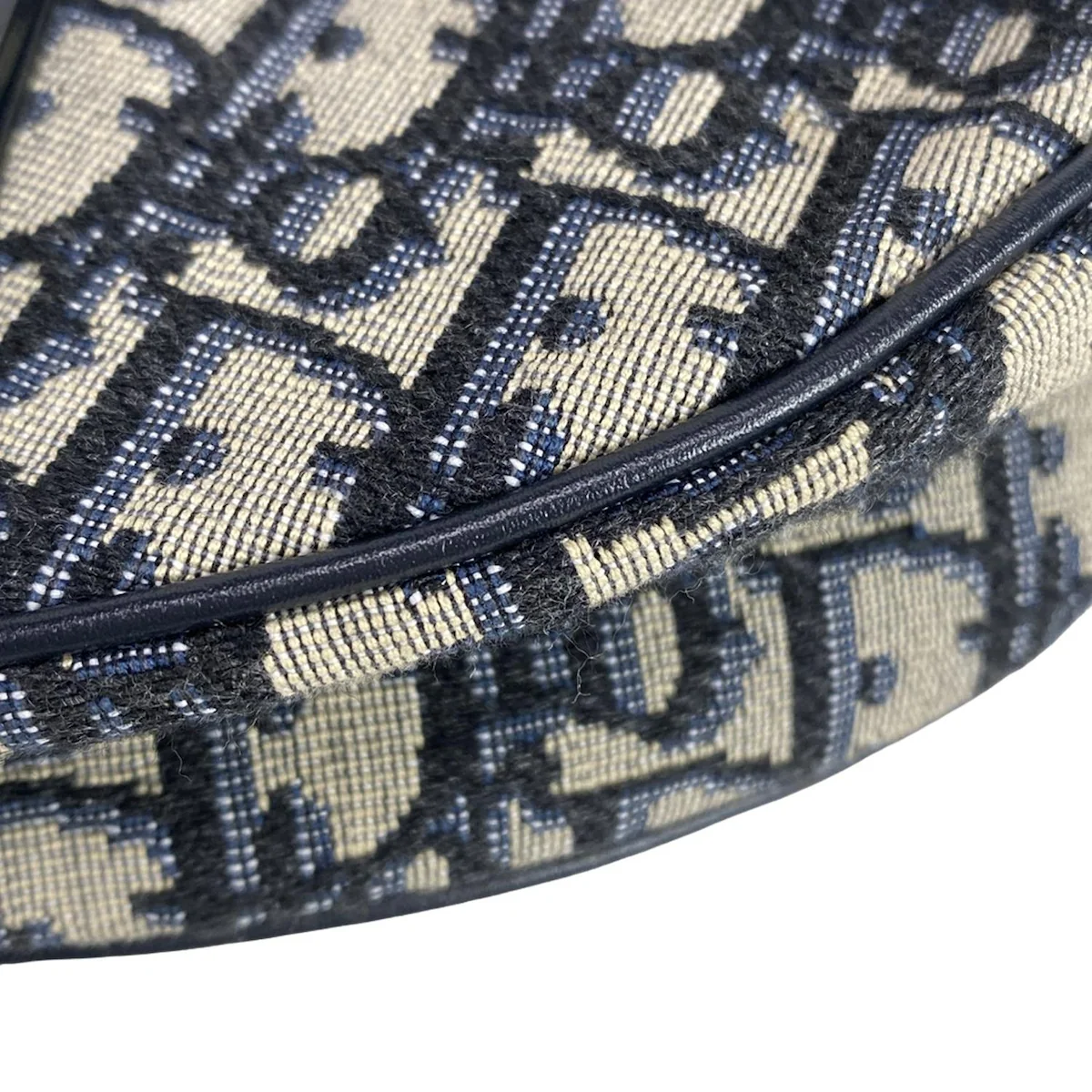 Descubra la elegancia del bolso de hombro Saddle Bag DIOR de piel jacquard azul marino y crema. Este versátil accesorio es perfecto para quienes aprecian la combinación de estilo y funcionalidad.