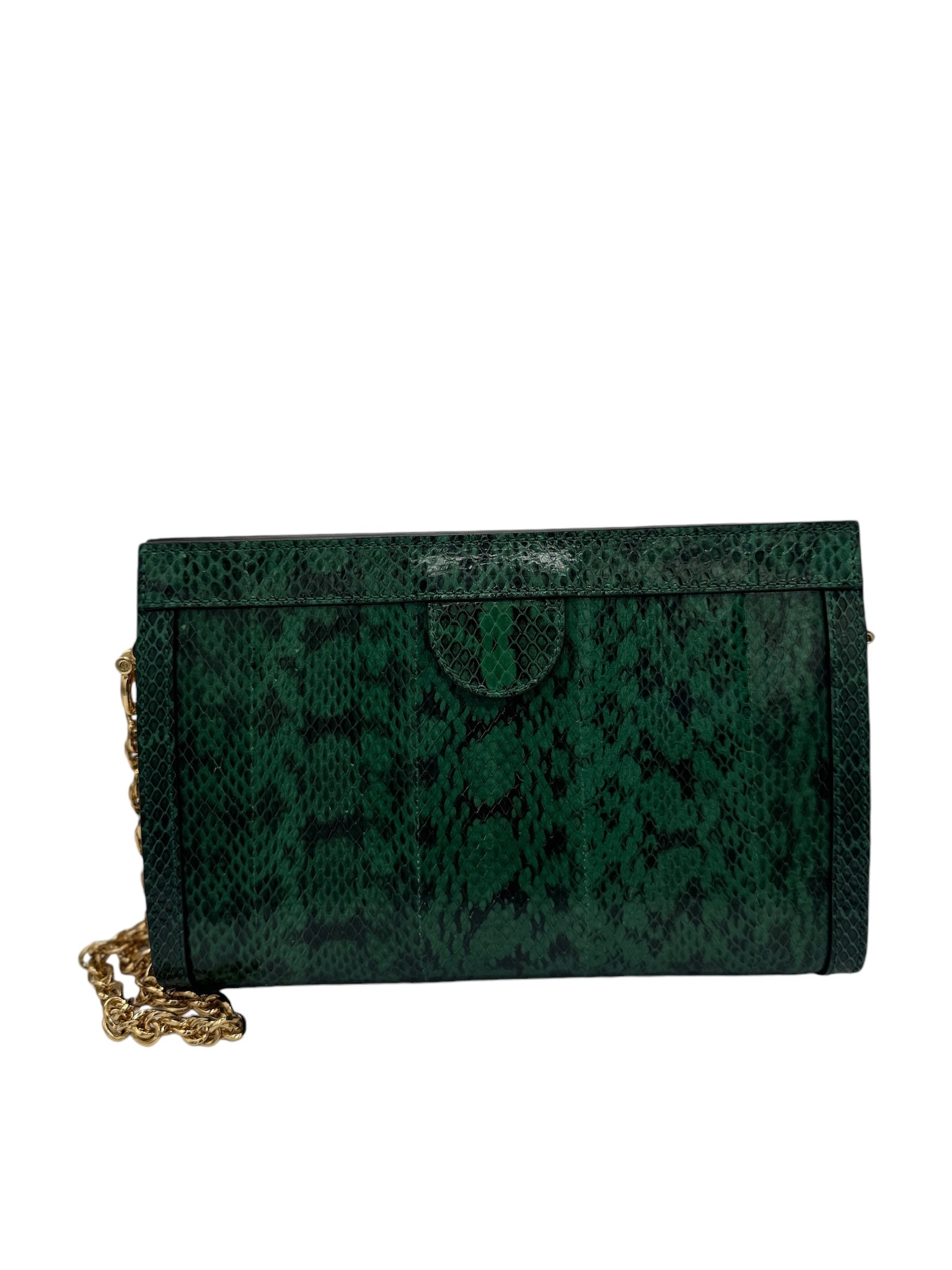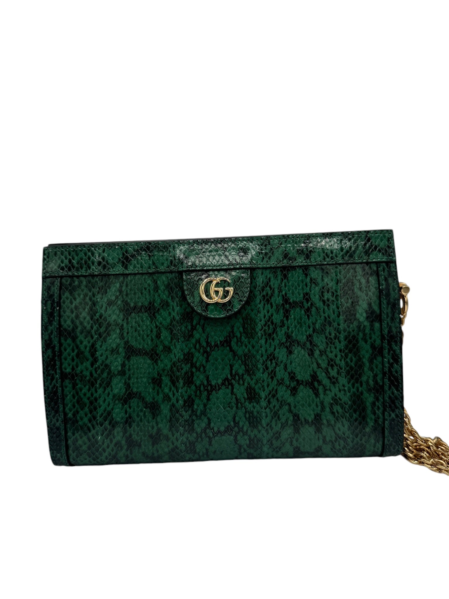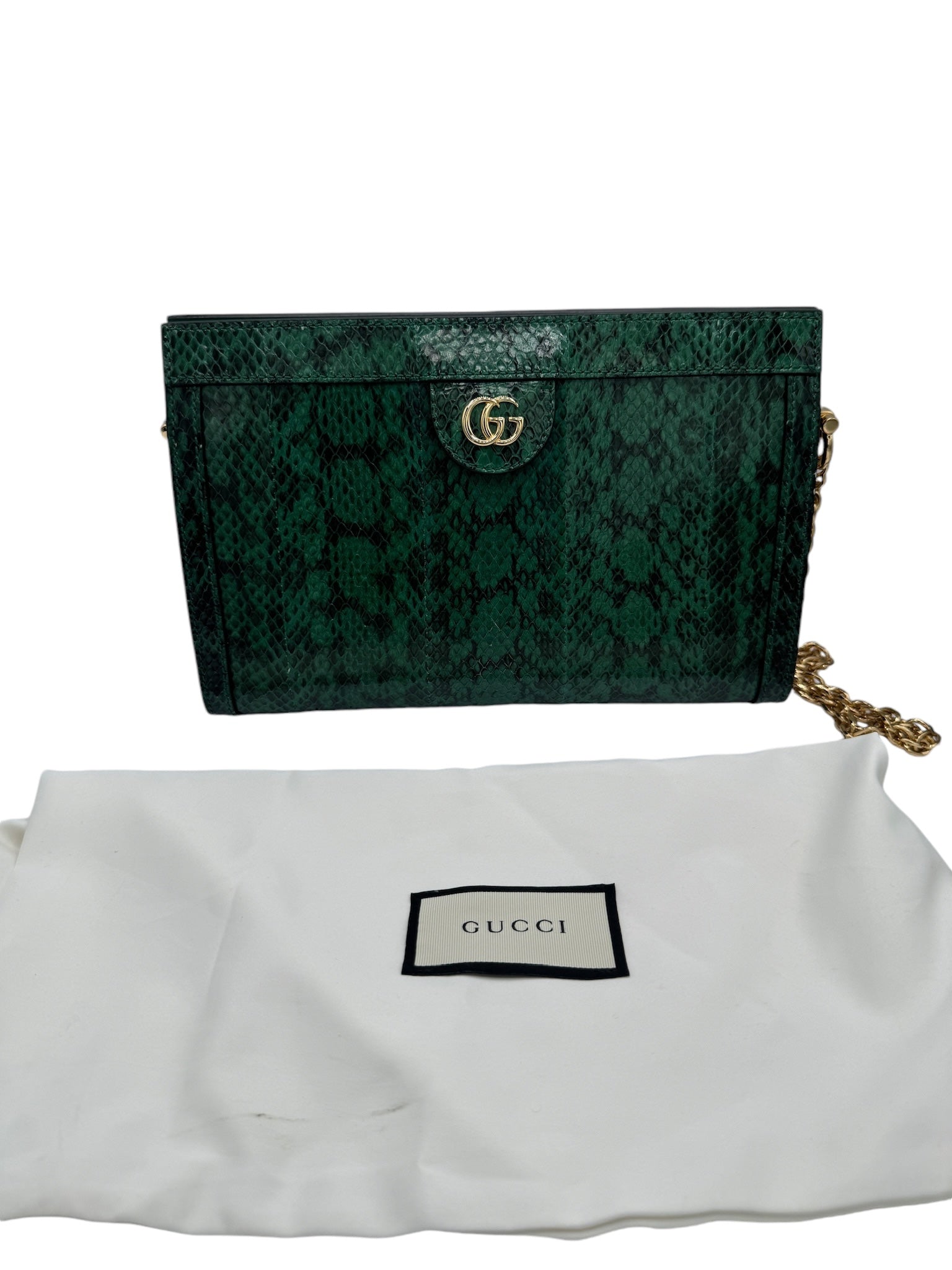 Presentamos el bolso de hombro con cadena Ophidia de segunda mano en una combinación de colores verde y neutro espectacular. Fabricado con lujosos materiales de piel de serpiente y cuero y acentuado con herrajes dorados, este bolso irradia una elegancia exótica. Viene con una funda guardapolvo para mayor comodidad. Realza tu estilo con esta pequeña pieza llamativa.
