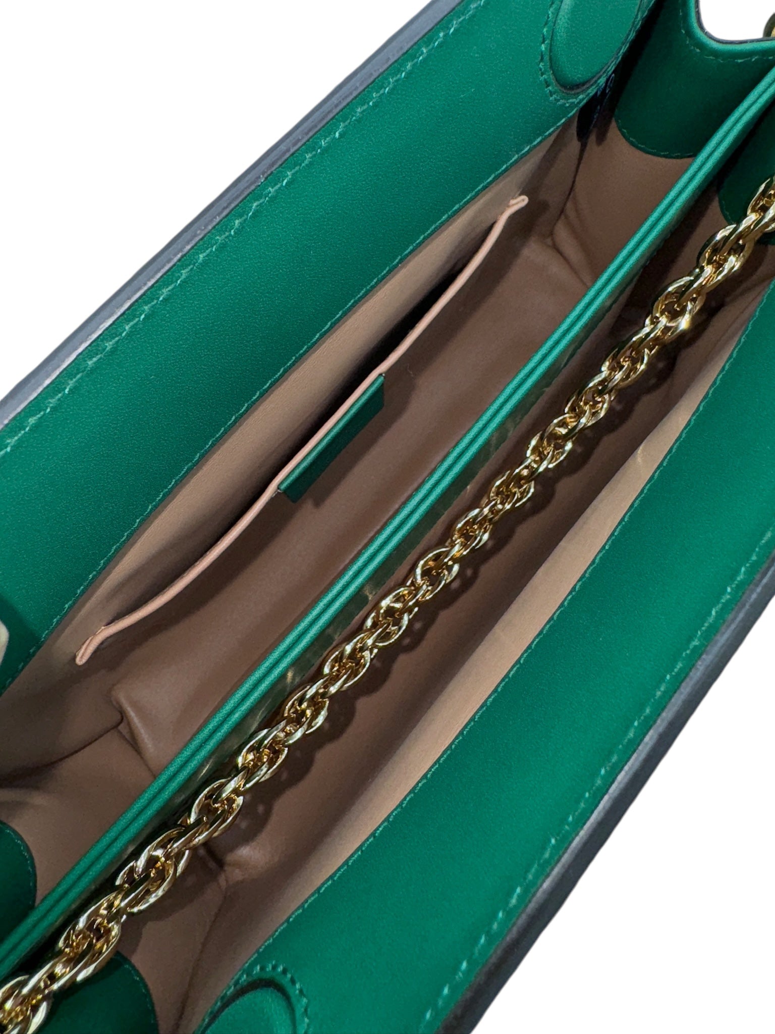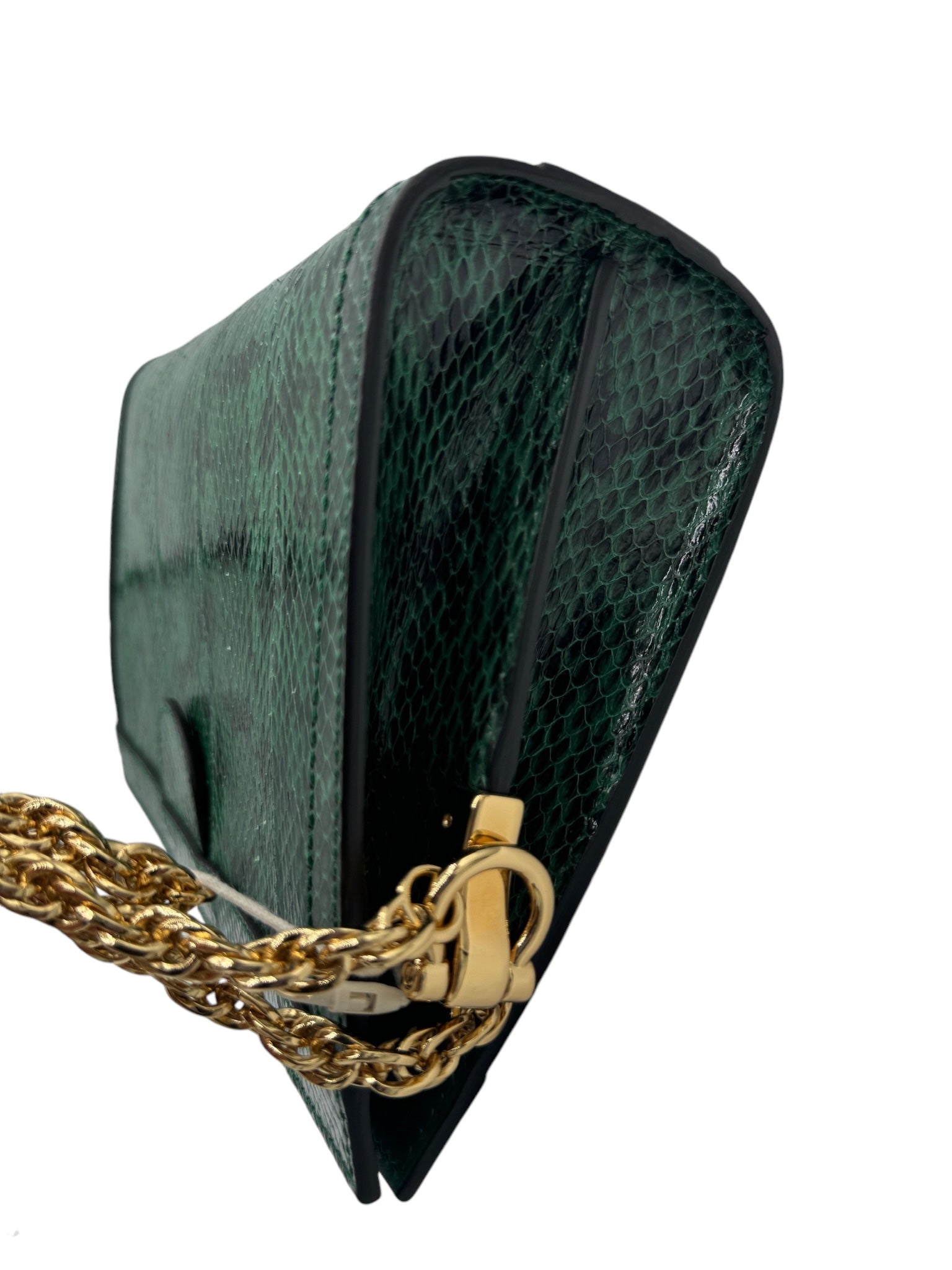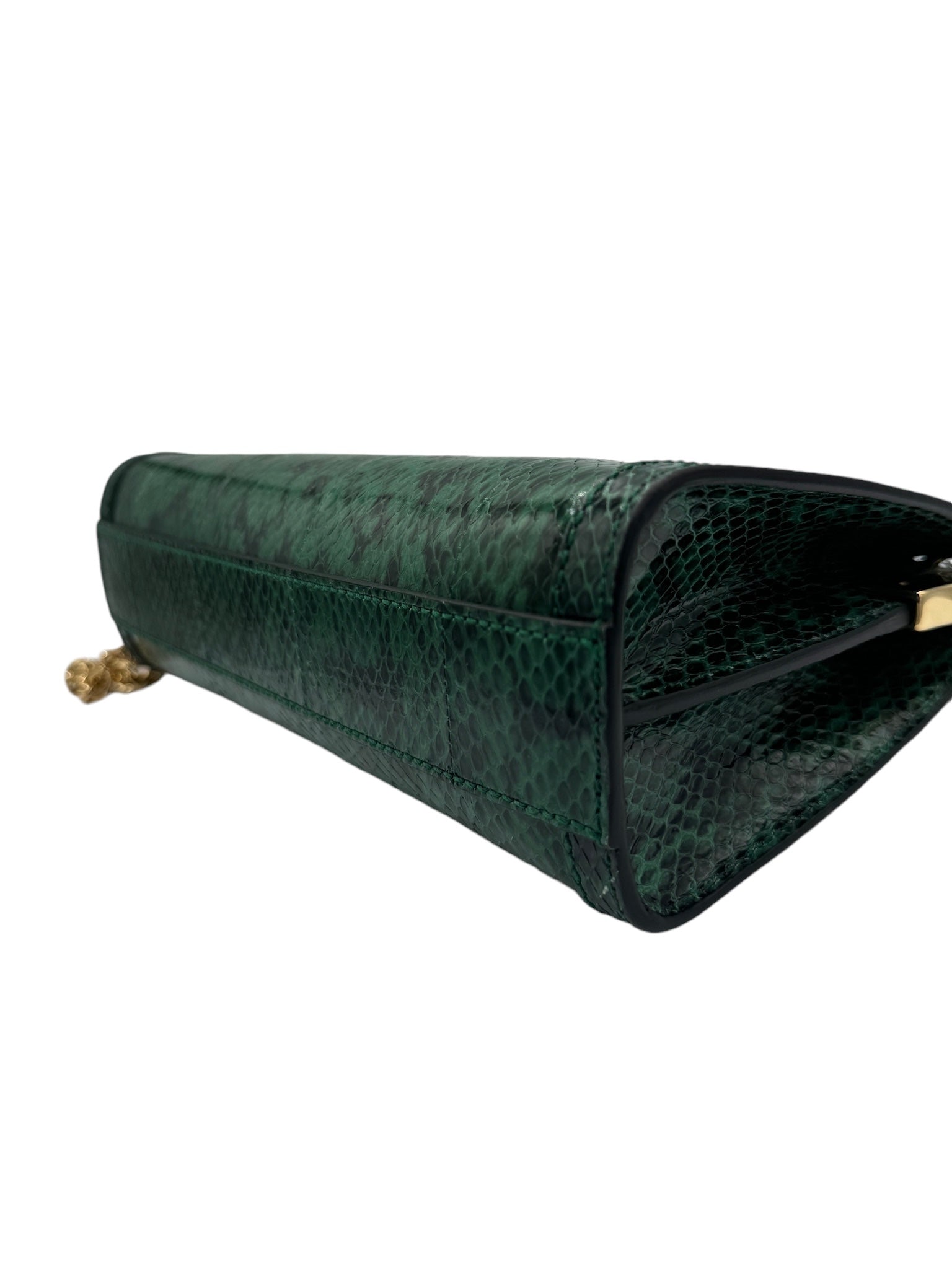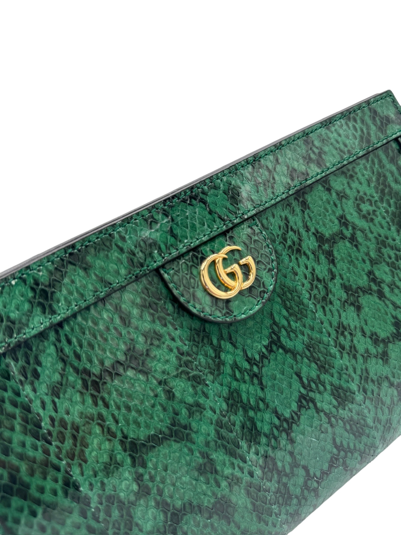 Presentamos el bolso de hombro con cadena Ophidia de segunda mano en una combinación de colores verde y neutro espectacular. Fabricado con lujosos materiales de piel de serpiente y cuero y acentuado con herrajes dorados, este bolso irradia una elegancia exótica. Viene con una funda guardapolvo para mayor comodidad. Realza tu estilo con esta pequeña pieza llamativa.