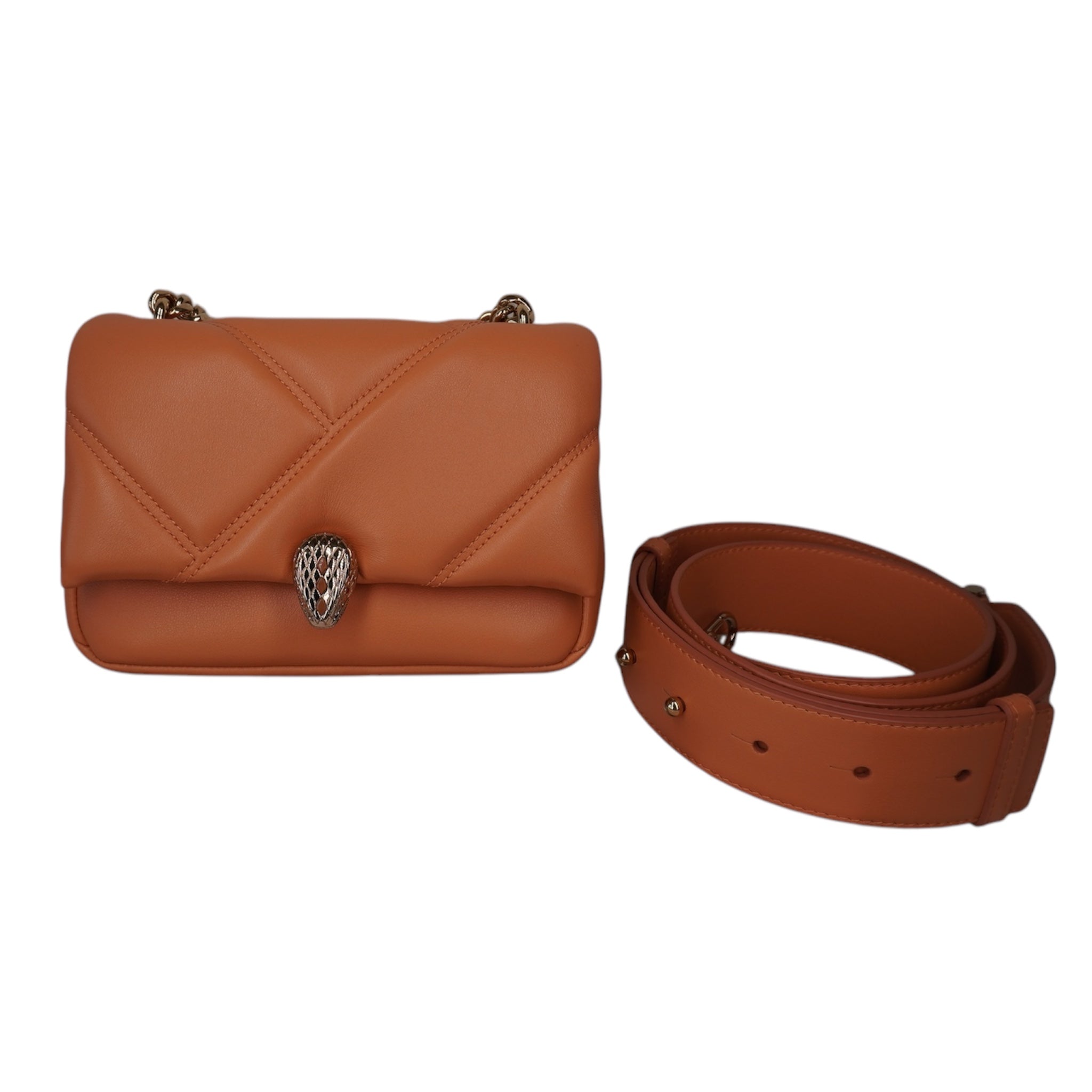 Descubra la elegancia del bolso Serpenti Forever de piel de becerro rosa y naranja de BVLGARI, una combinación perfecta de estilo y funcionalidad. Este bolso está diseñado para realzar sus accesorios y garantizar su practicidad.