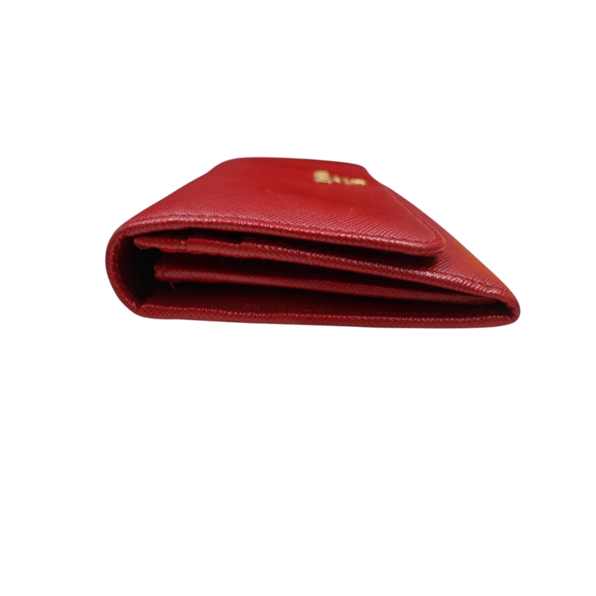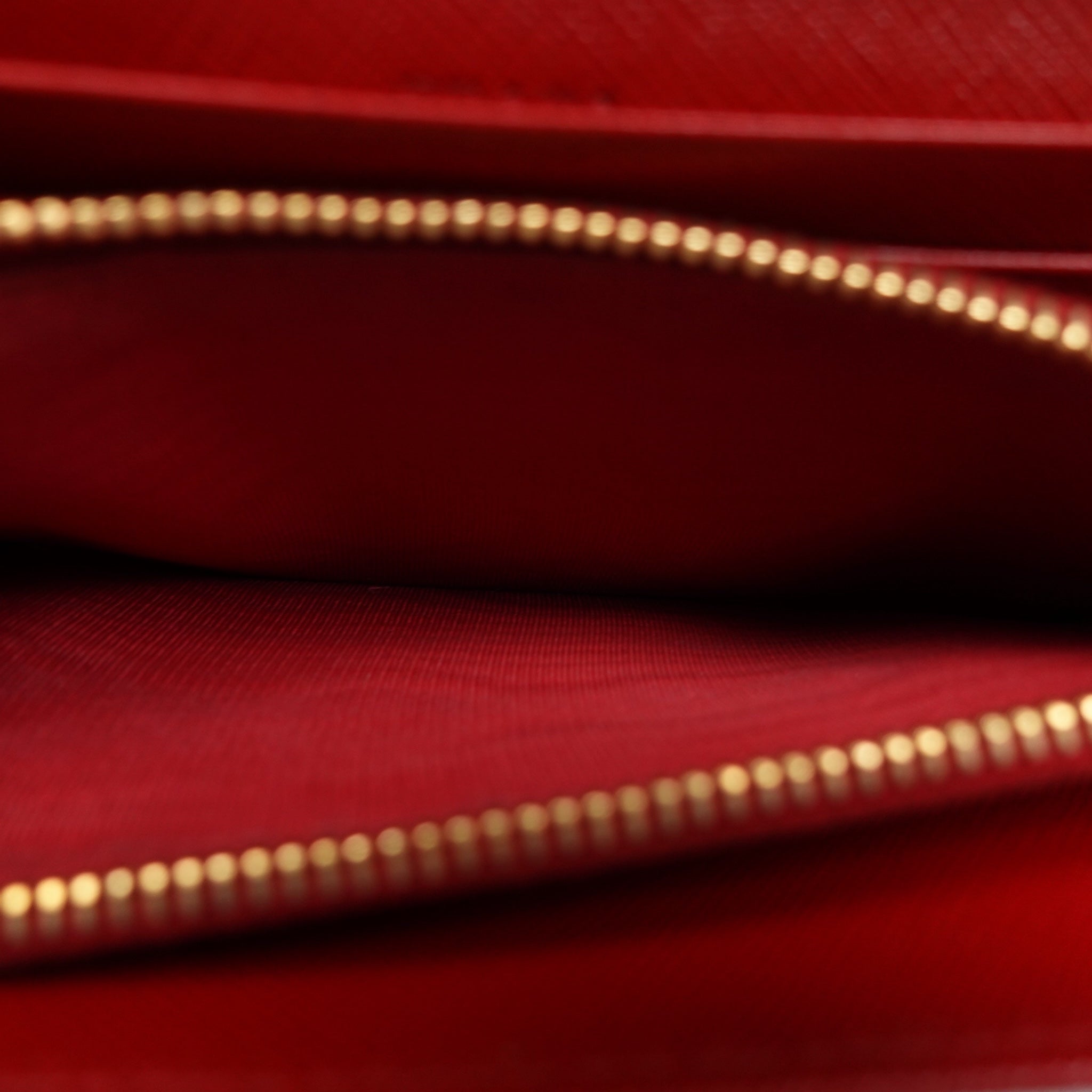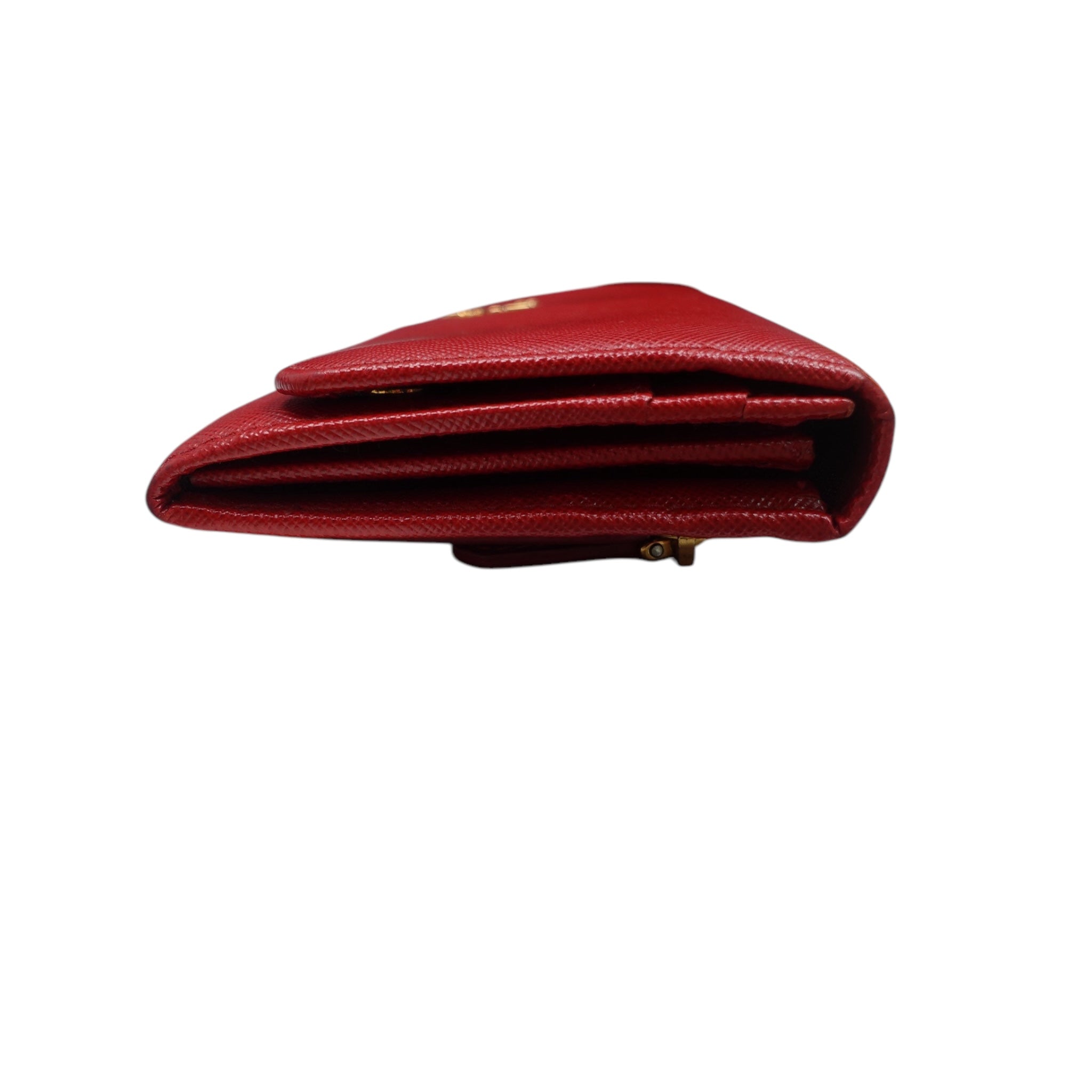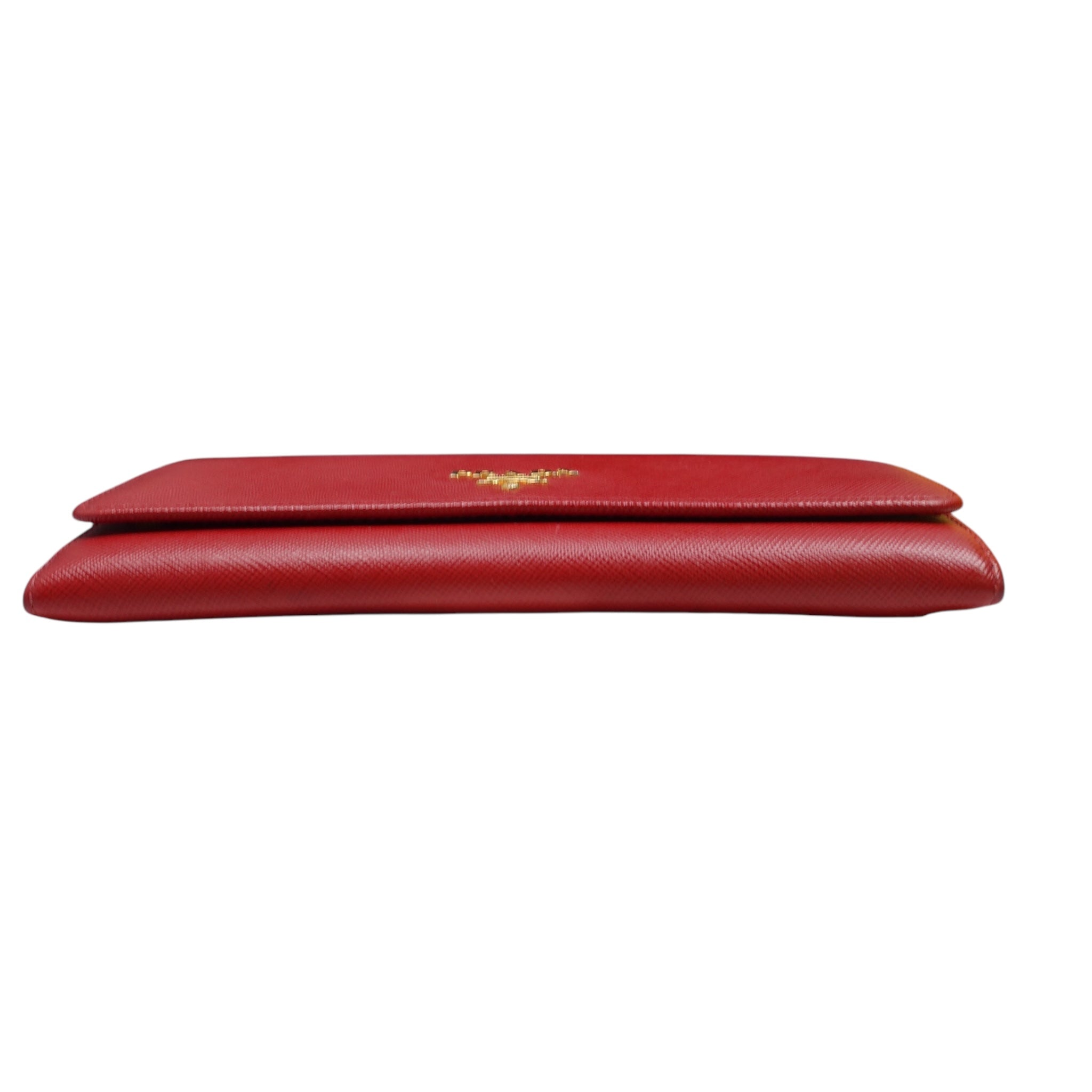 Mejore sus accesorios con la billetera larga continental de cuero saffiano rojo de PRADA, donde el lujo se combina con la practicidad.