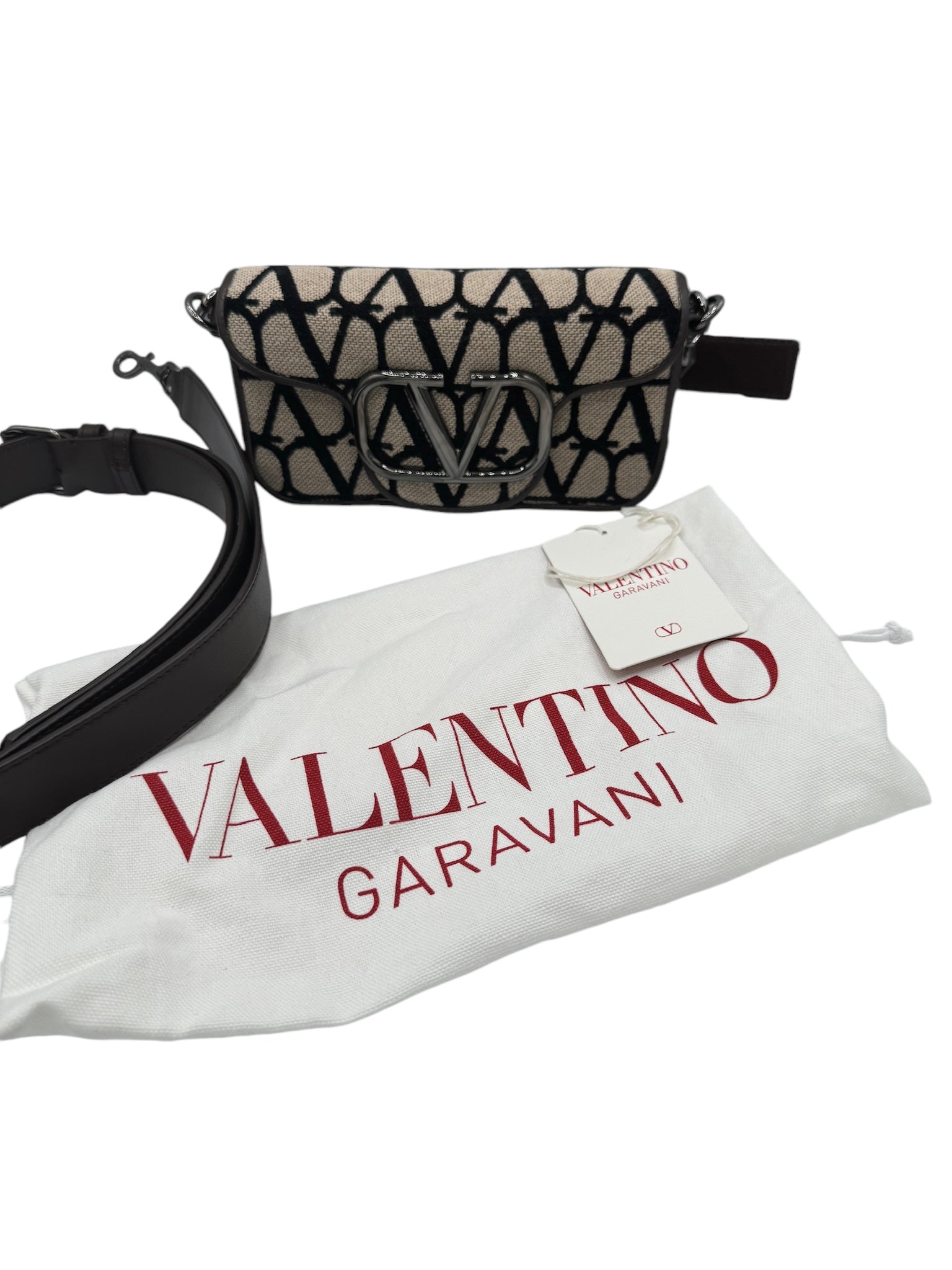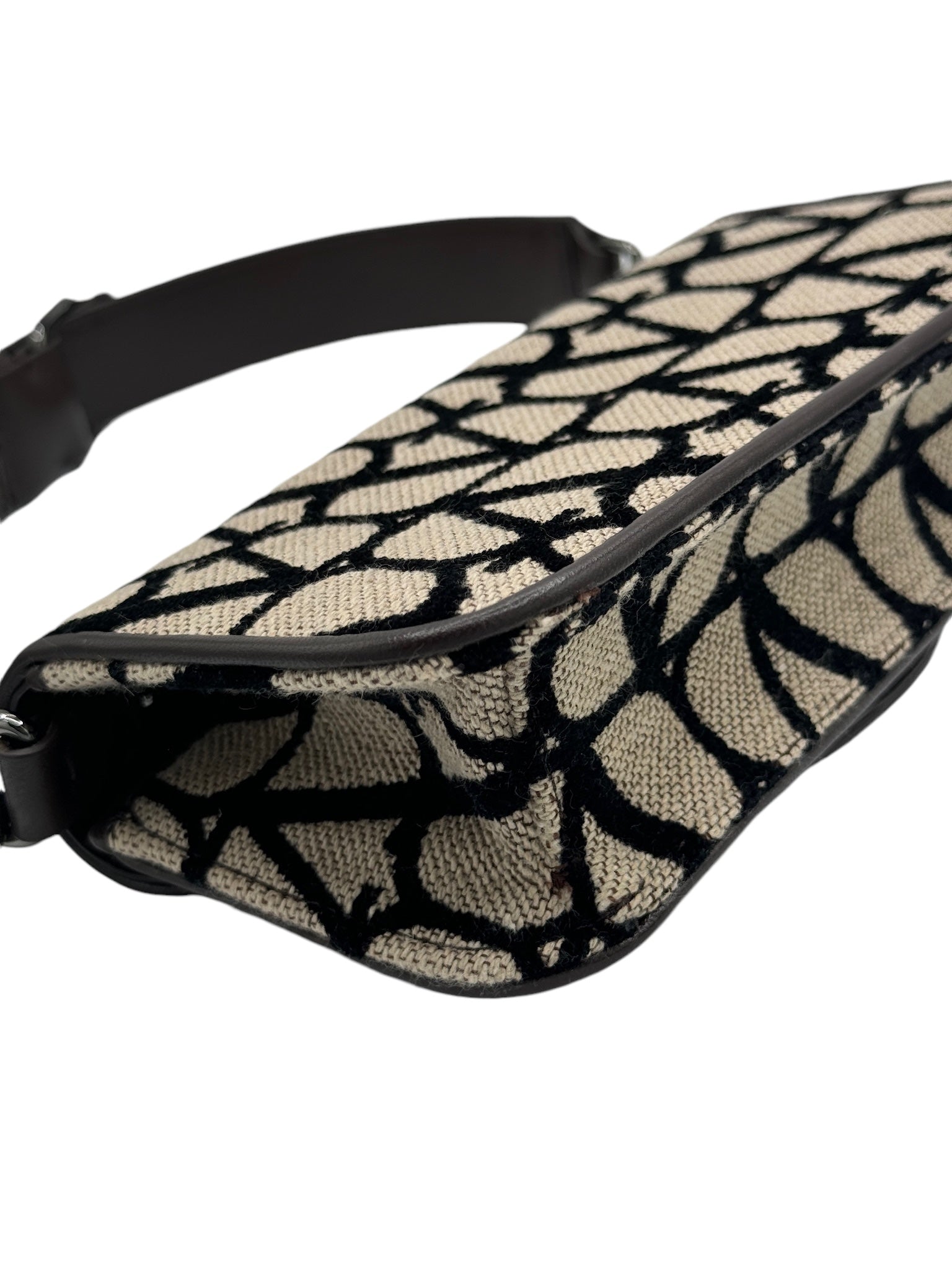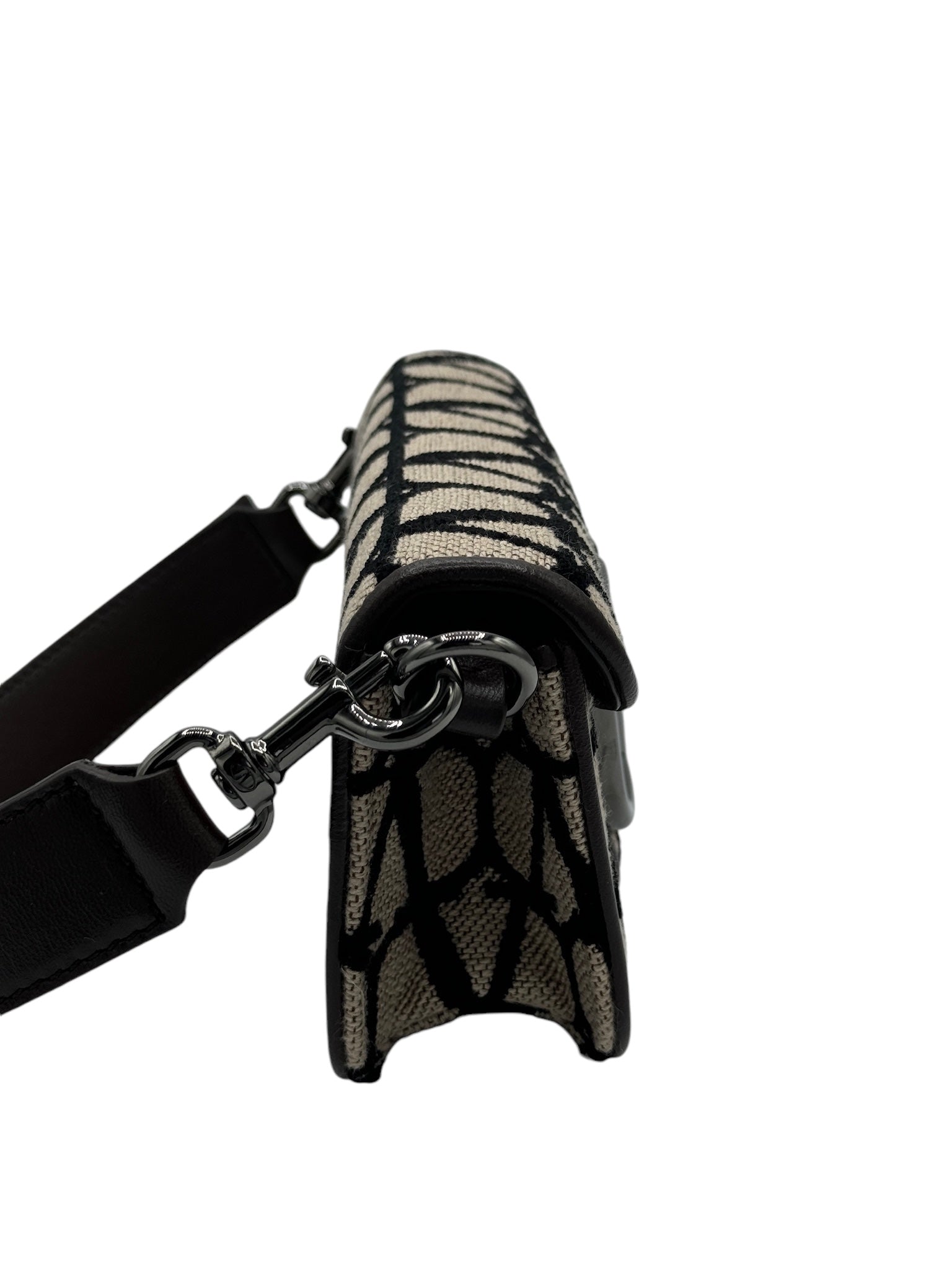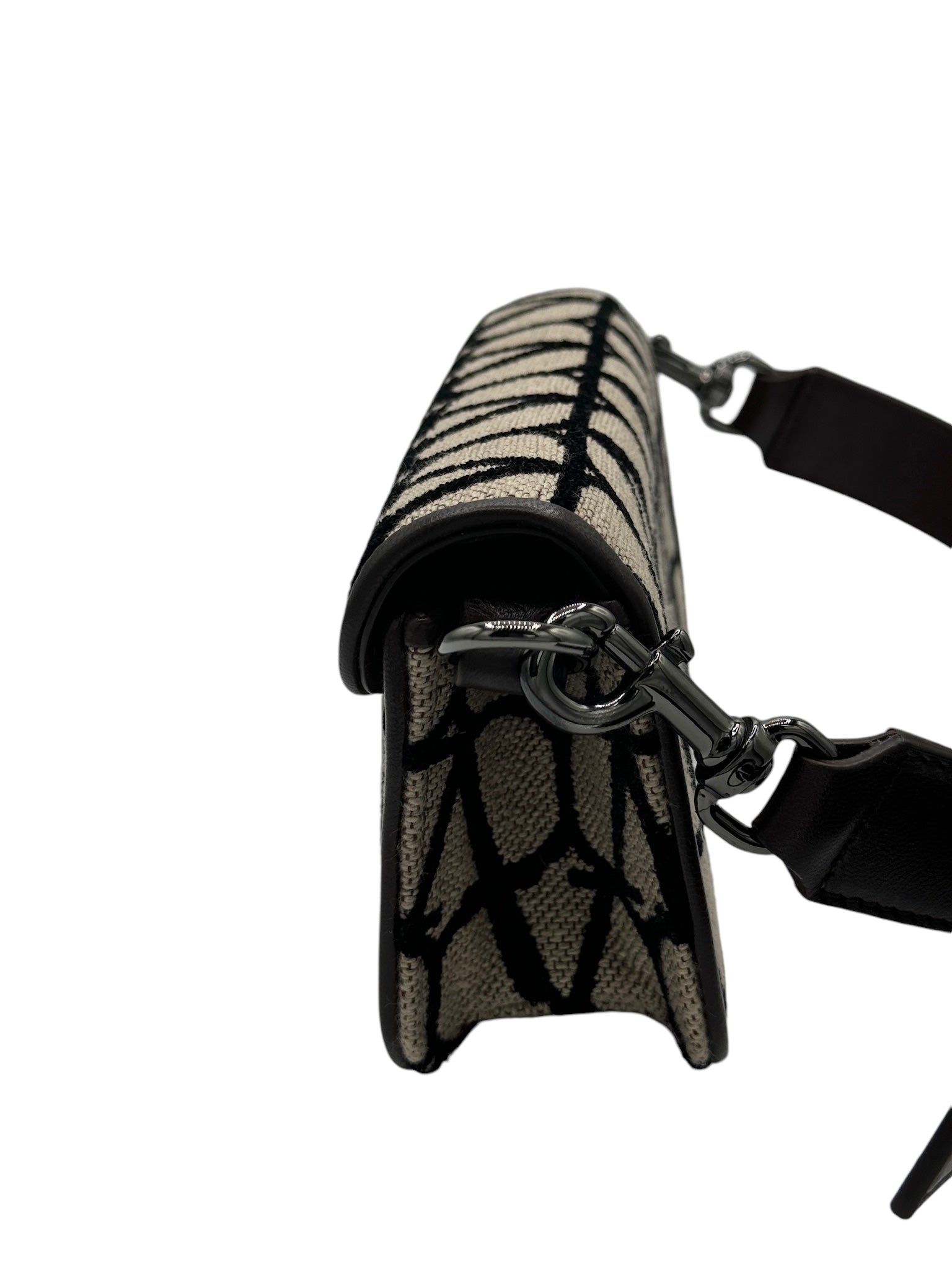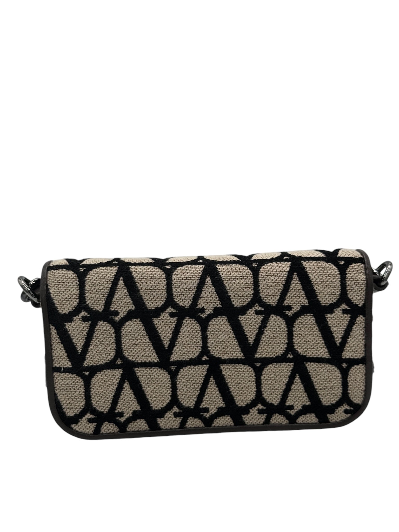 Este minibolso de hombro Toile Iconograph Naturale Nero de Valentino Rocco usado es un accesorio elegante y versátil, perfecto para el uso diario.