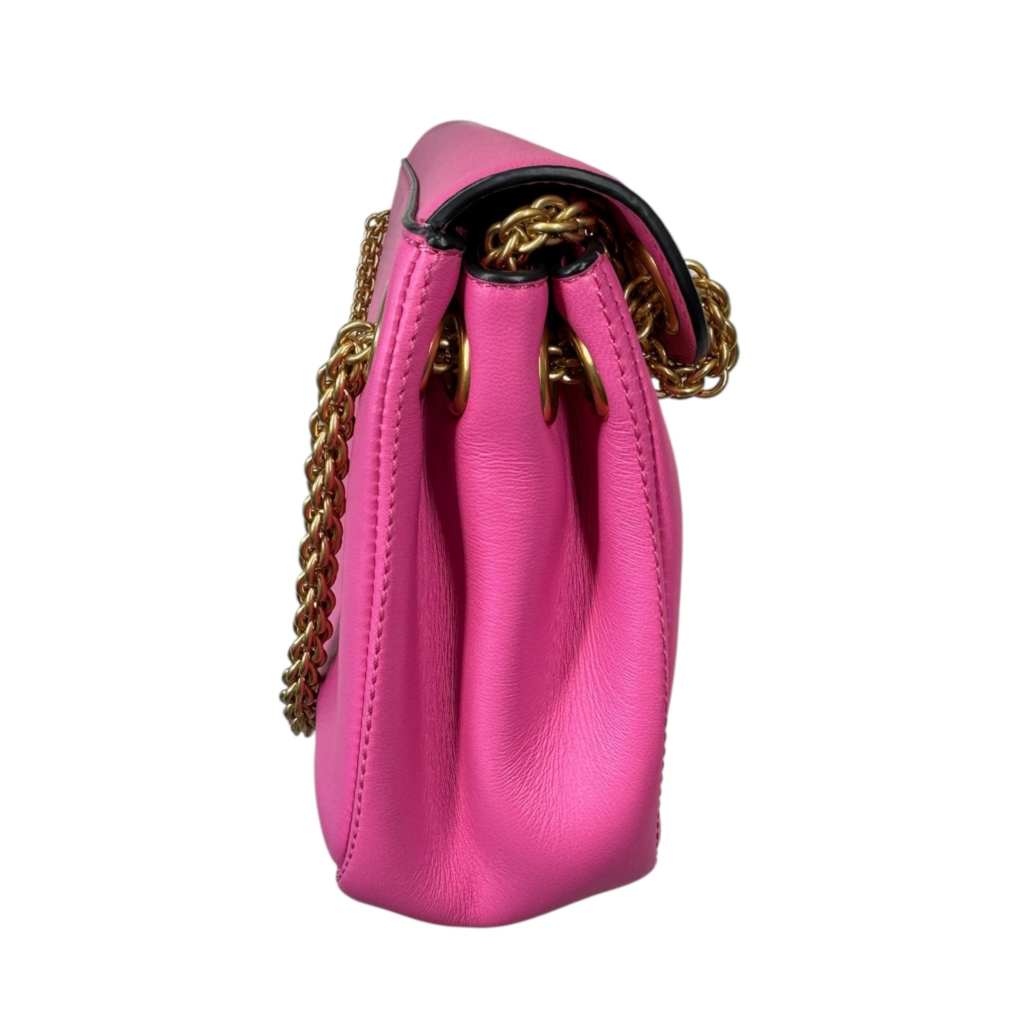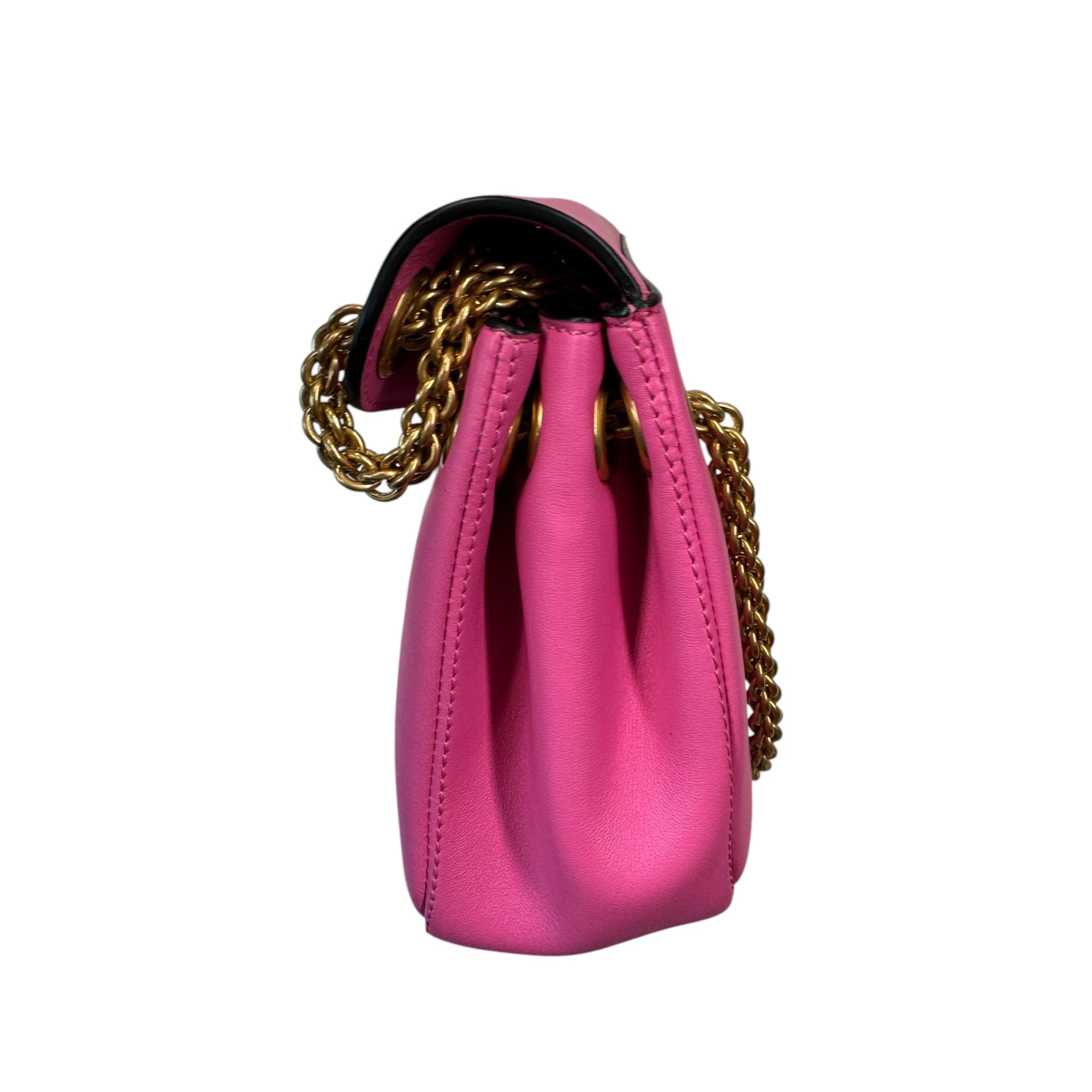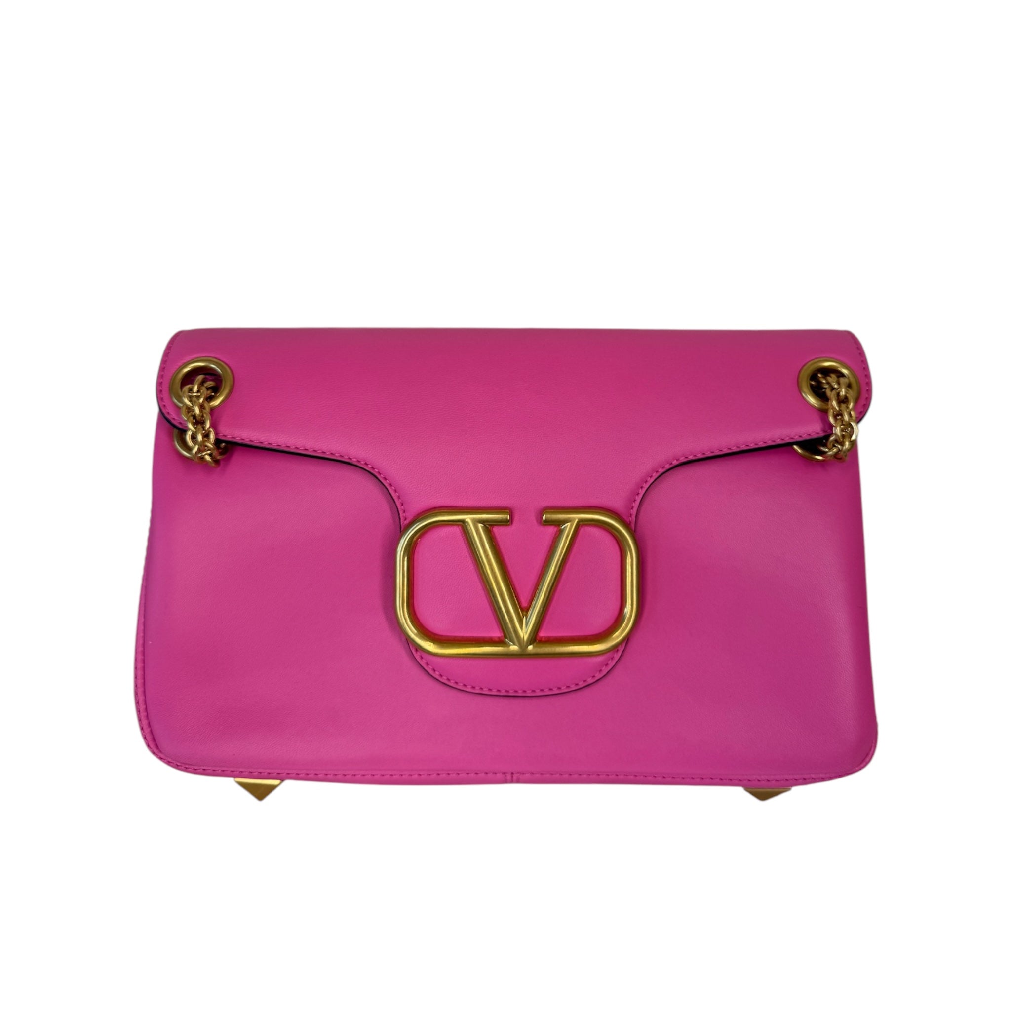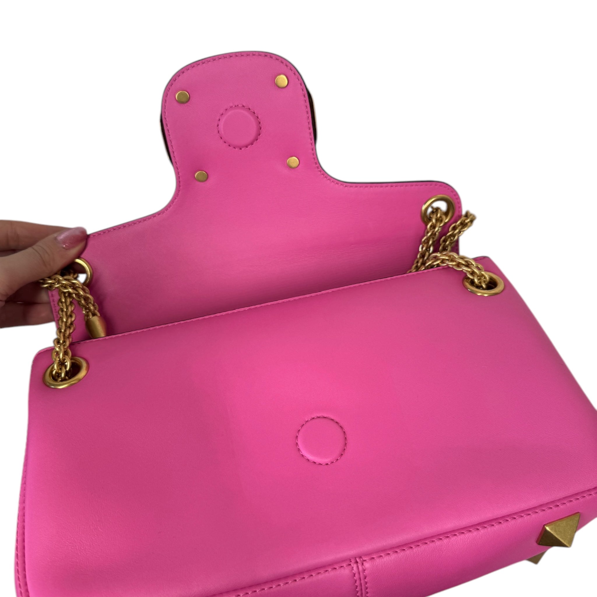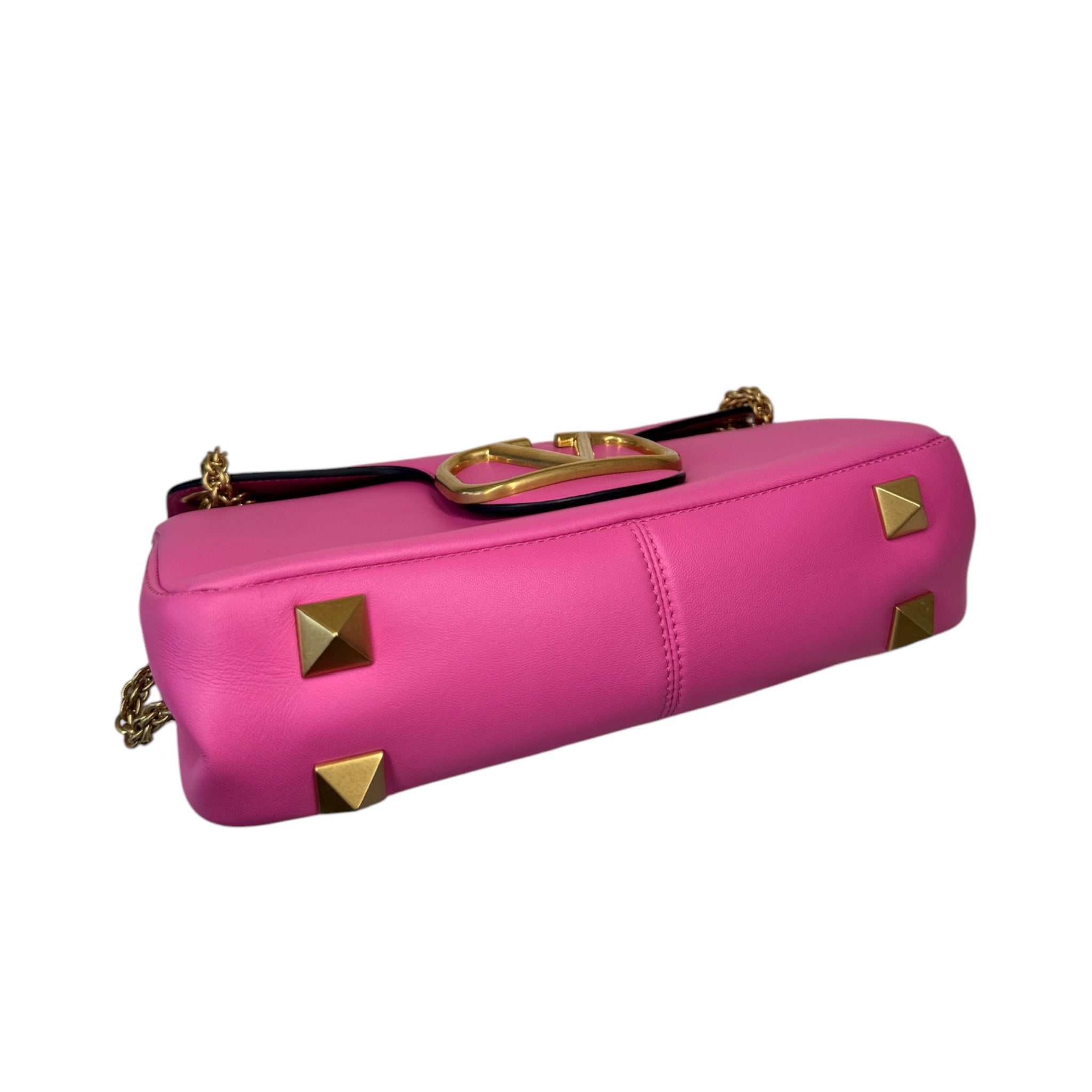 Bolso de hombro rosa Barbie con logo en V y tachuelas USADO