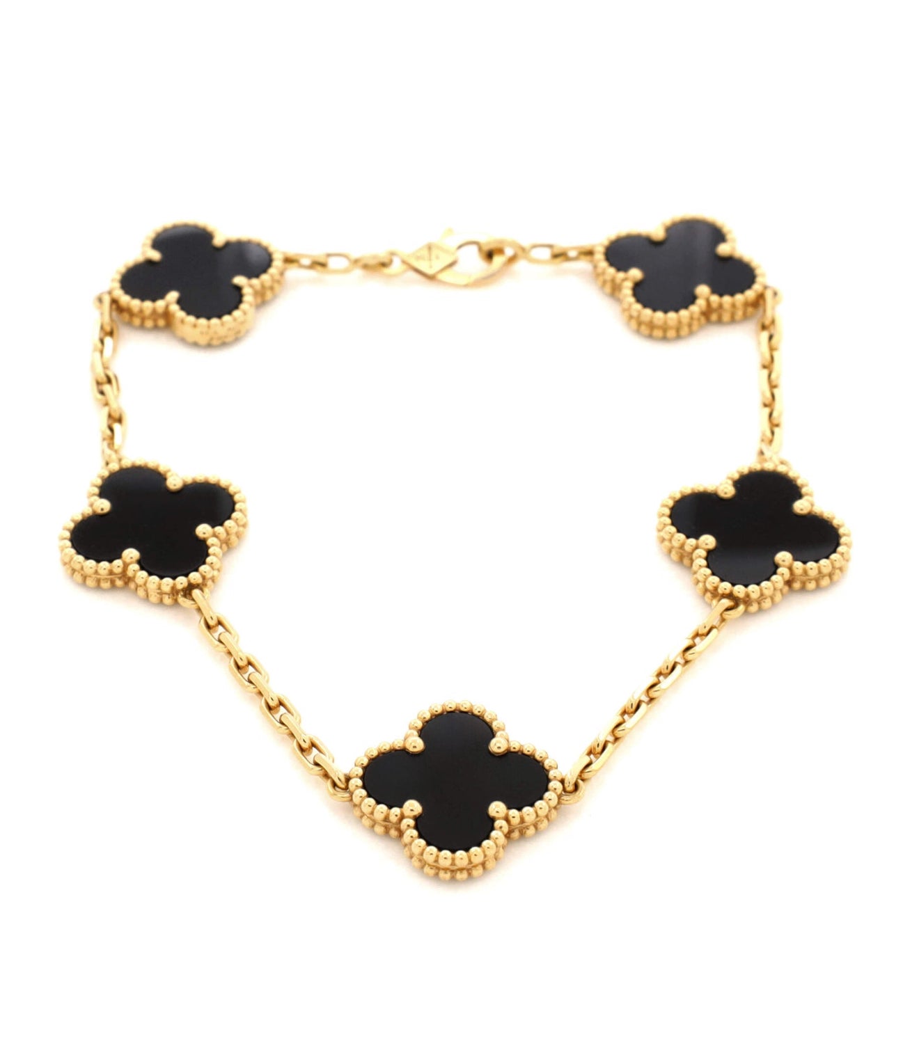 Pulsera VCA Vintage Alhambra 5 motivos Oro amarillo 18k y ónix de segunda mano