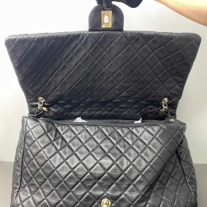PREOWNED- CC Calfskin Quilted XXL Travel Flap Bag – Black PART 2