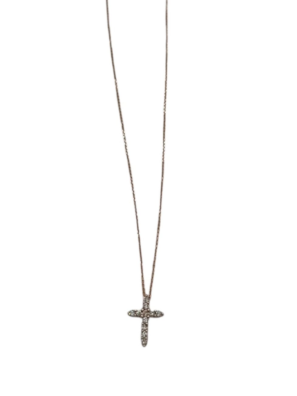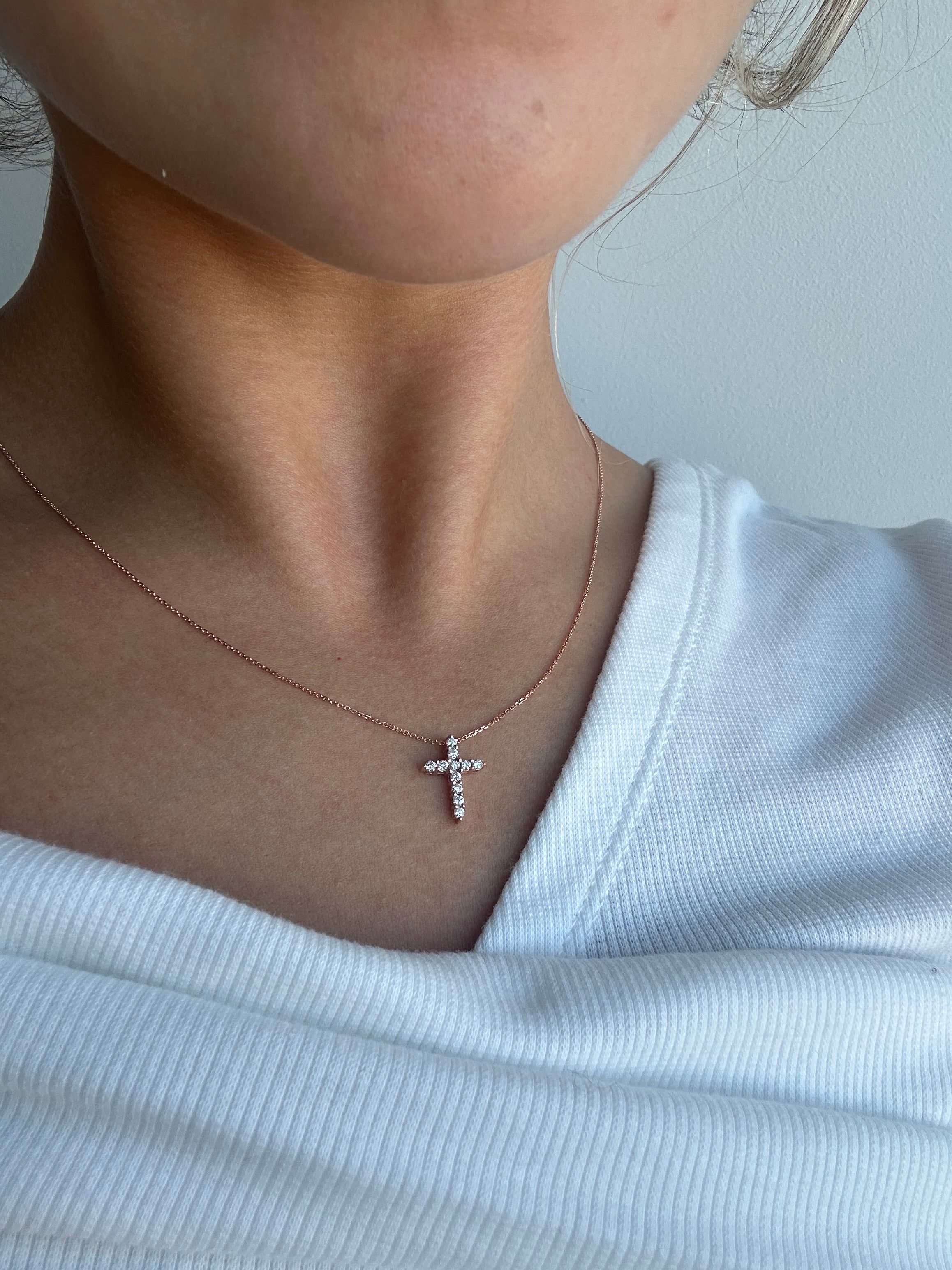 Collar de oro rosa con 11 diamantes naturales y colgante de cruz
