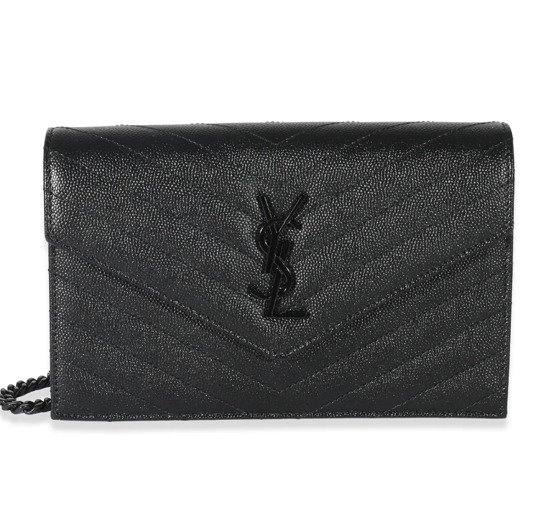 SAINT LAURENT - Cartera tipo sobre con cadena Matelassé Grain De Poudre Cassandre en negro