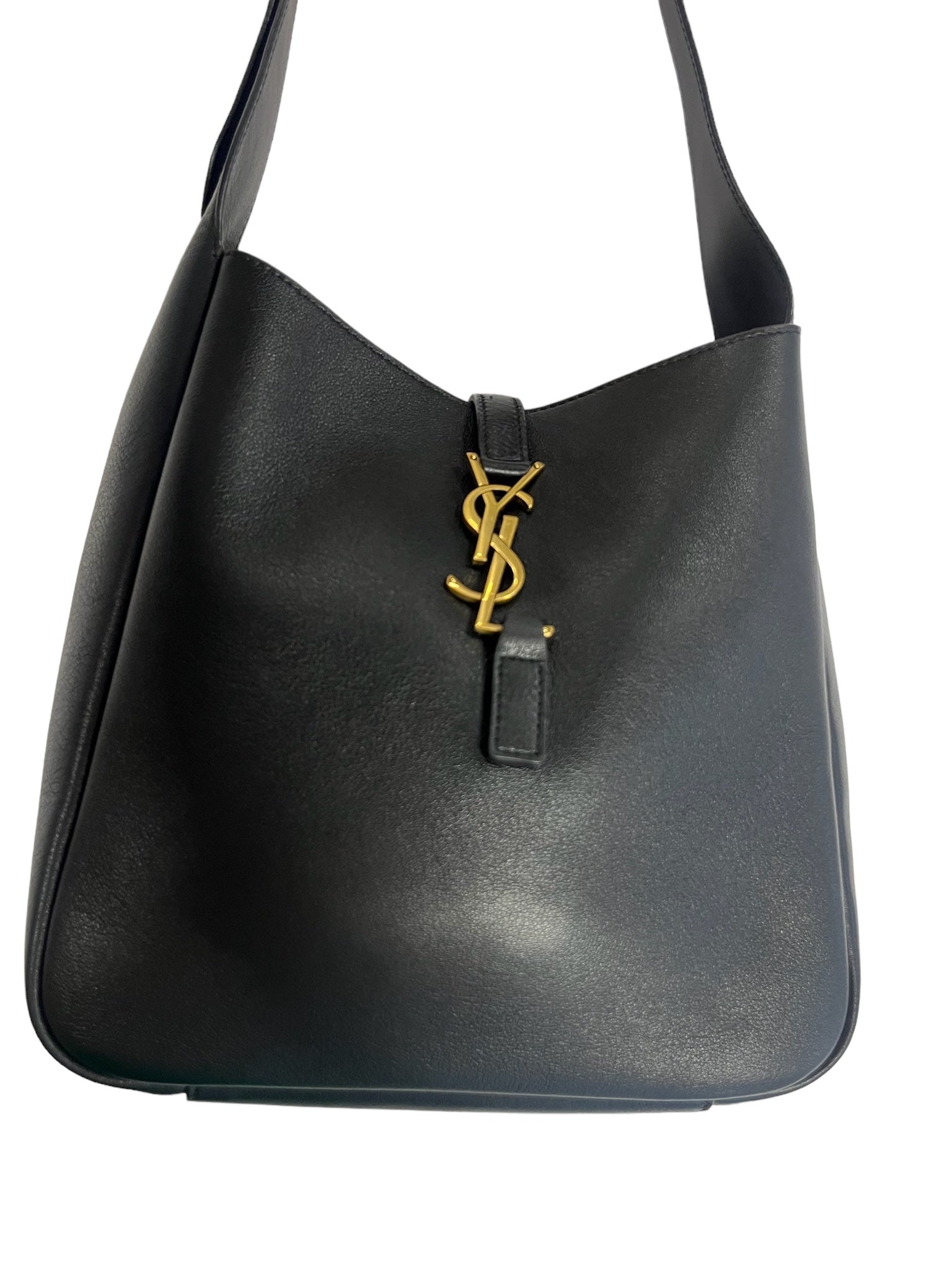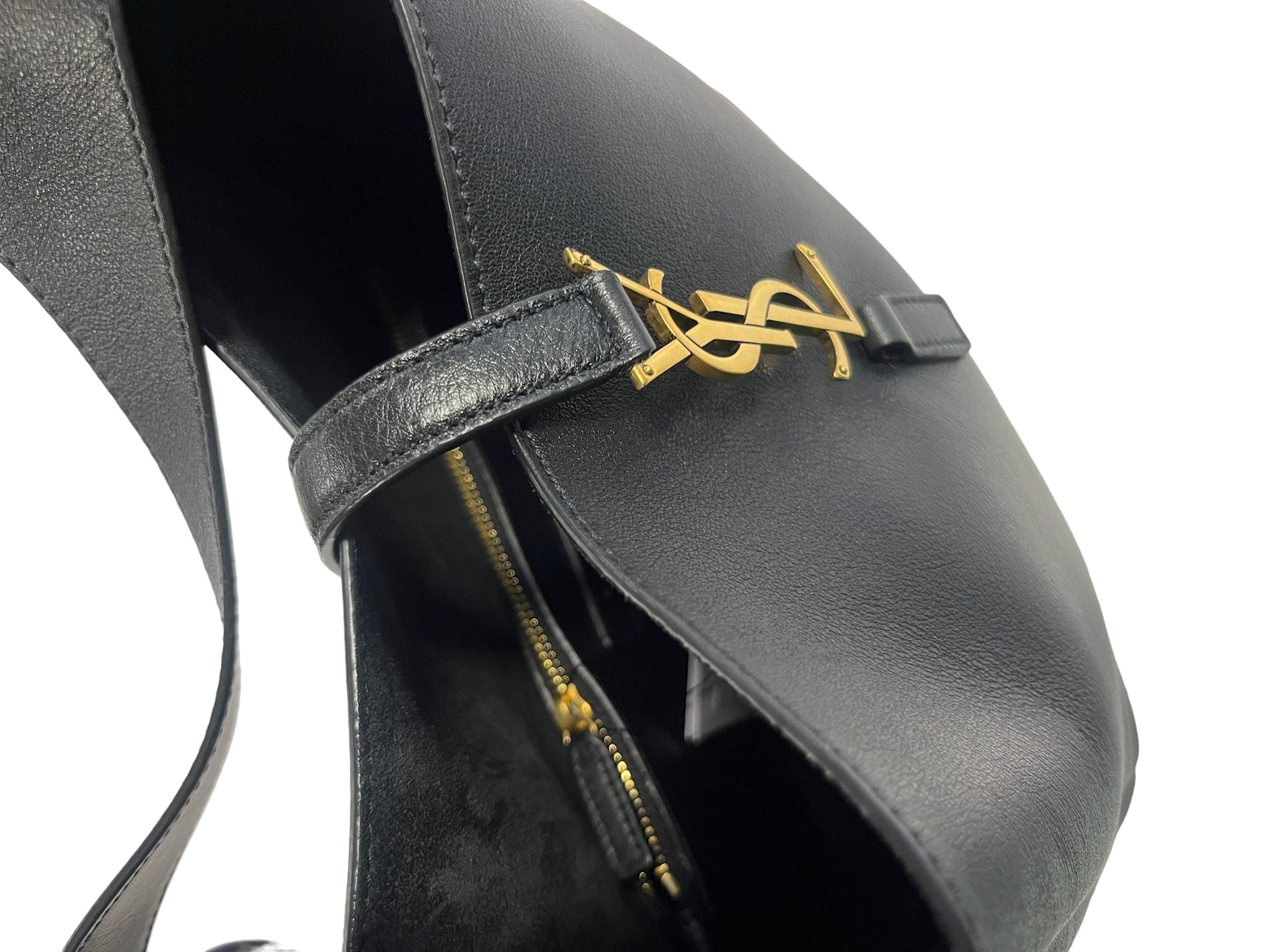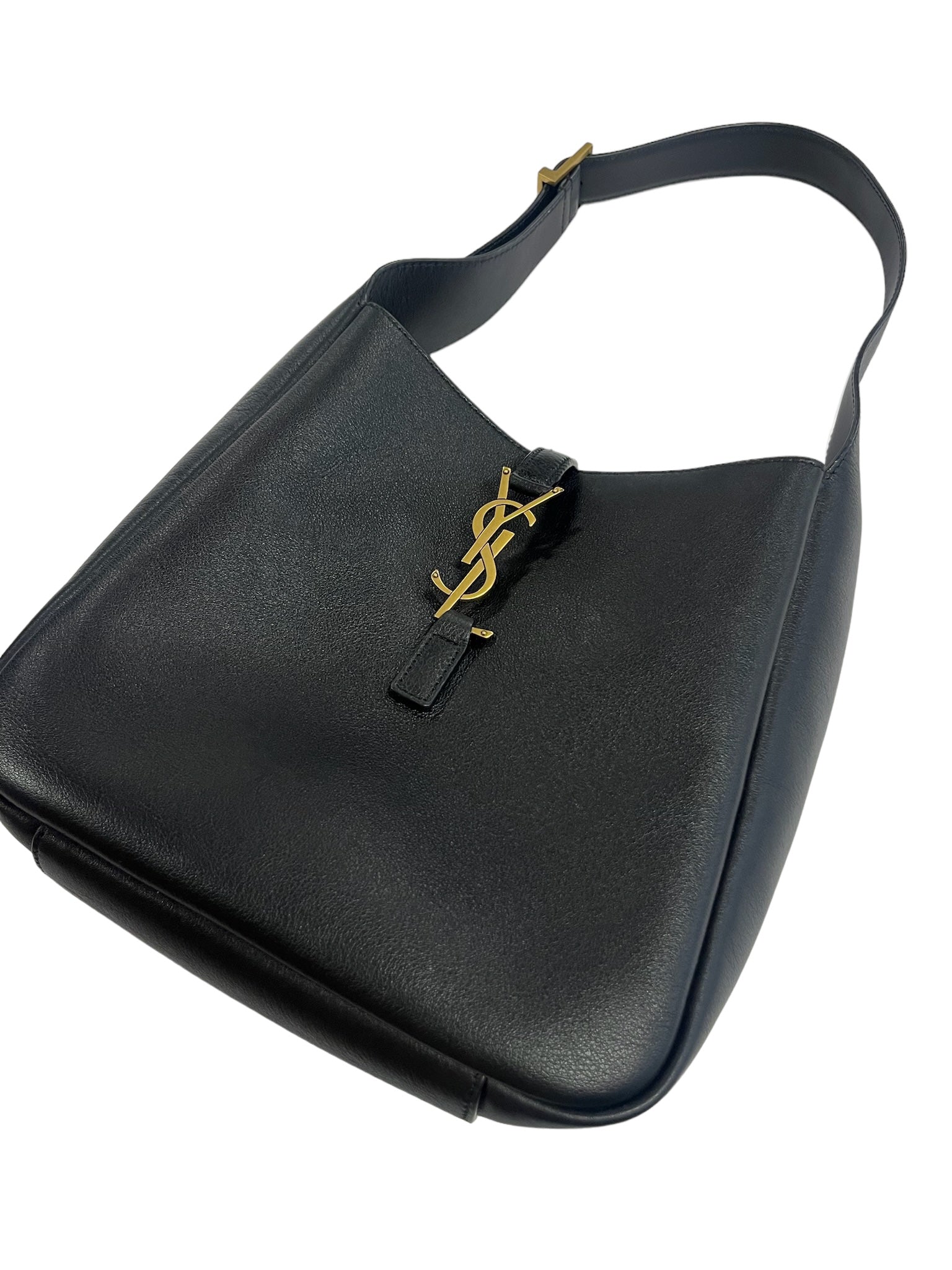 Este bolso de hombro pequeño Le 5 a 7 de piel granulada flexible negra de SAINT LAURENT usado es un artículo imprescindible para cualquier entusiasta de la moda.