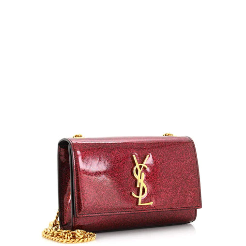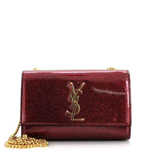 Este bolso bandolera de SAINT LAURENT presenta un exterior rojo intenso en charol brillante, combinado con un interior negro clásico hecho de tela duradera. Con elegantes herrajes dorados, agrega un toque de lujo a cualquier atuendo. Este bolso, elaborado por expertos y elegante, es perfecto para cualquier ocasión.