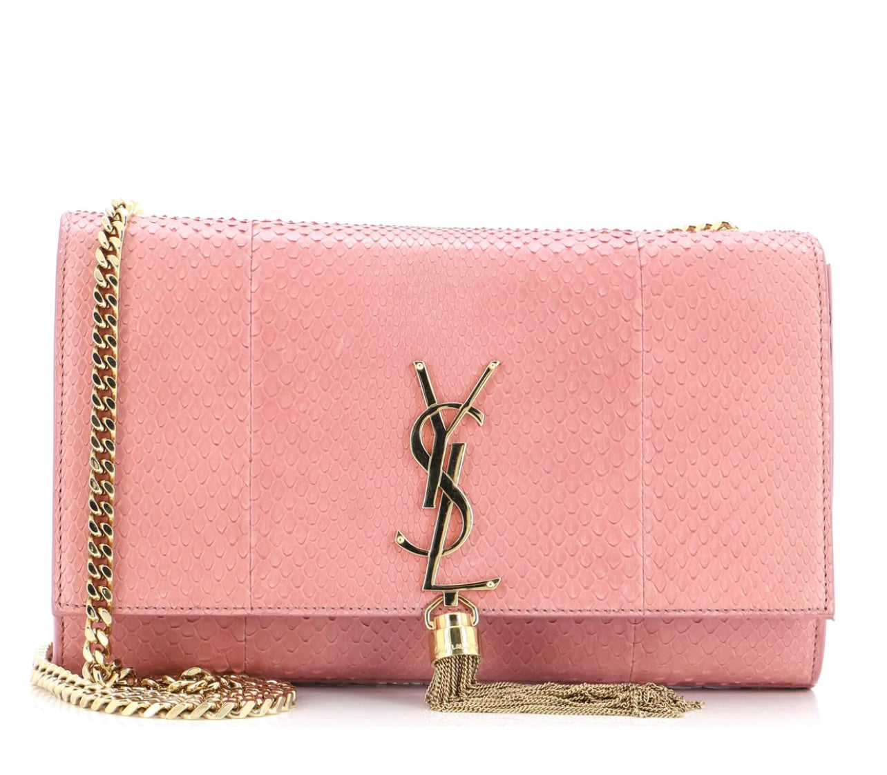 SAINT LAURENT - Bolso bandolera clásico con borlas y monograma de piel de pitón mediana