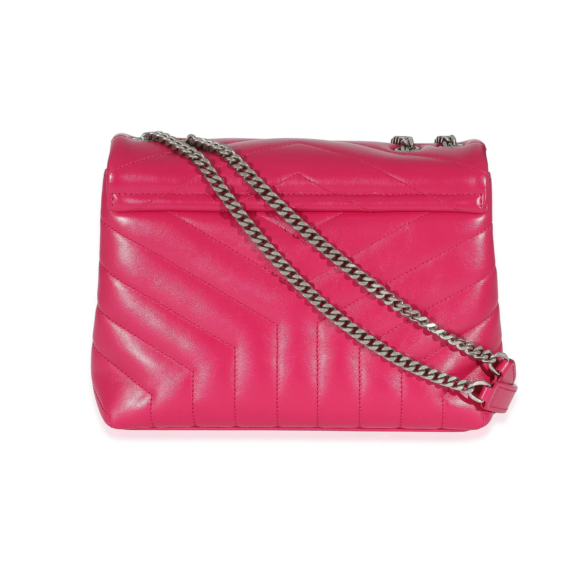 SAINT LAURENT - Loulou pequeño de piel de becerro color fucsia fresco