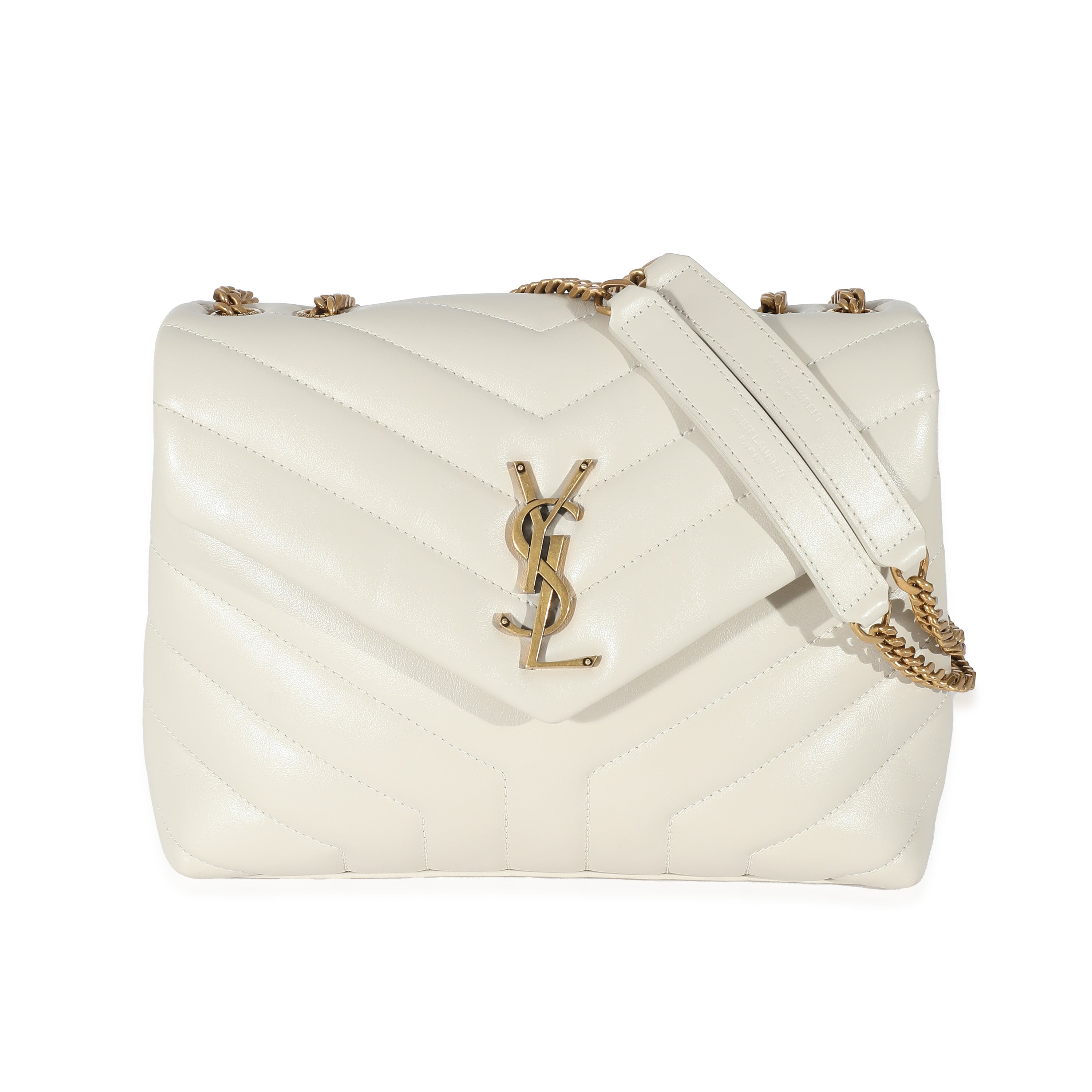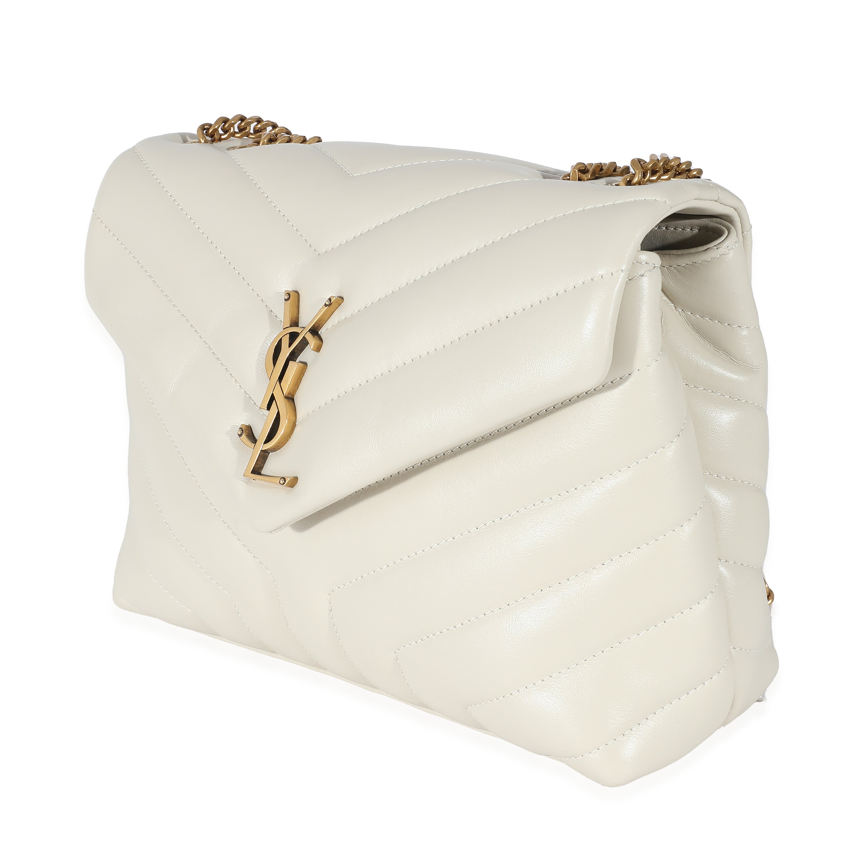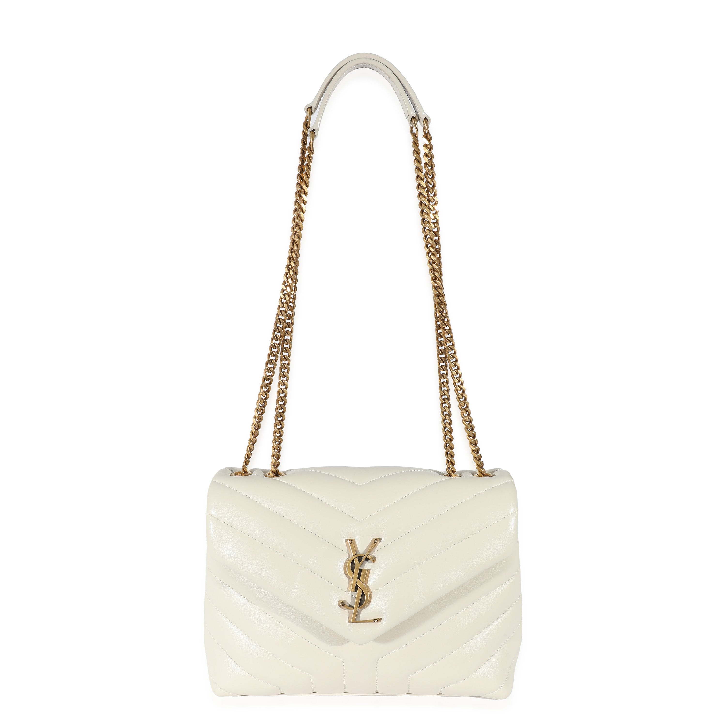 Este bolso Loulou pequeño de piel de becerro acolchada de SAINT LAURENT es el accesorio perfecto para cualquier conjunto. Este bolso, confeccionado en piel de color blanco marfil, tiene una longitud de asa de entre 28 y 53 cm y unas dimensiones de 23 x 19 x 8,9 cm. Fabricado por expertos en Italia, este bolso se encuentra en excelentes condiciones.