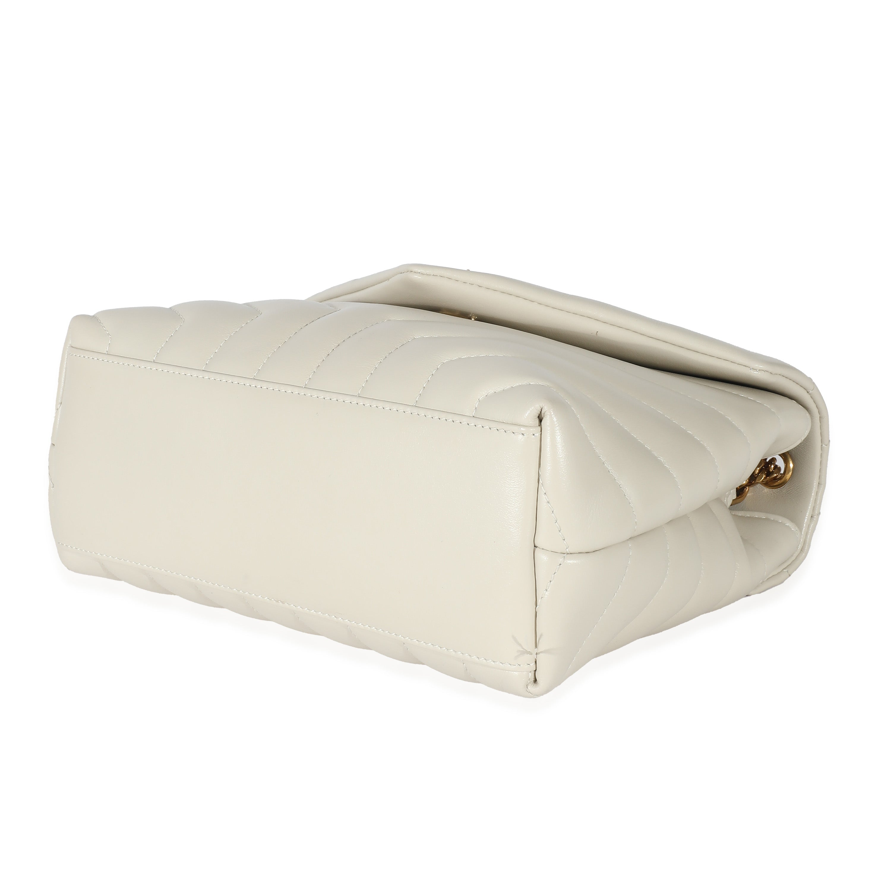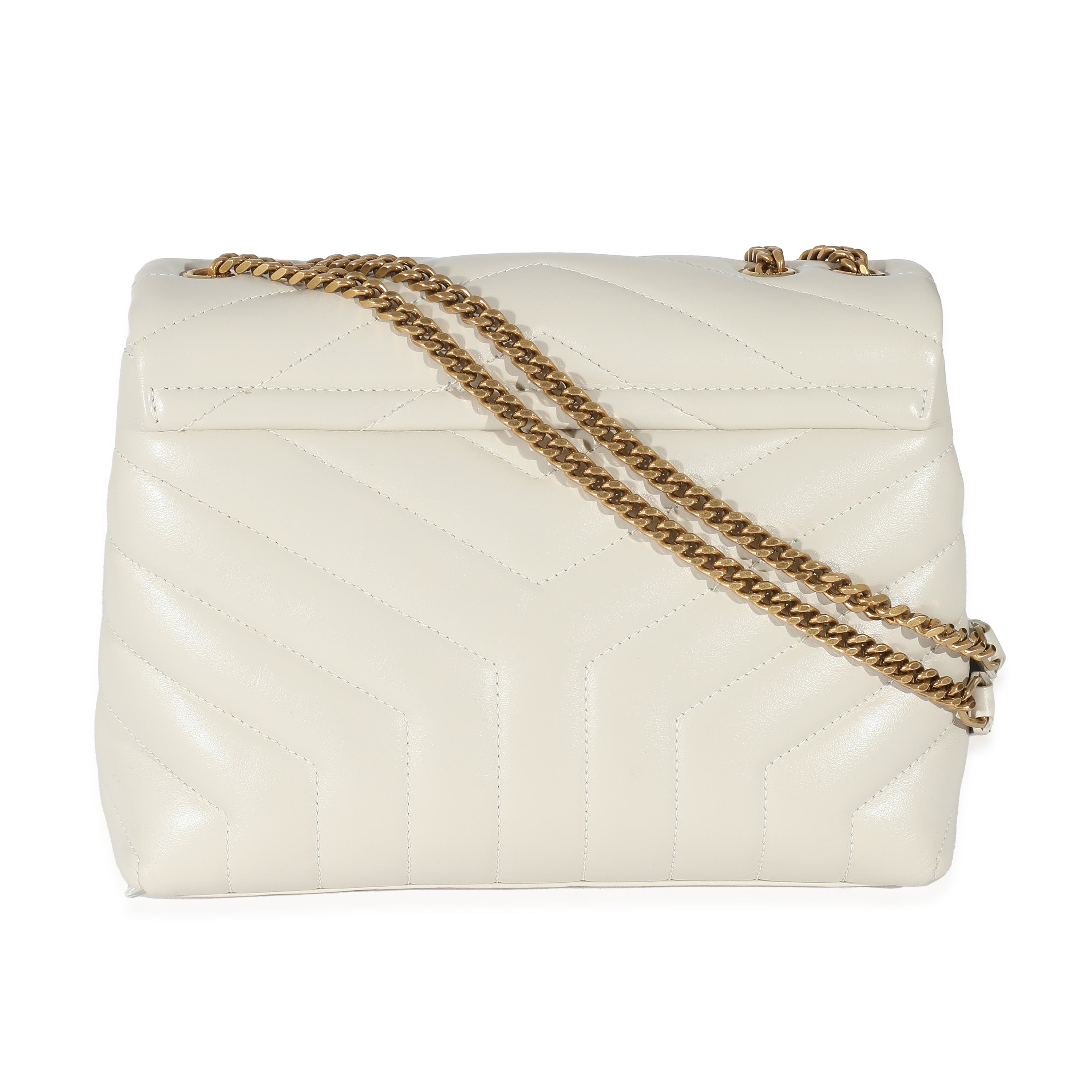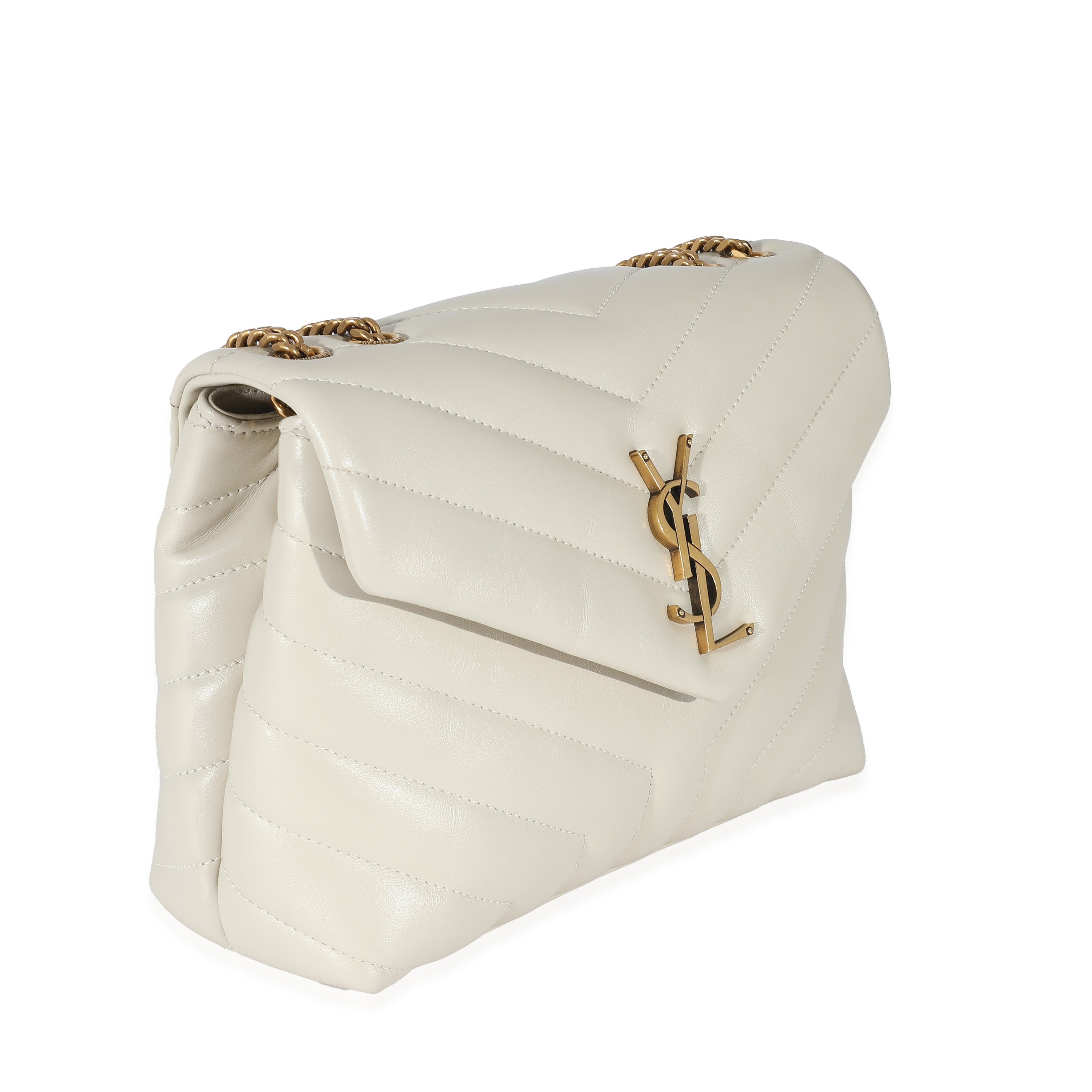 Este bolso Loulou pequeño de piel de becerro acolchada de SAINT LAURENT es el accesorio perfecto para cualquier conjunto. Este bolso, confeccionado en piel de color blanco marfil, tiene una longitud de asa de entre 28 y 53 cm y unas dimensiones de 23 x 19 x 8,9 cm. Fabricado por expertos en Italia, este bolso se encuentra en excelentes condiciones.