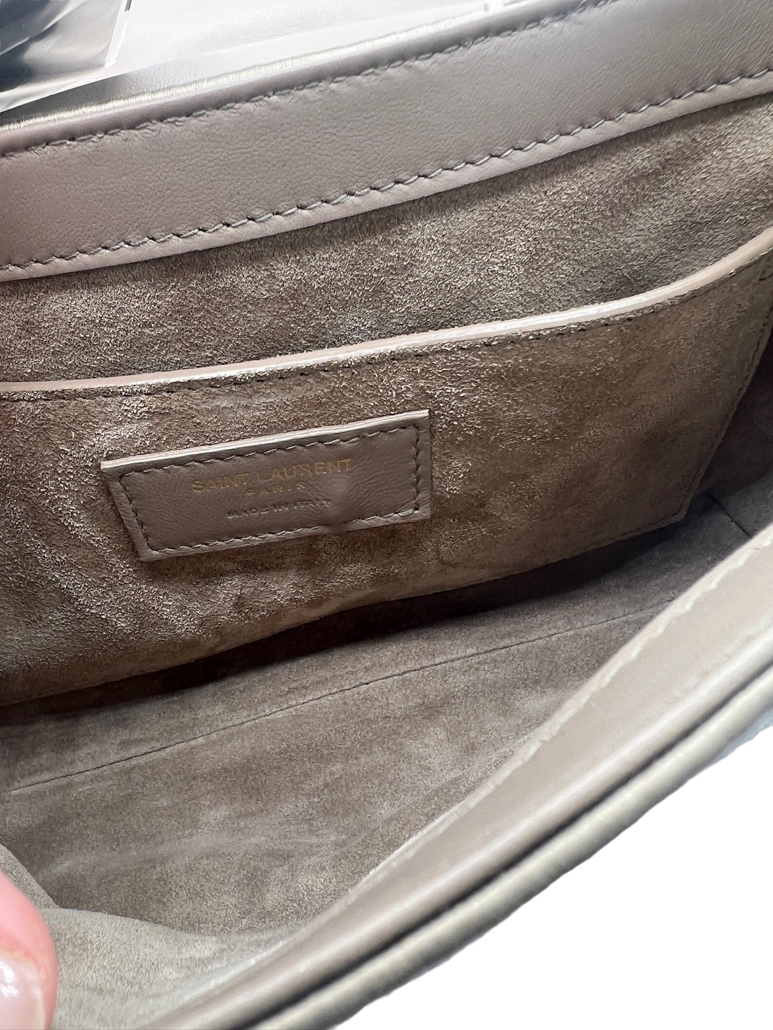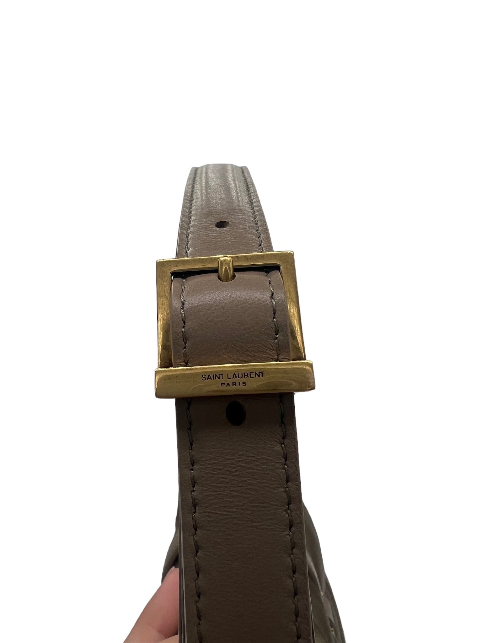 - Diseñado con una parte superior plegable asegurada con un cierre de botón magnético, presenta herrajes YSL entrelazados en la parte delantera para darle un toque sofisticado.
