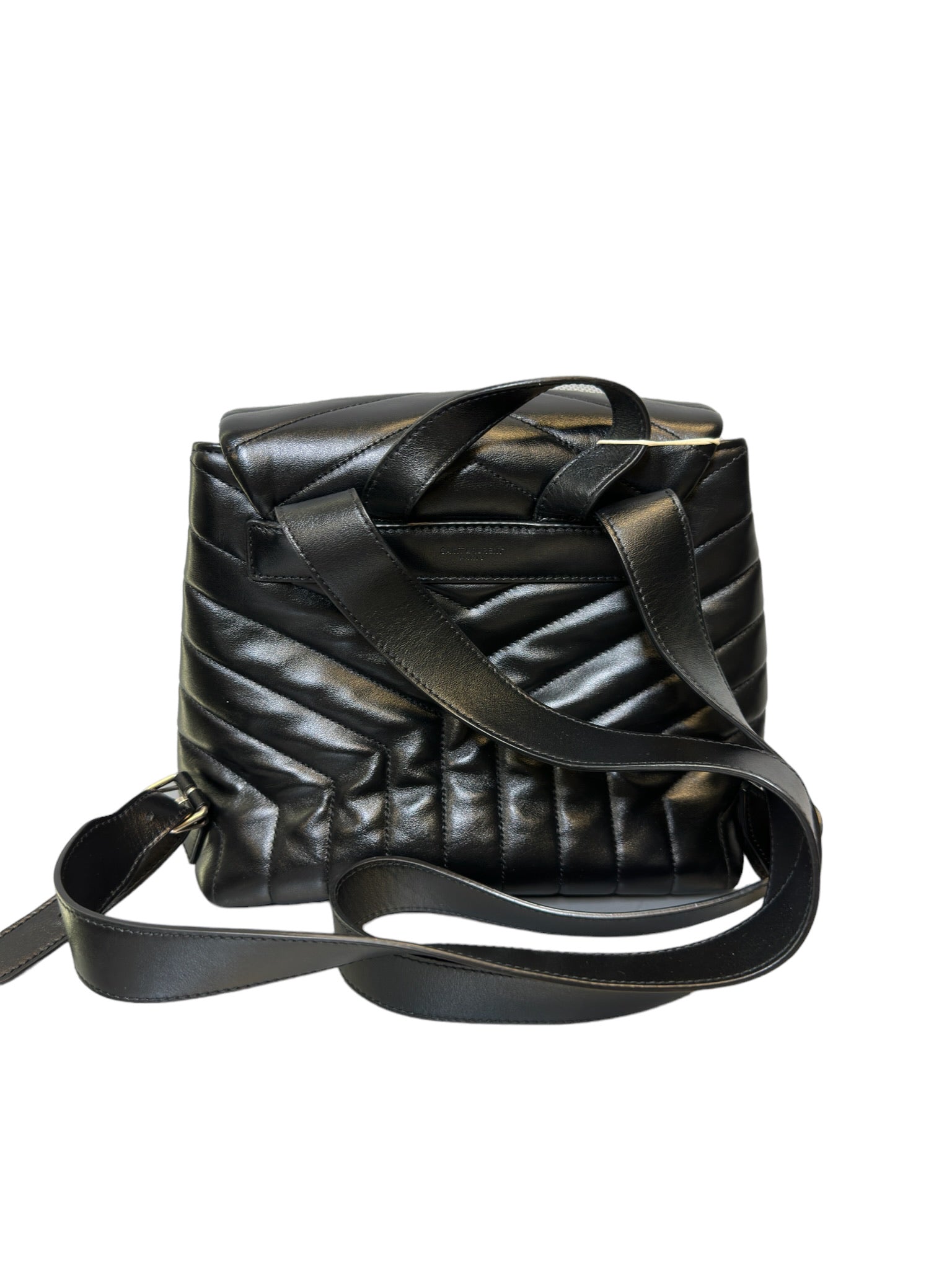 SAINT LAURENT - Mochila Loulou Metalasse Chevron de piel pequeña