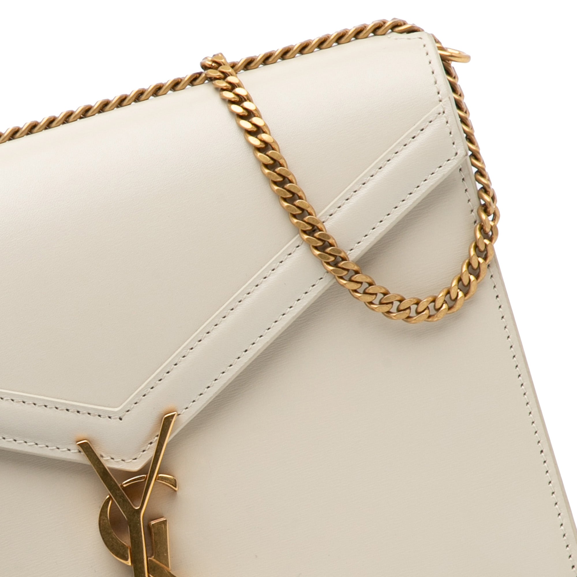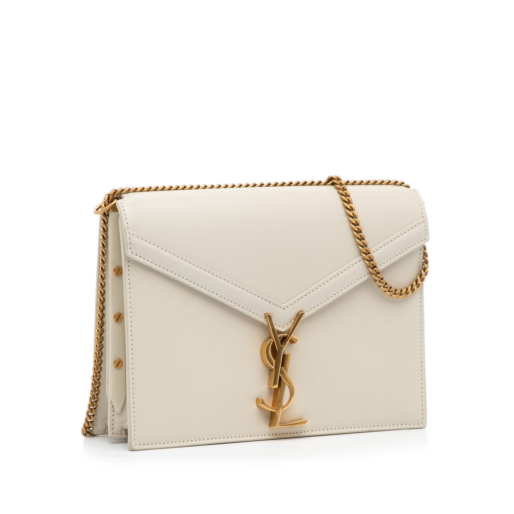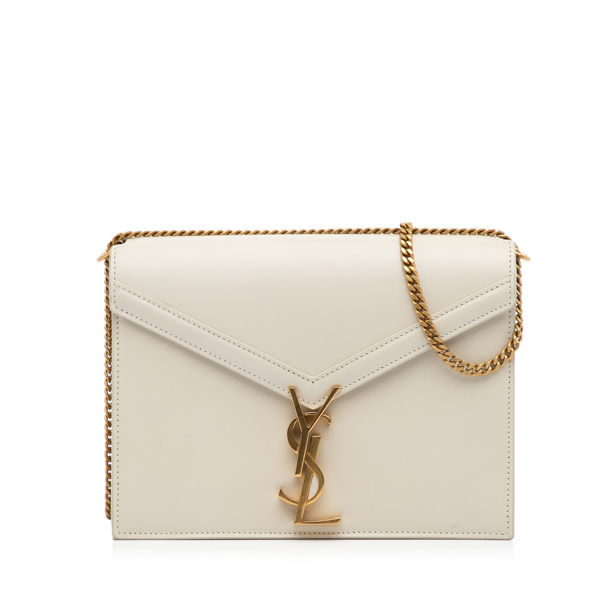 Mejora tu estilo con SAINT LAURENT - Monogram Cassandra Crossbody. Este bolso bandolera usado está hecho de cuero beige y te da un aspecto elegante.
