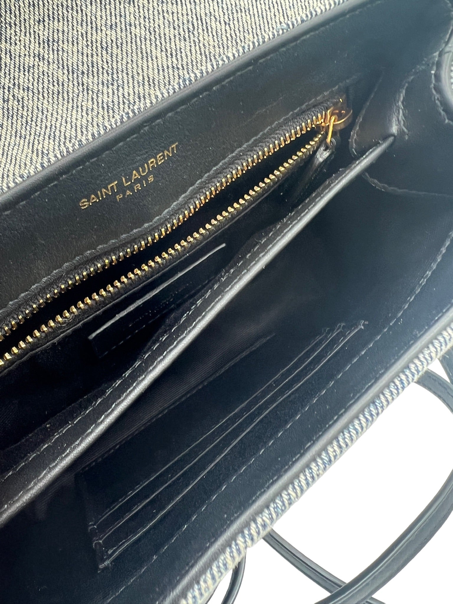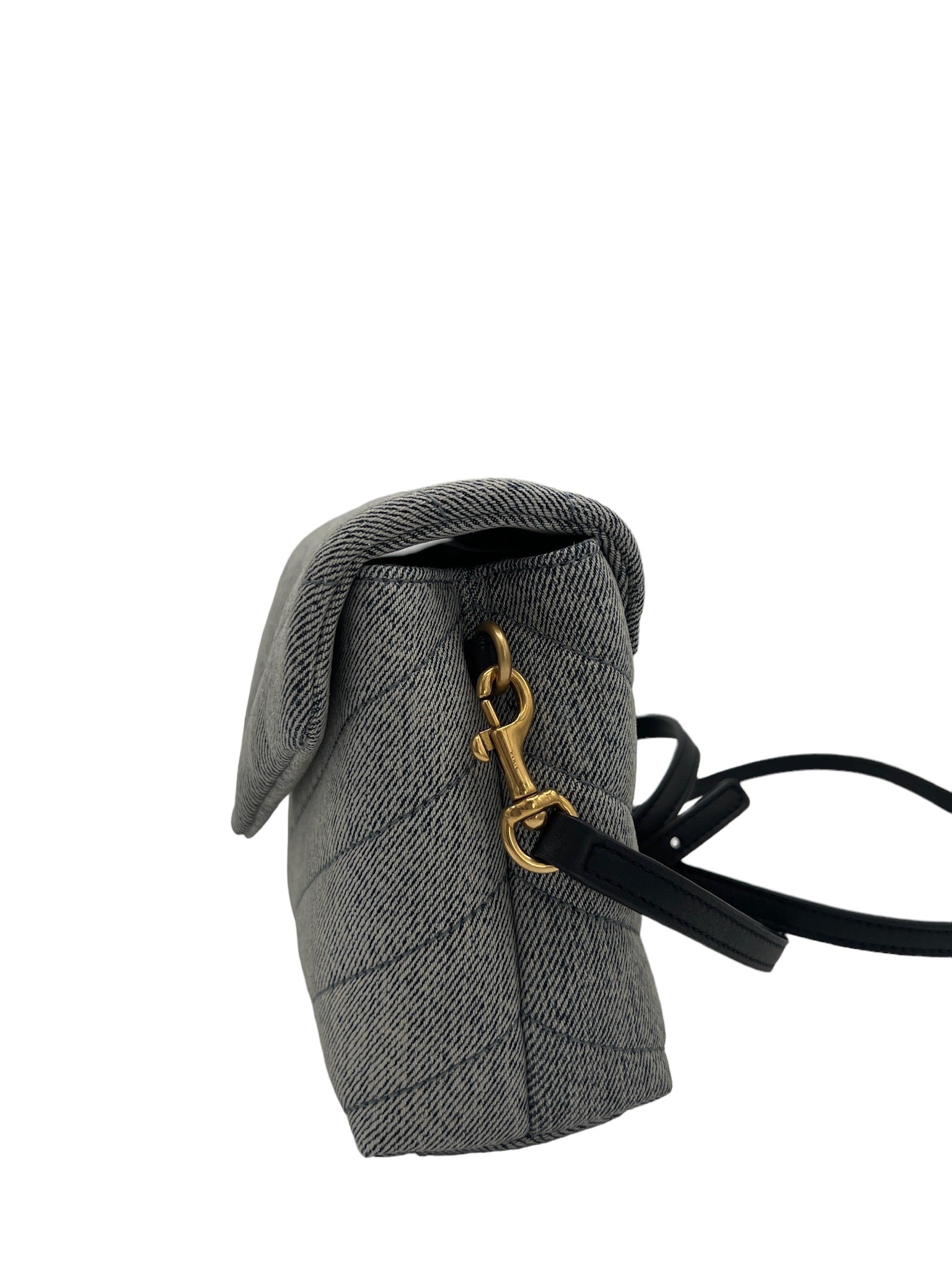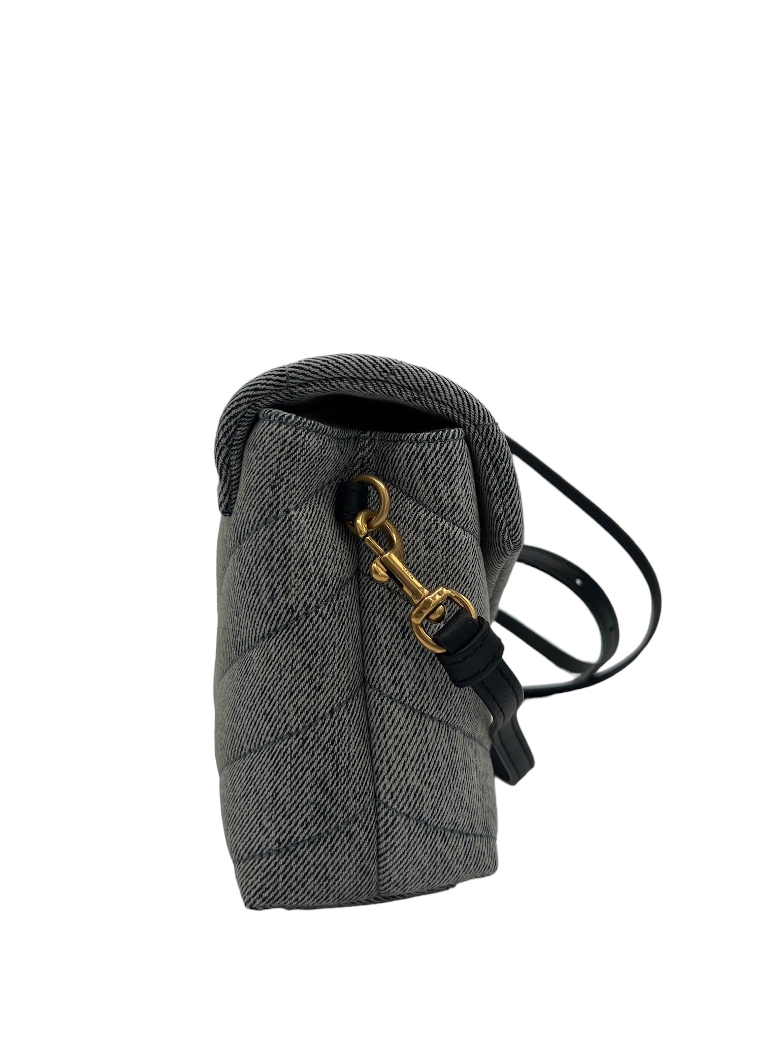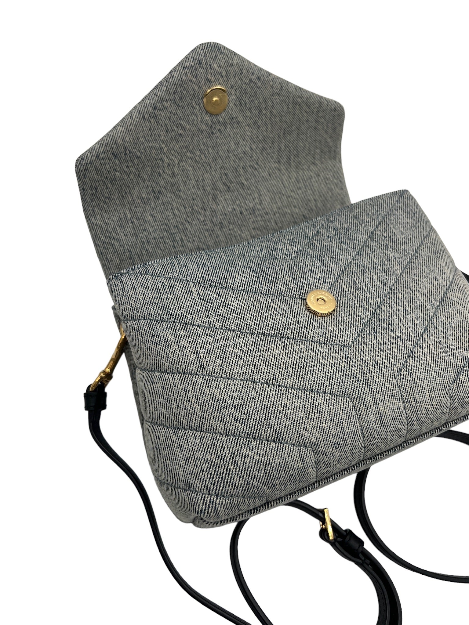 Este bolso bandolera Toy Loulou de SAINT LAURENT usado es el complemento perfecto para tu colección de bolsos. Fabricado en Italia, este bolso presenta un denim matelassé en "Y" con forro de grosgrain y herrajes en tono dorado que añaden un toque de lujo a tu atuendo.