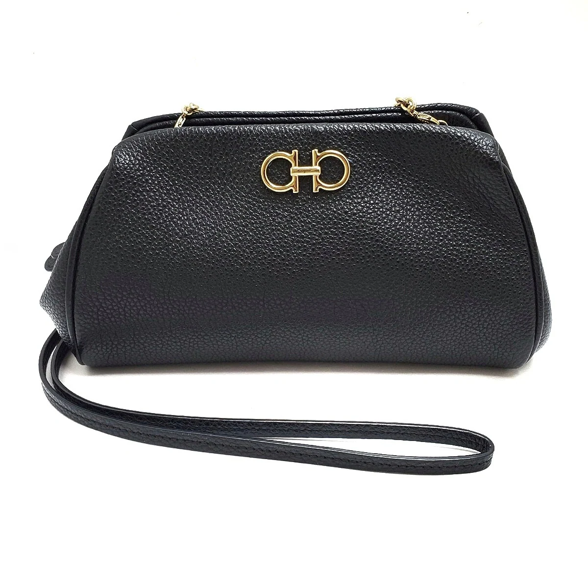Este bolso de hombro Gancini de SALVATORE FERRAGAMO usado en piel negra es una pieza atemporal perfecta para cualquier ocasión.