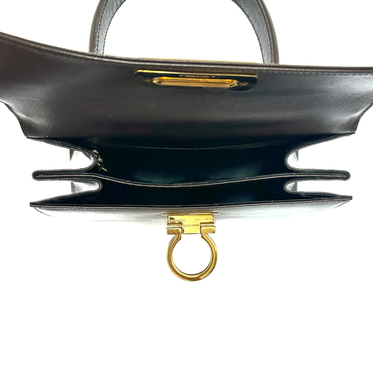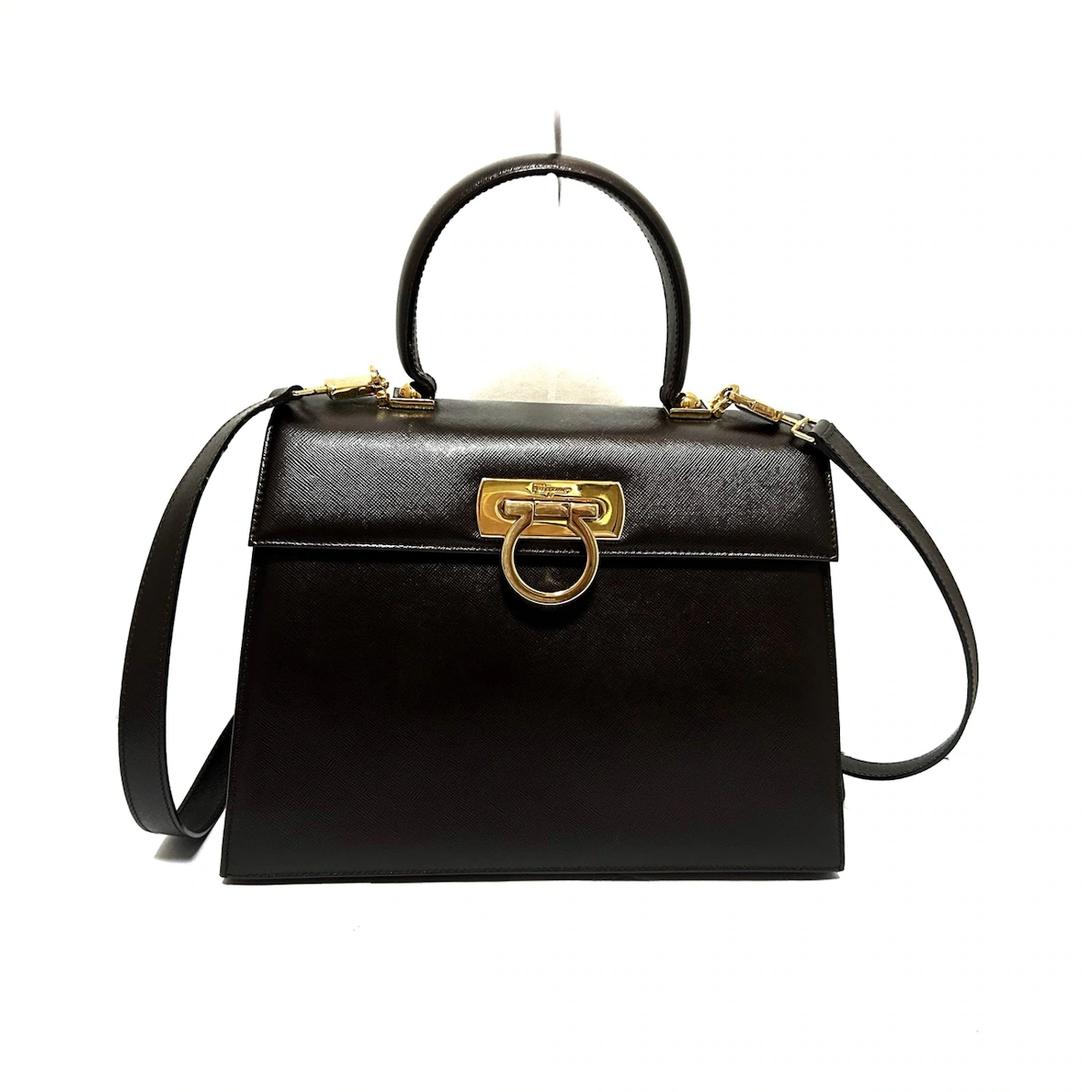 Este bolso de hombro Gancini de Salvatore Ferragamo usado en piel marrón oscuro es un accesorio elegante y versátil.
