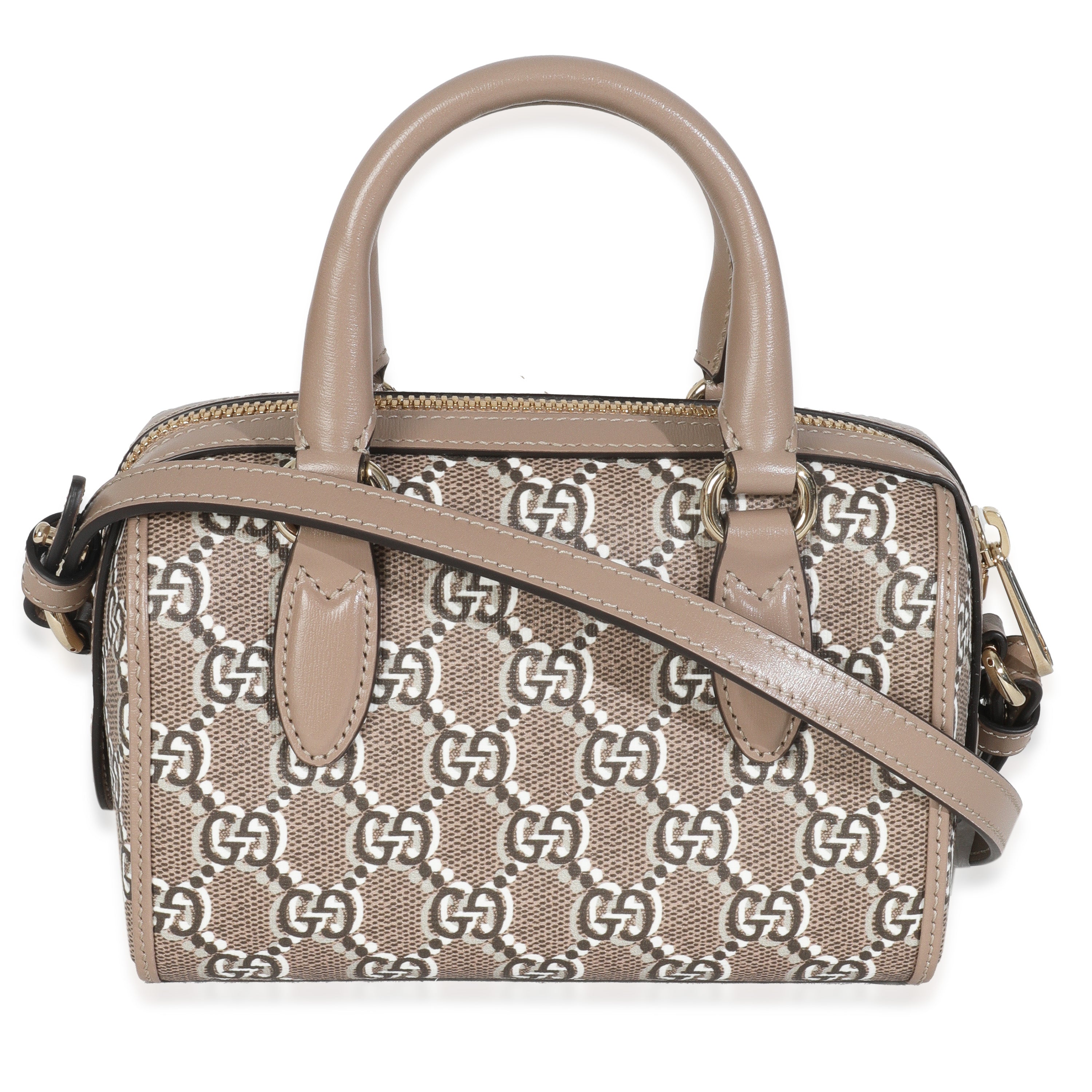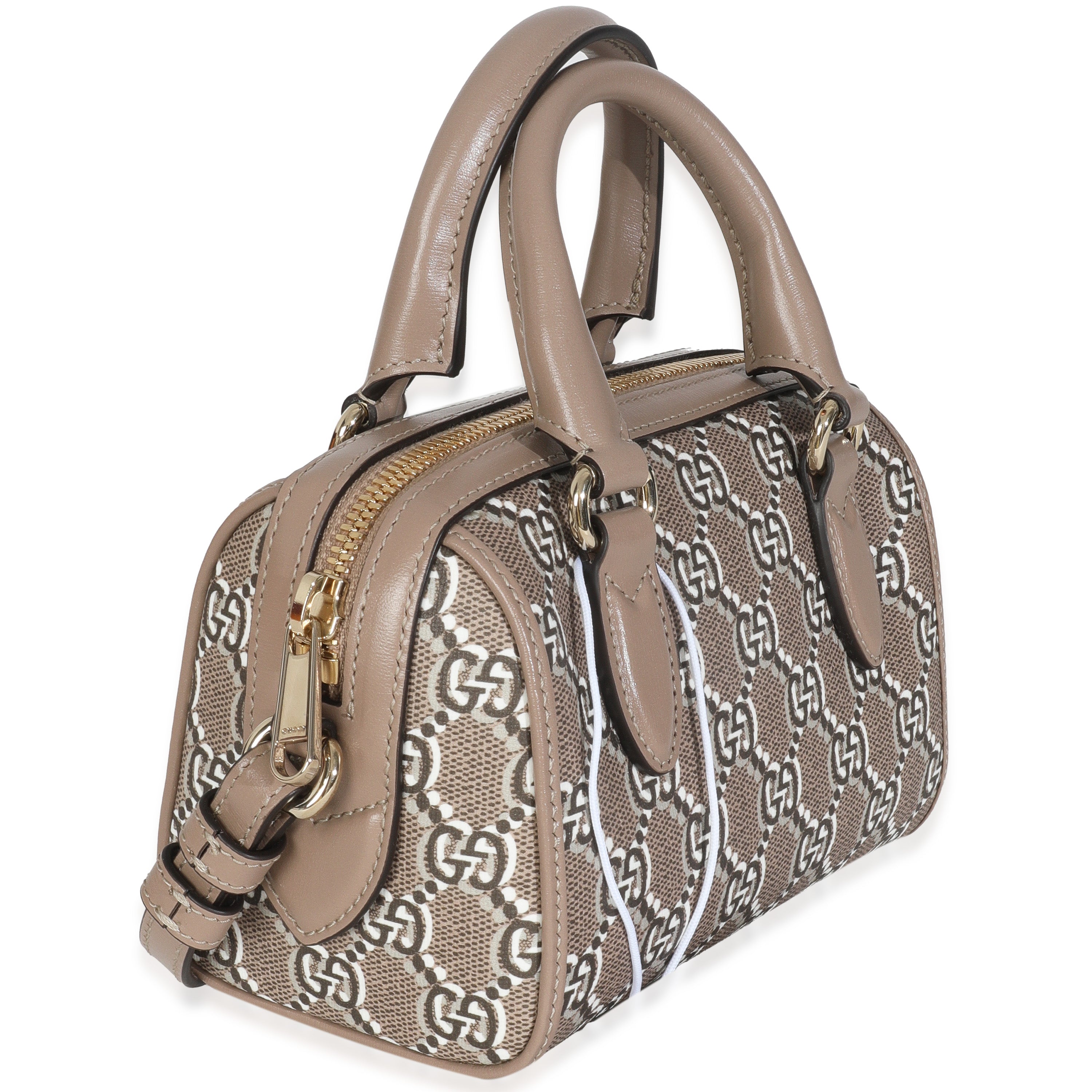 PRE-OWNED Taupe GG Shadow Monogram Super Mini Ophidia Bowler Bag