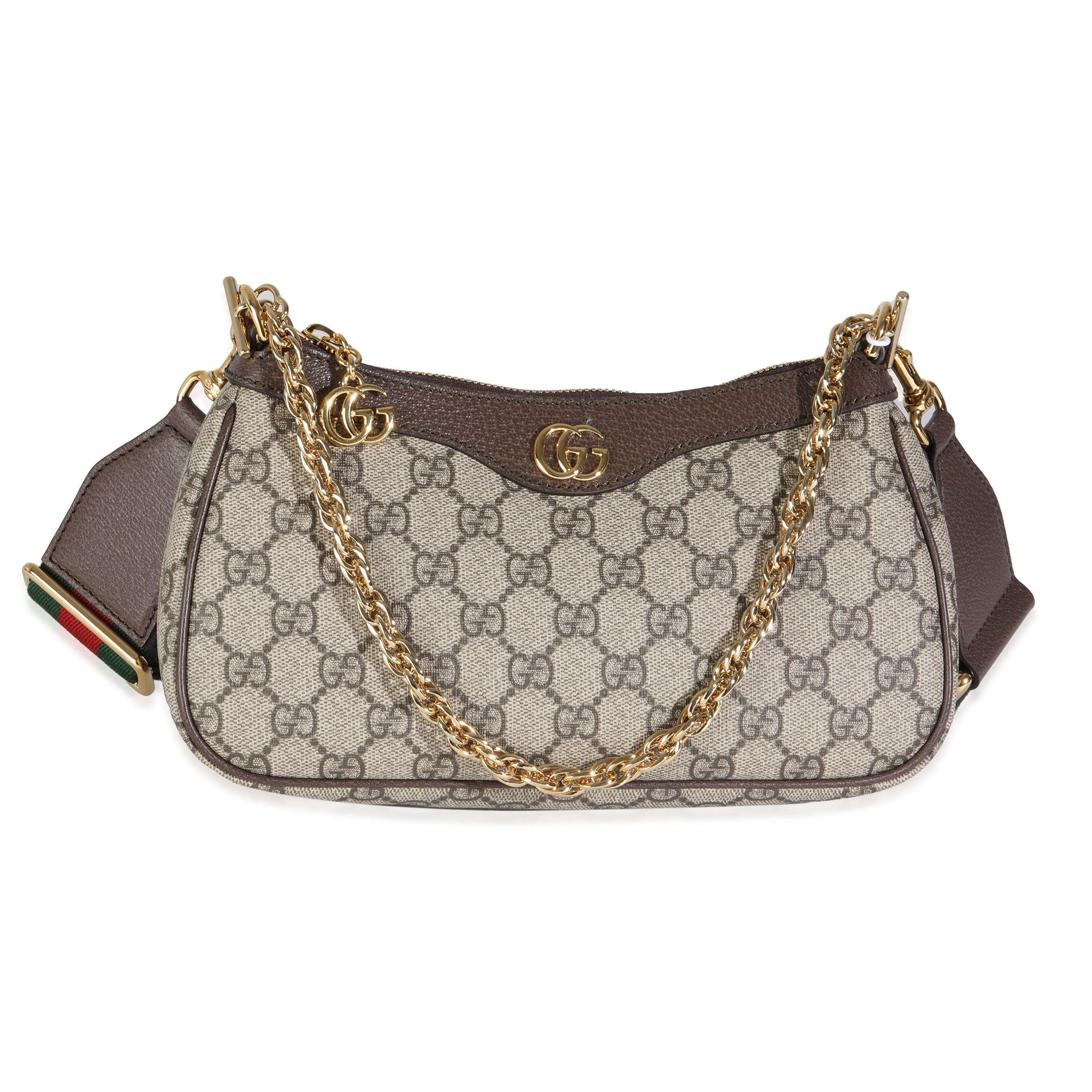 Discover luxury and style with our PRE-OWNED Beige GG Supreme Canvas Small Ophidia Shoulder Bag. This one-of-a-kind accessory exudes elegance and sophistication, making it a perfect addition to any wardrobe. With an additional strap and a variety of other accessories included, this bag offers both versatility and practicality. Perfectly crafted in Italy with the finest materials, this bag boasts a classic design that will never go out of style. Don't miss out on the chance to elevate your fashion game with this stunning bag. Dimensions: 9.8'' x 5.5'' x 2.4''