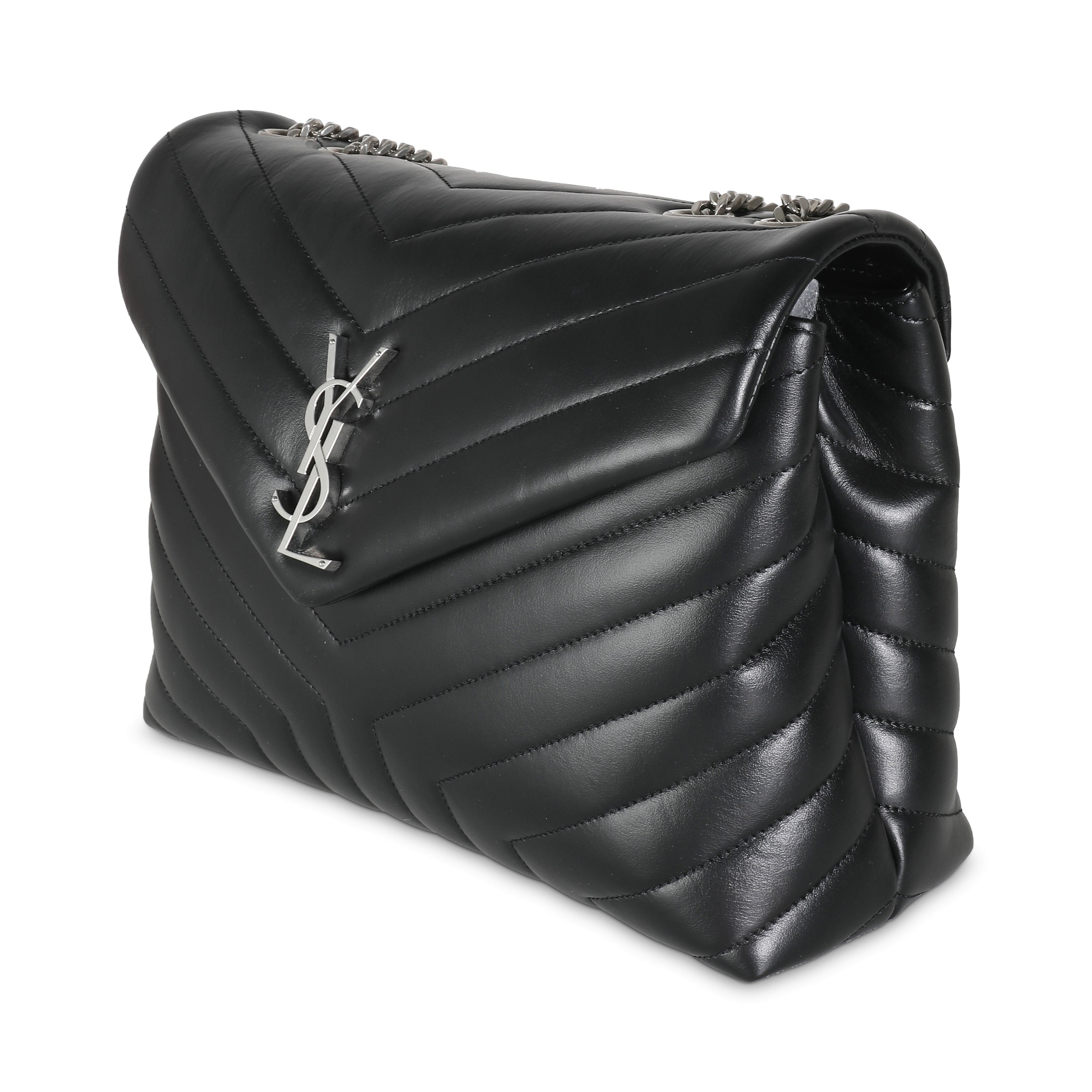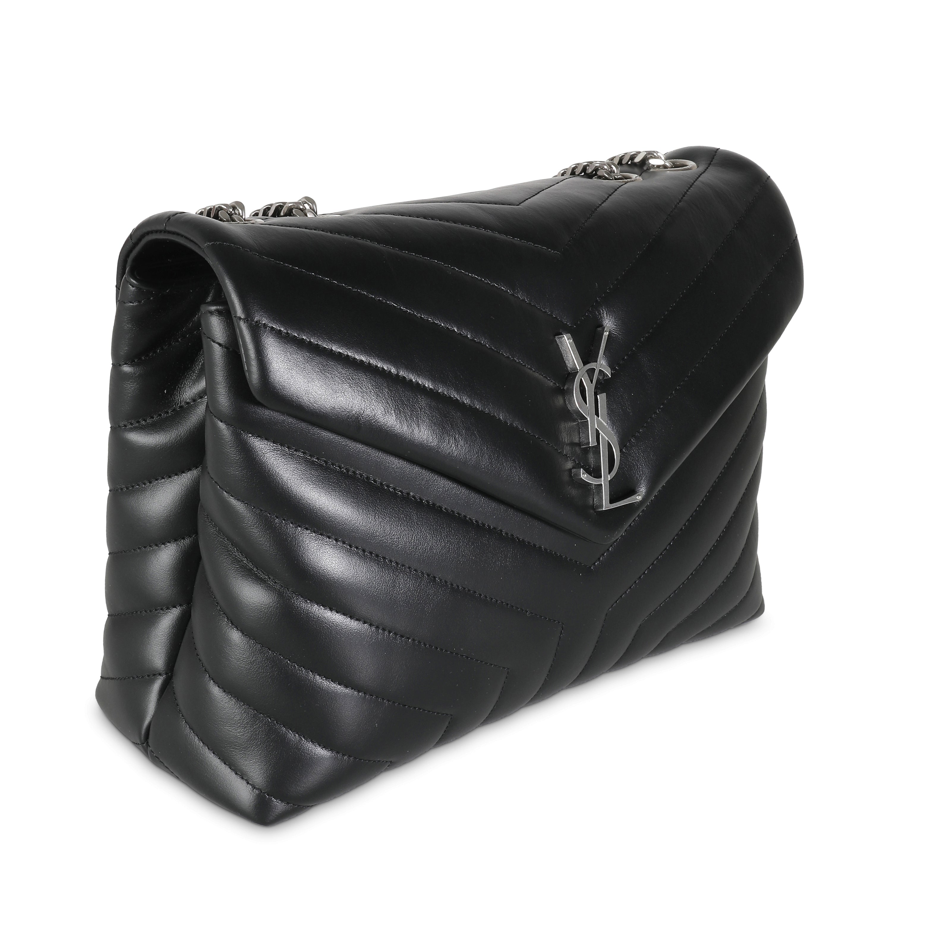SAINT LAURENT - Black Matelassé Lambskin Medium Loulou