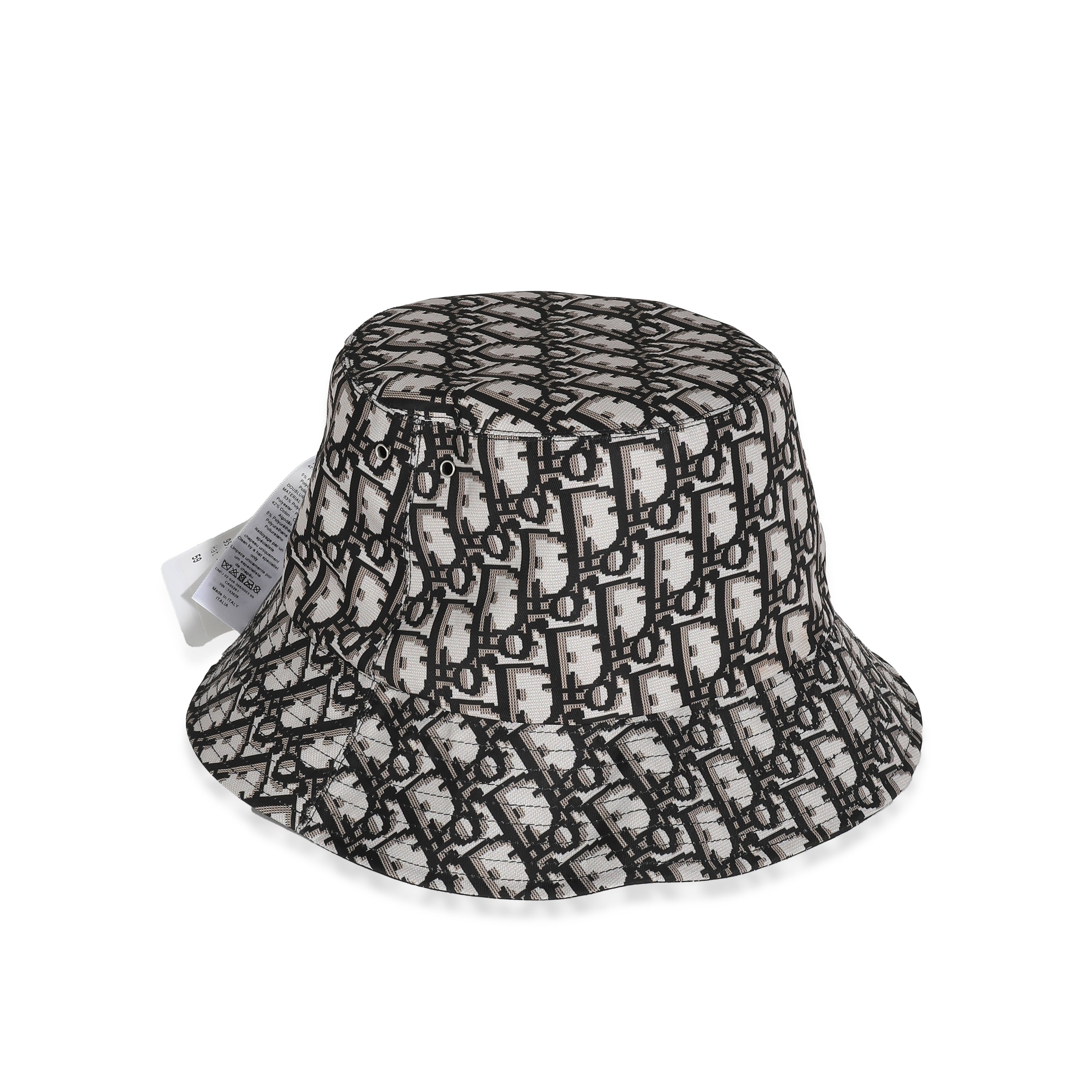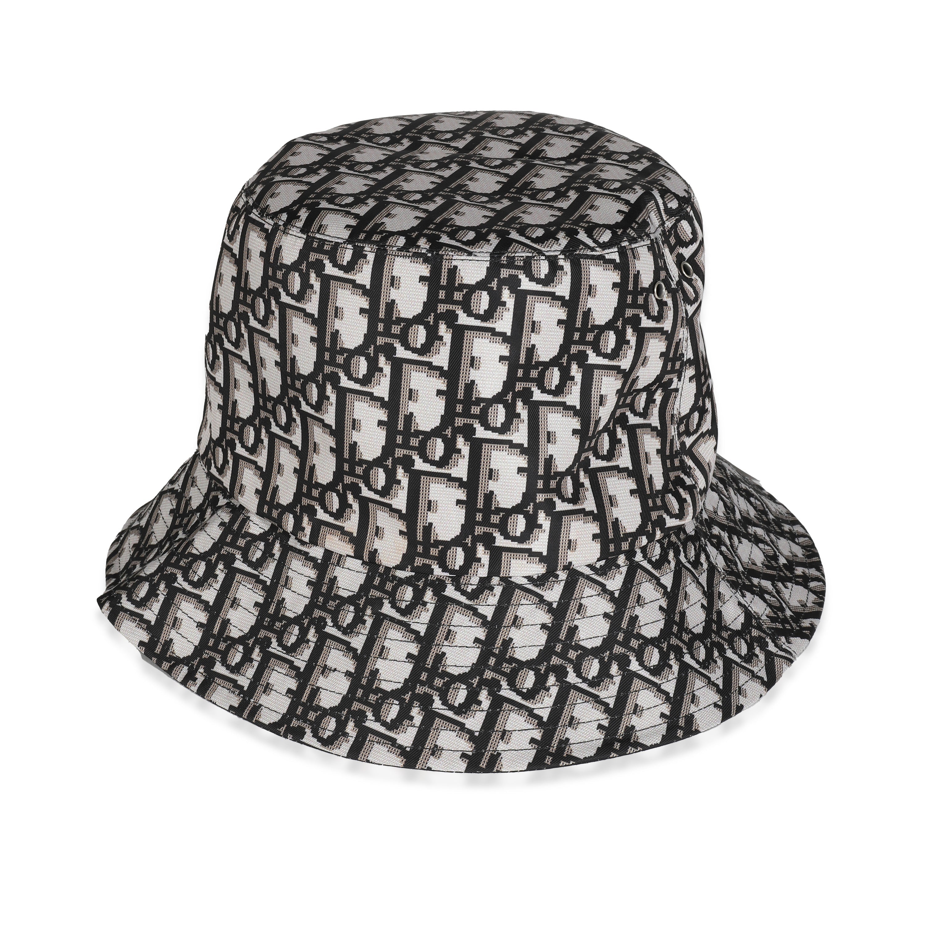 Experience the luxury of Italian craftsmanship with this Pre-Owned Christian Dior Unisex Black Oblique Reversible Teddy-D Brim Bucket Hat 59. Made in Italy, this hat boasts an exquisite black exterior made of quality fabric and a soft beige and black interior for ultimate comfort. Complete with the original box, this hat is in excellent condition and proudly bears the iconic Christian Dior brand. Don't miss out on adding this stylish and versatile hat to your collection today!