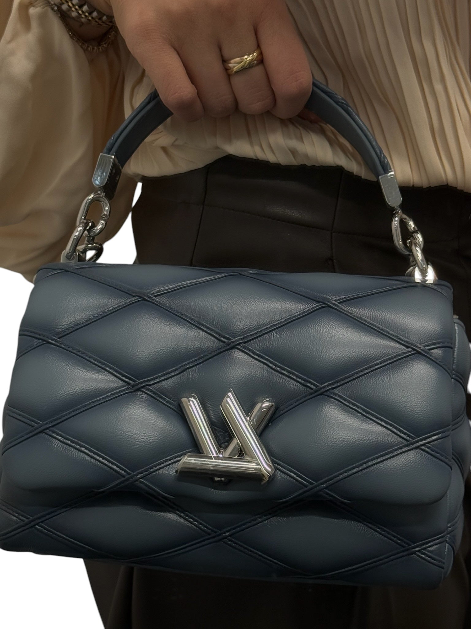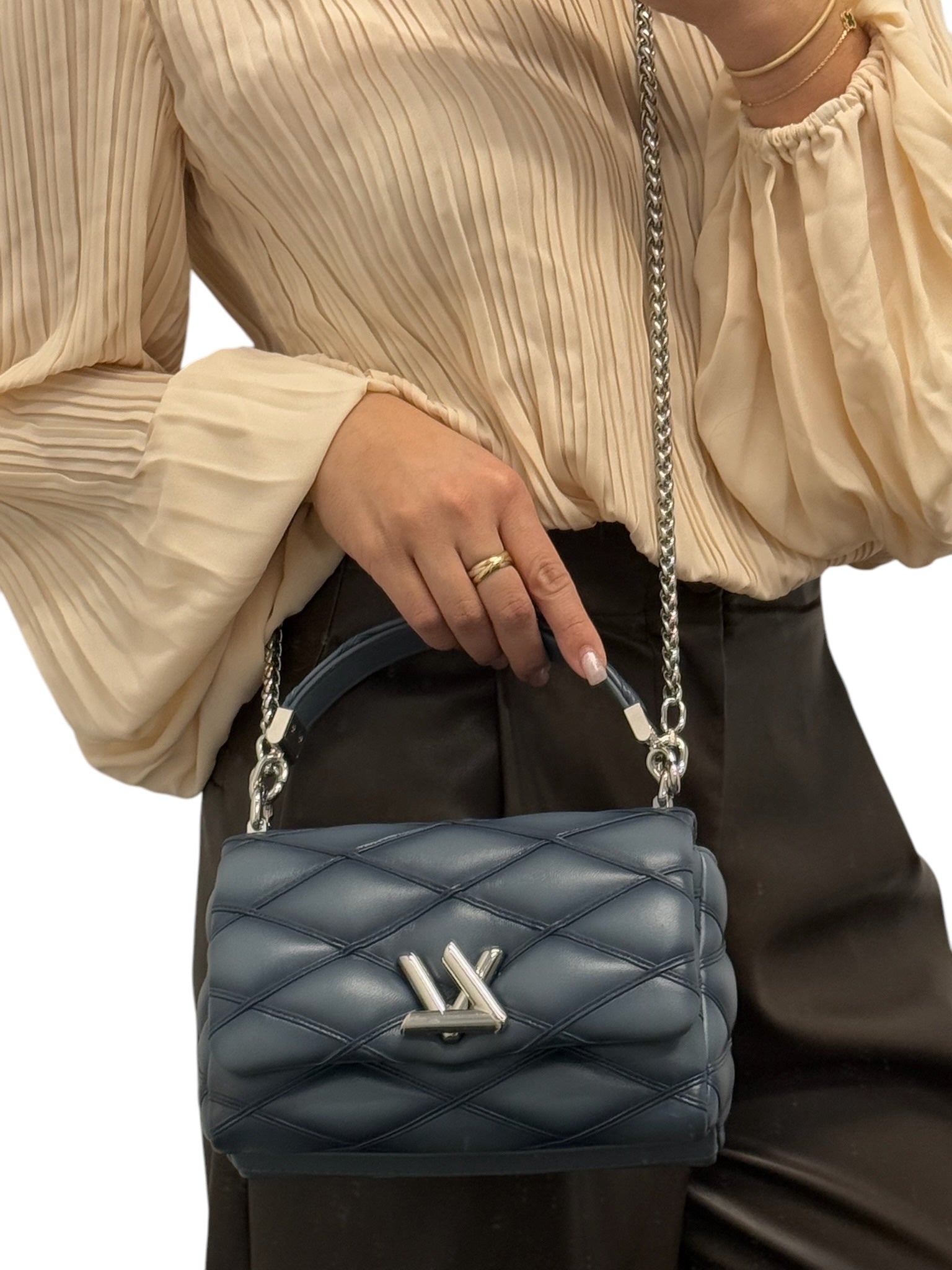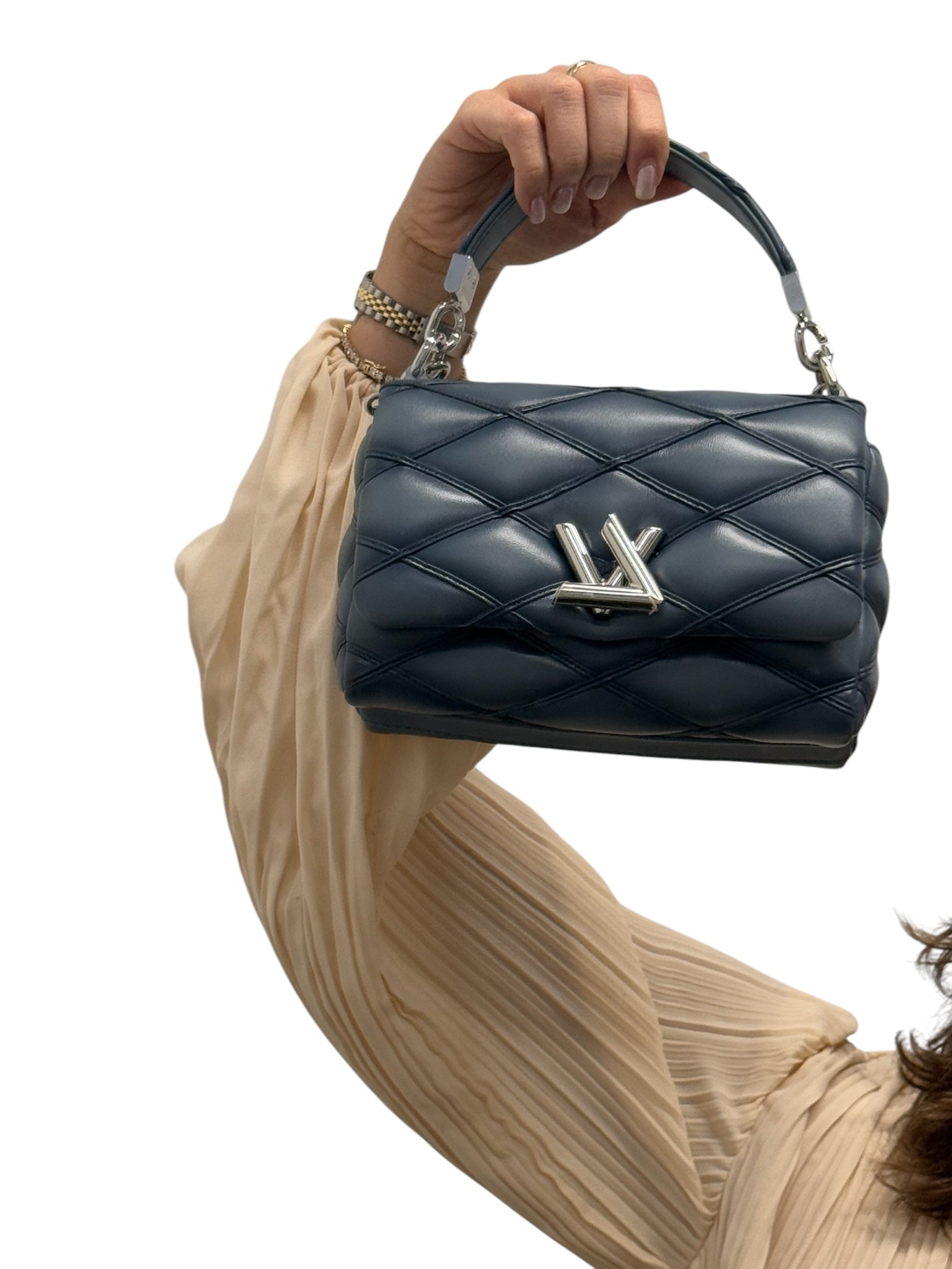 PRE-OWNED LV Bleu Denim Lambskin Malletage Go-14 PM