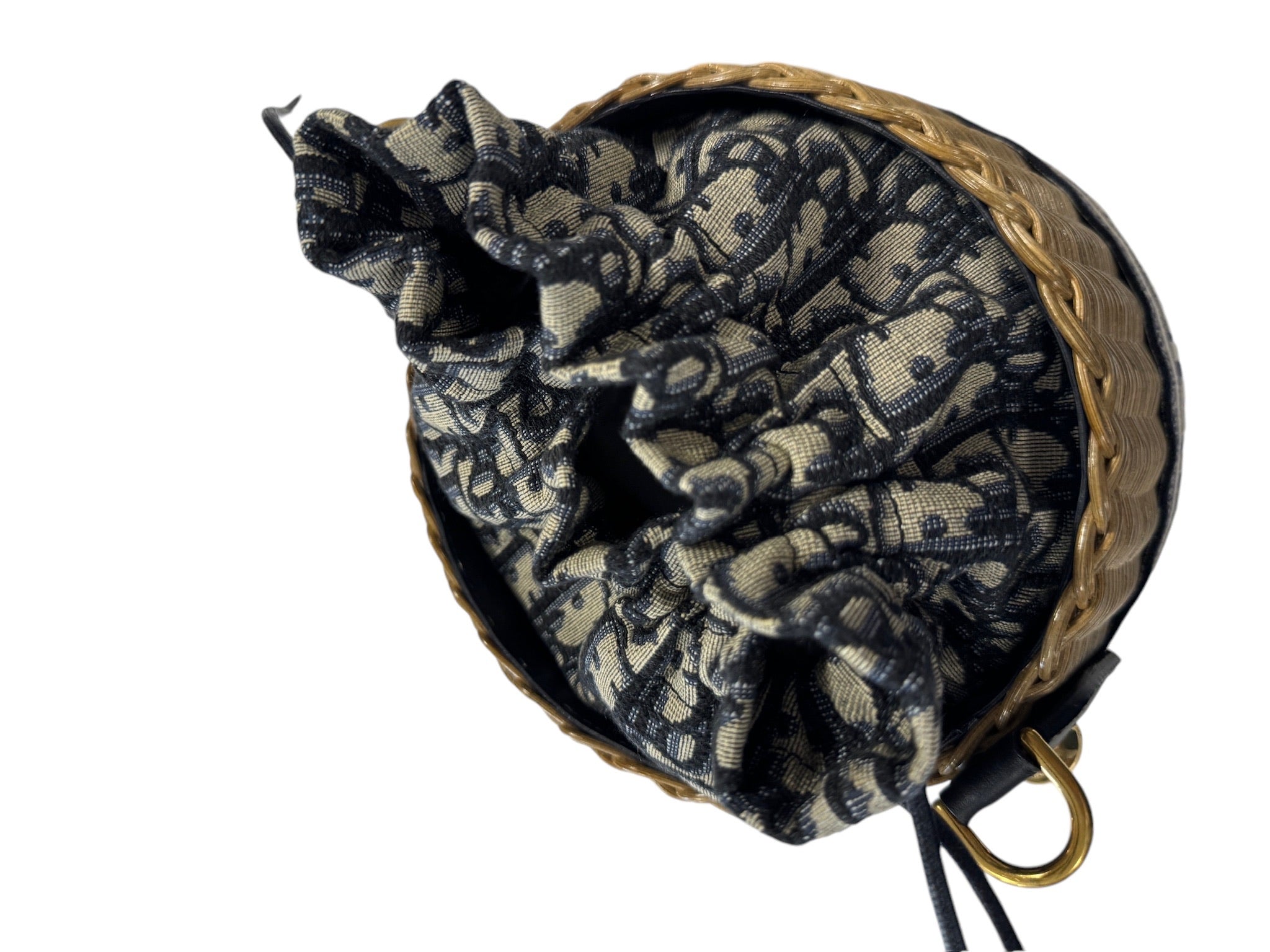 This pre-owned Christian Dior Blue Oblique Wicker Drawstring Bucket Bag, is from the 2020 collection and is in excellent condition. It includes essentials such as a dust bag, care booklet, and authenticity card, as well as removable straps for versatility. The exterior features a beautiful combination of beige canvas and blue straw/raffia, all expertly crafted in Italy. With dimensions of 6.75 x 10.75 x 6.75, this bag is the perfect size for any occasion.