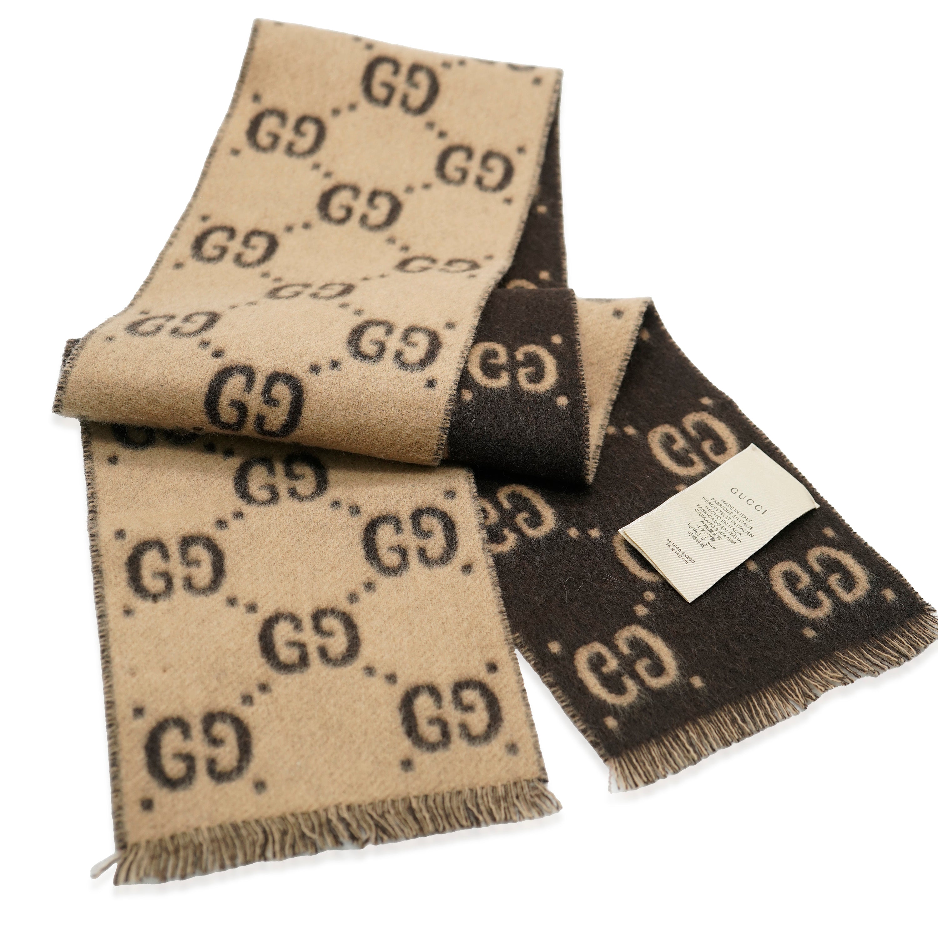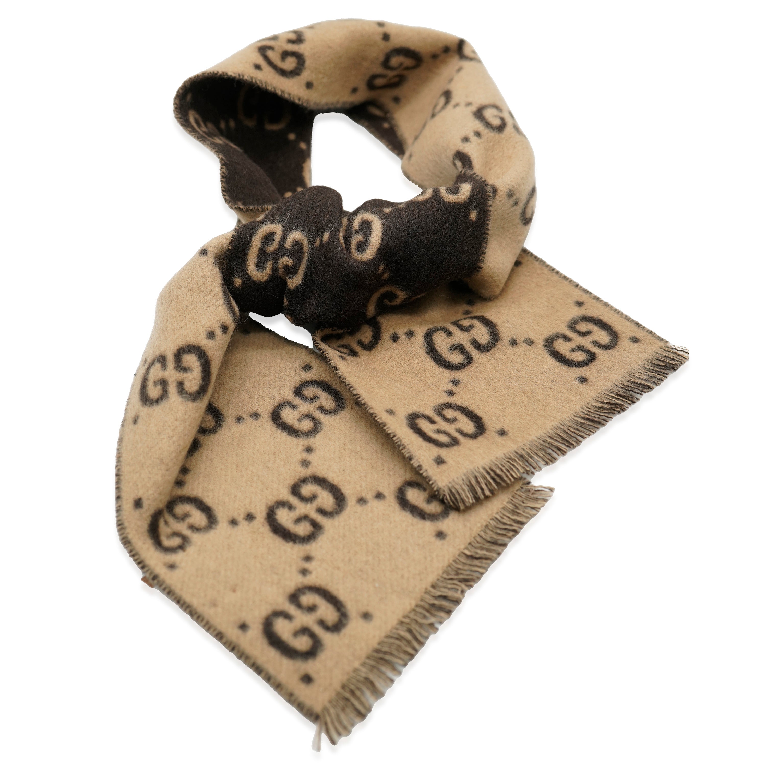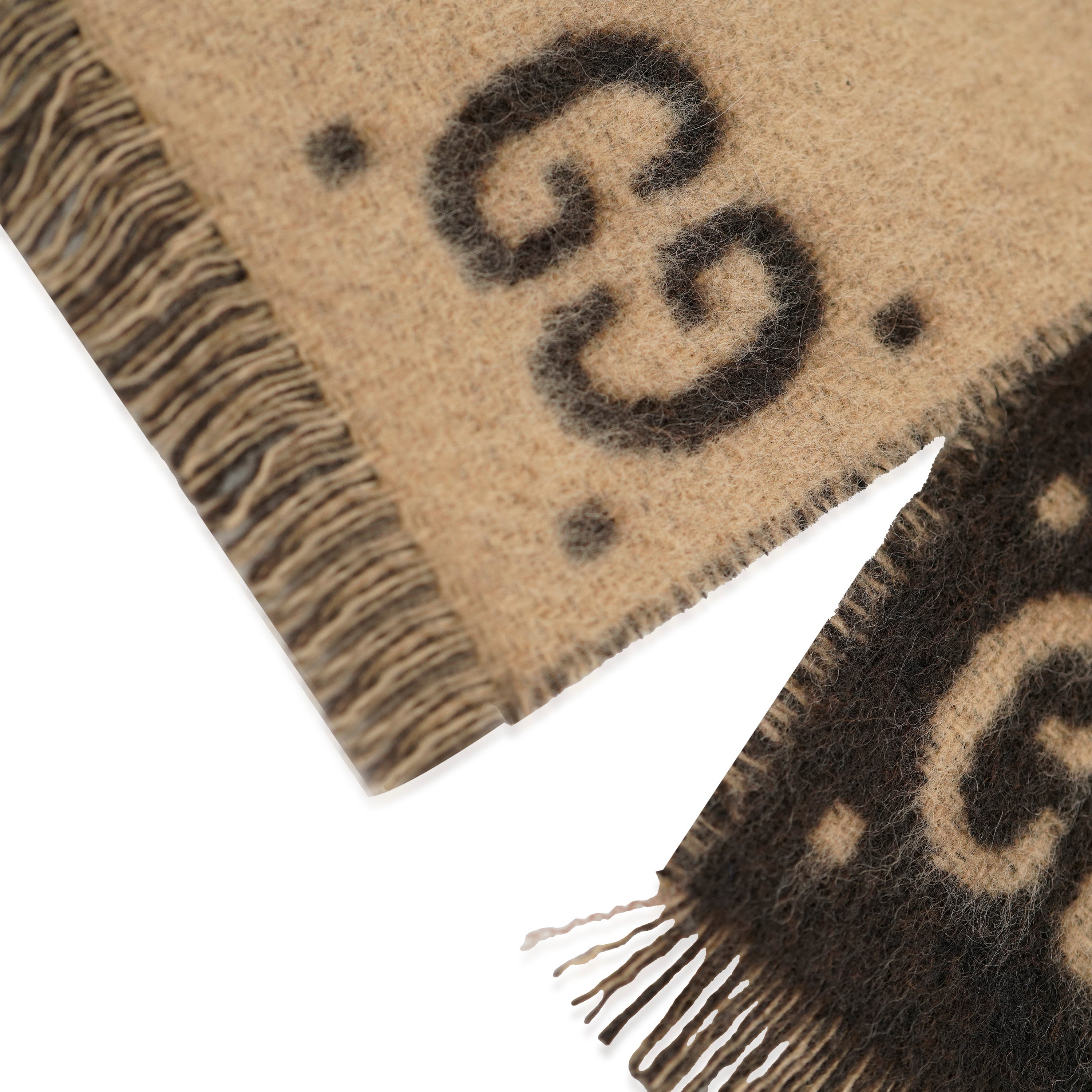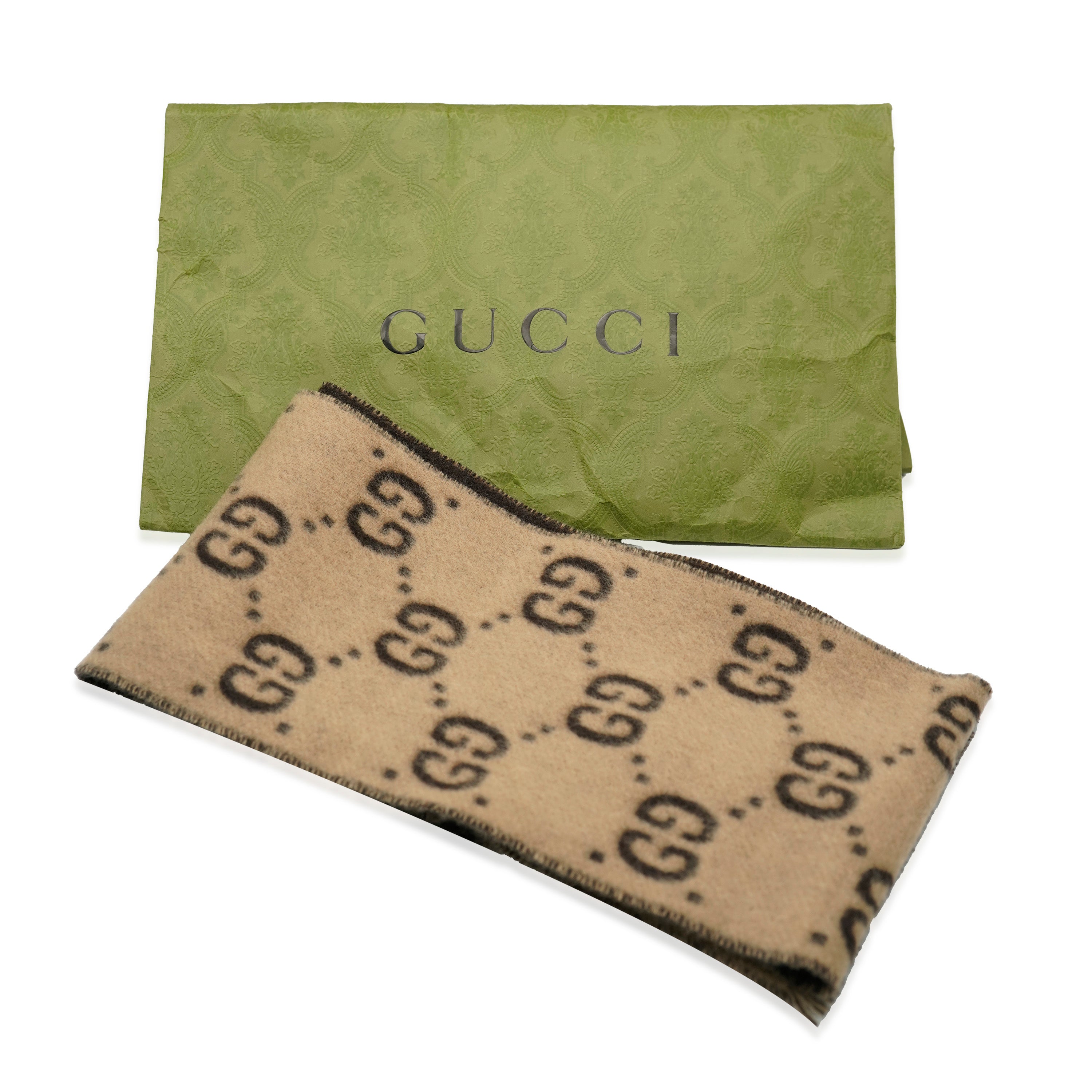 GUCCI - Brown Beige Wool GG Freeda Scarf