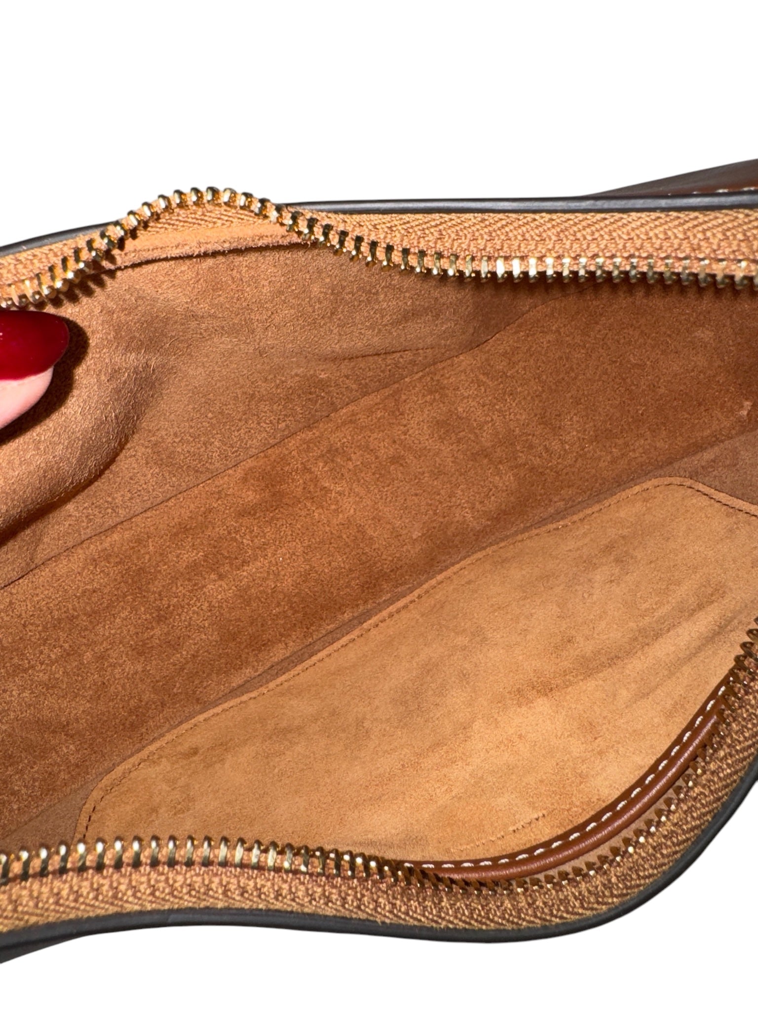Elevate your style with CELINE's Tan Smooth Calfskin Medium Ava Strap Bag! Featuring luxurious golden toned hardware, this bag adds a touch of elegance to any outfit. The perfect accessory for any occasion, embrace the chic and timeless design that will never go out of fashion.