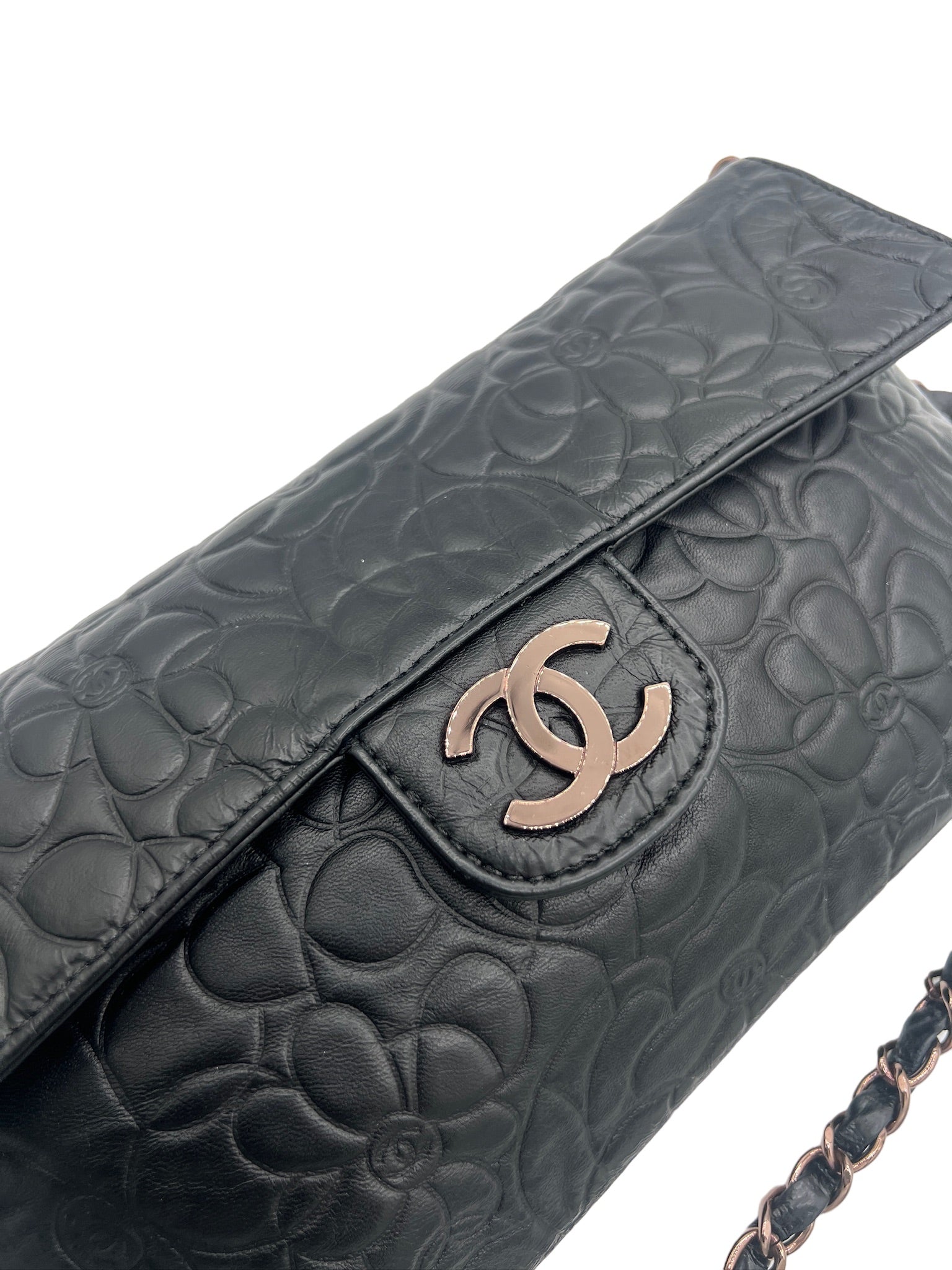 Elevate your style with CHANEL's Camellia Black Rose Quilted WOC. The aged silver hardware adds a touch of elegance to this versatile and fashionable accessory. Perfect for any occasion, this timeless piece is a must-have for any fashion-forward individual. Add it to your collection today!