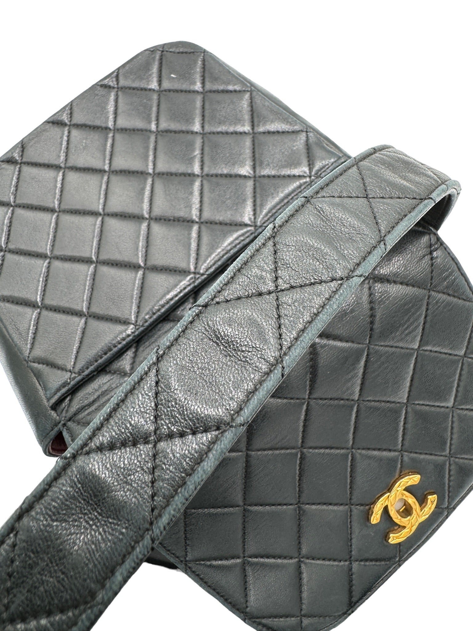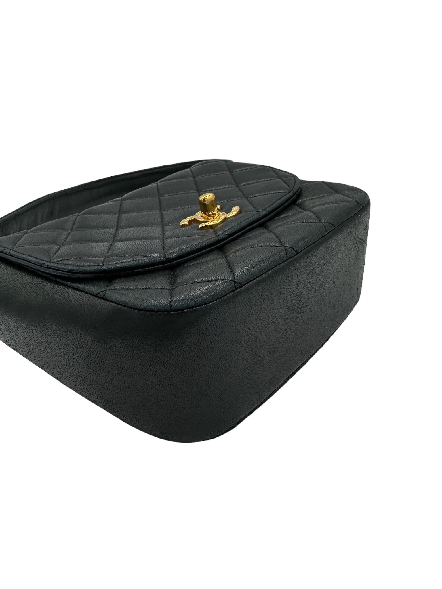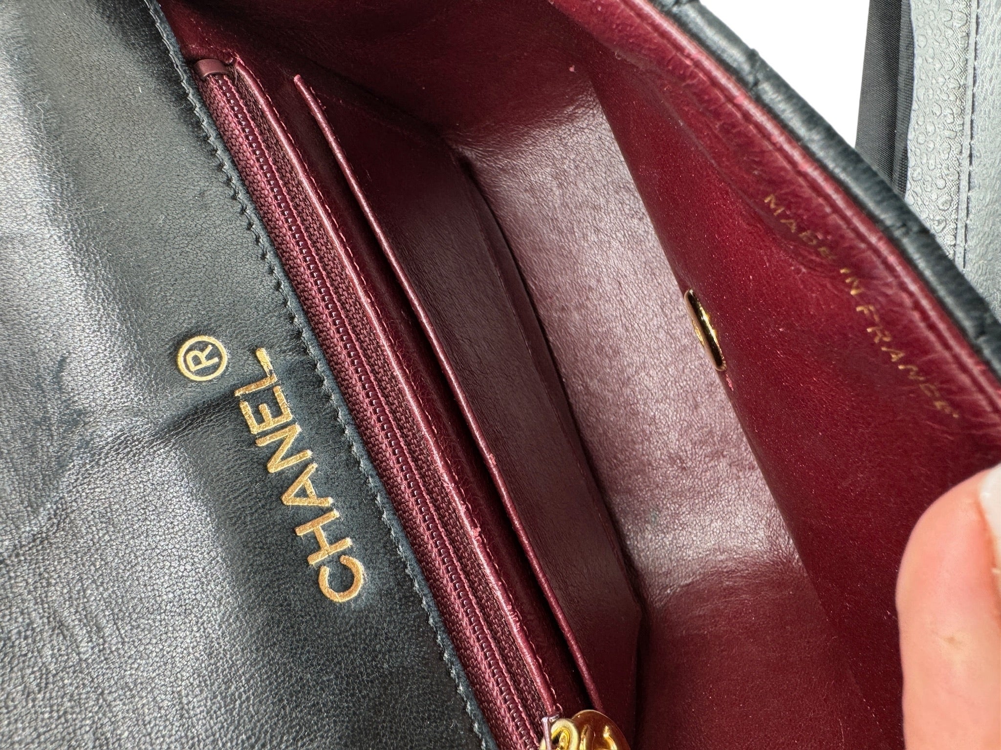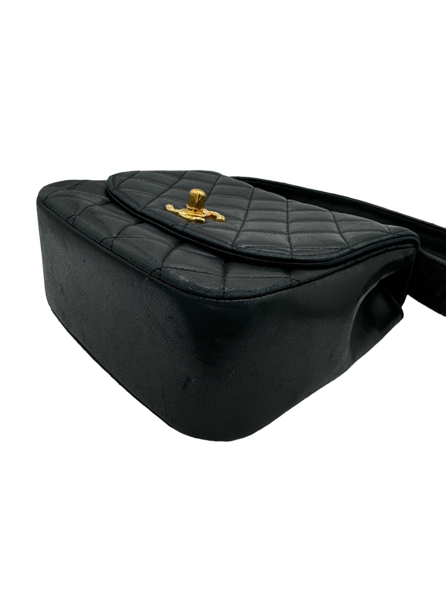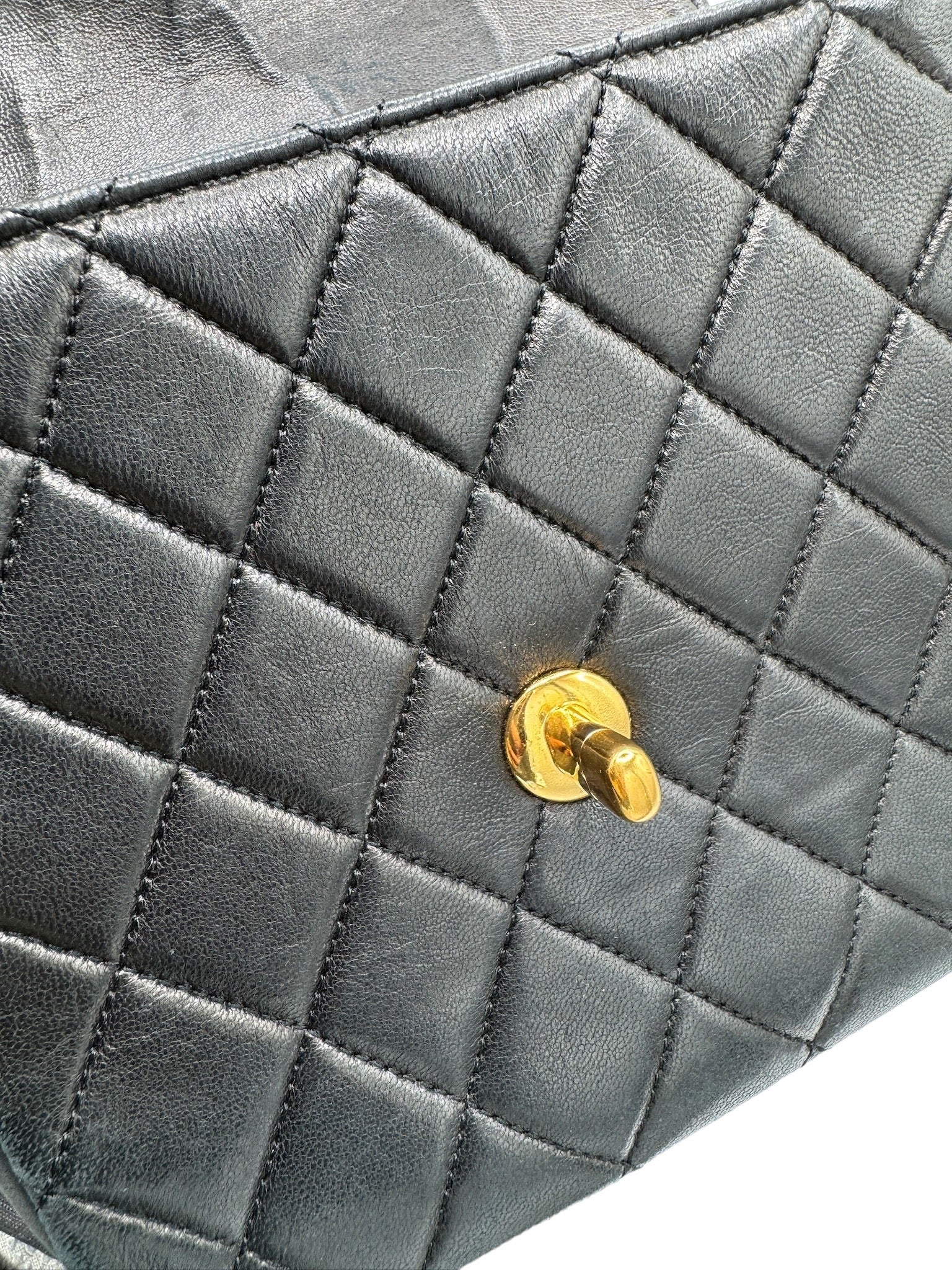 The Chanel Matelasse Black Lambskin Handbag's irresistible charm lies in its luxurious material used to craft it. It's good condition makes it a steal deal!