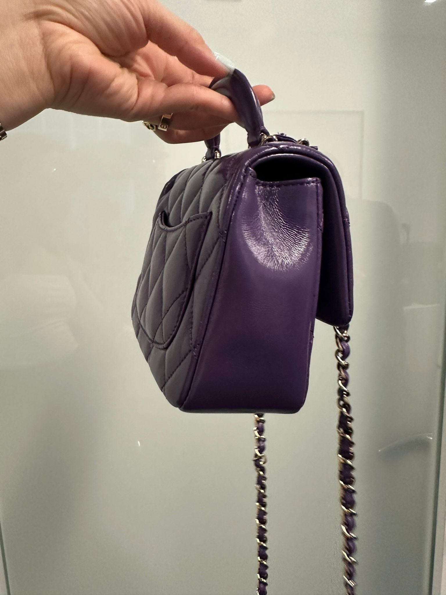 CHANEL - Purple Quilted Lambskin Top Handle Clutch with Chain