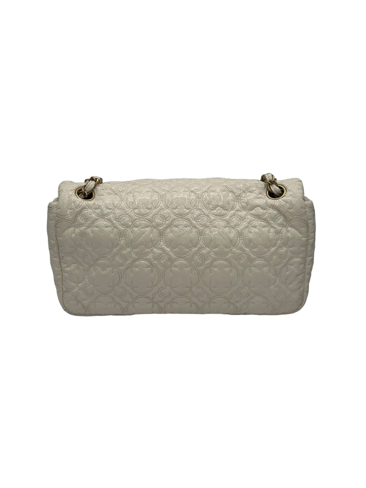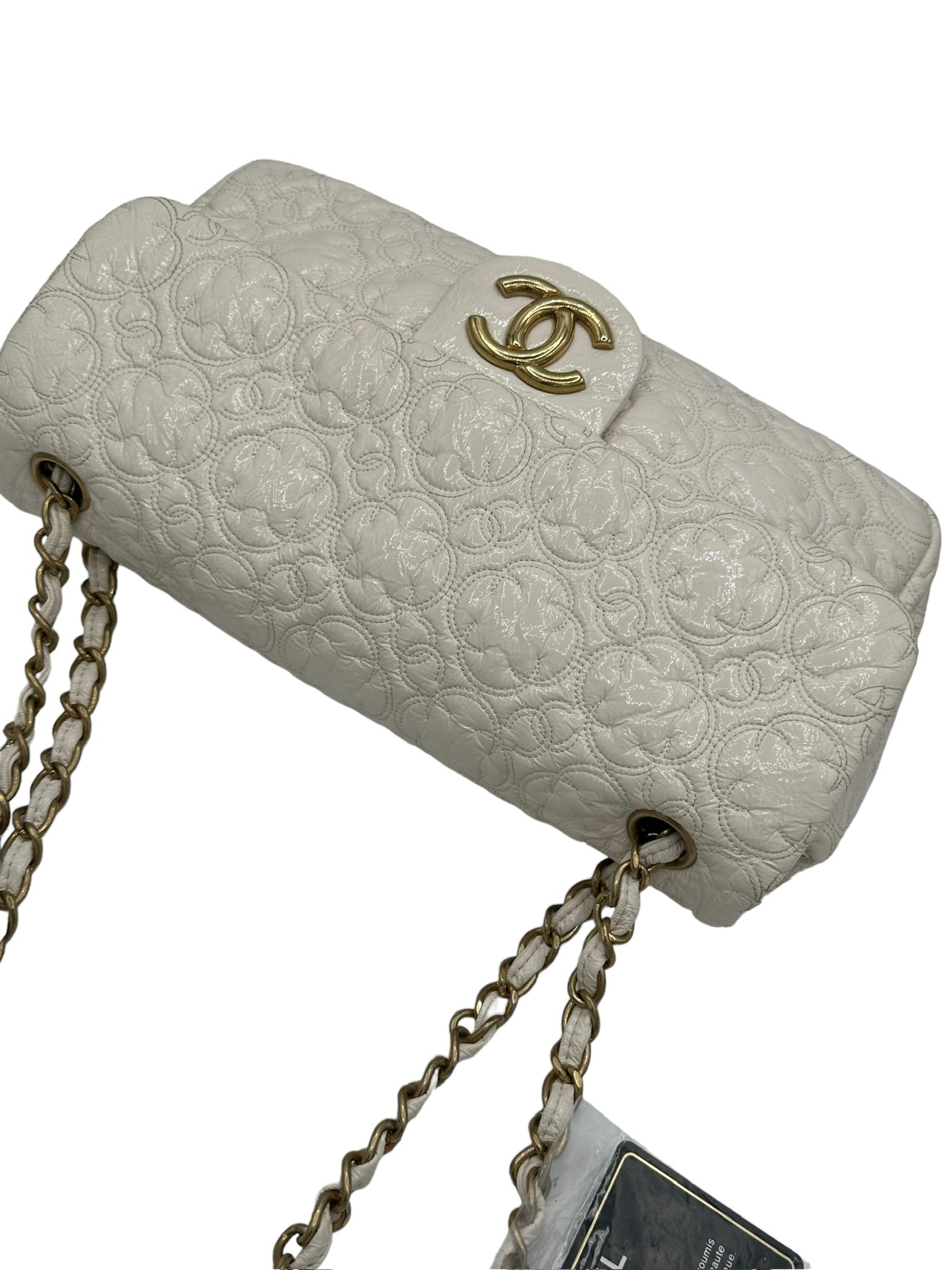 Be the rockstar you were born to be with the CHANEL Rock In Moscow Flap Bag! Made with high quality patent vinyl in a medium size, this bag is perfect for making a statement. Turn heads with its sleek white design and channel your inner confidence. Perfect for any occasion.
