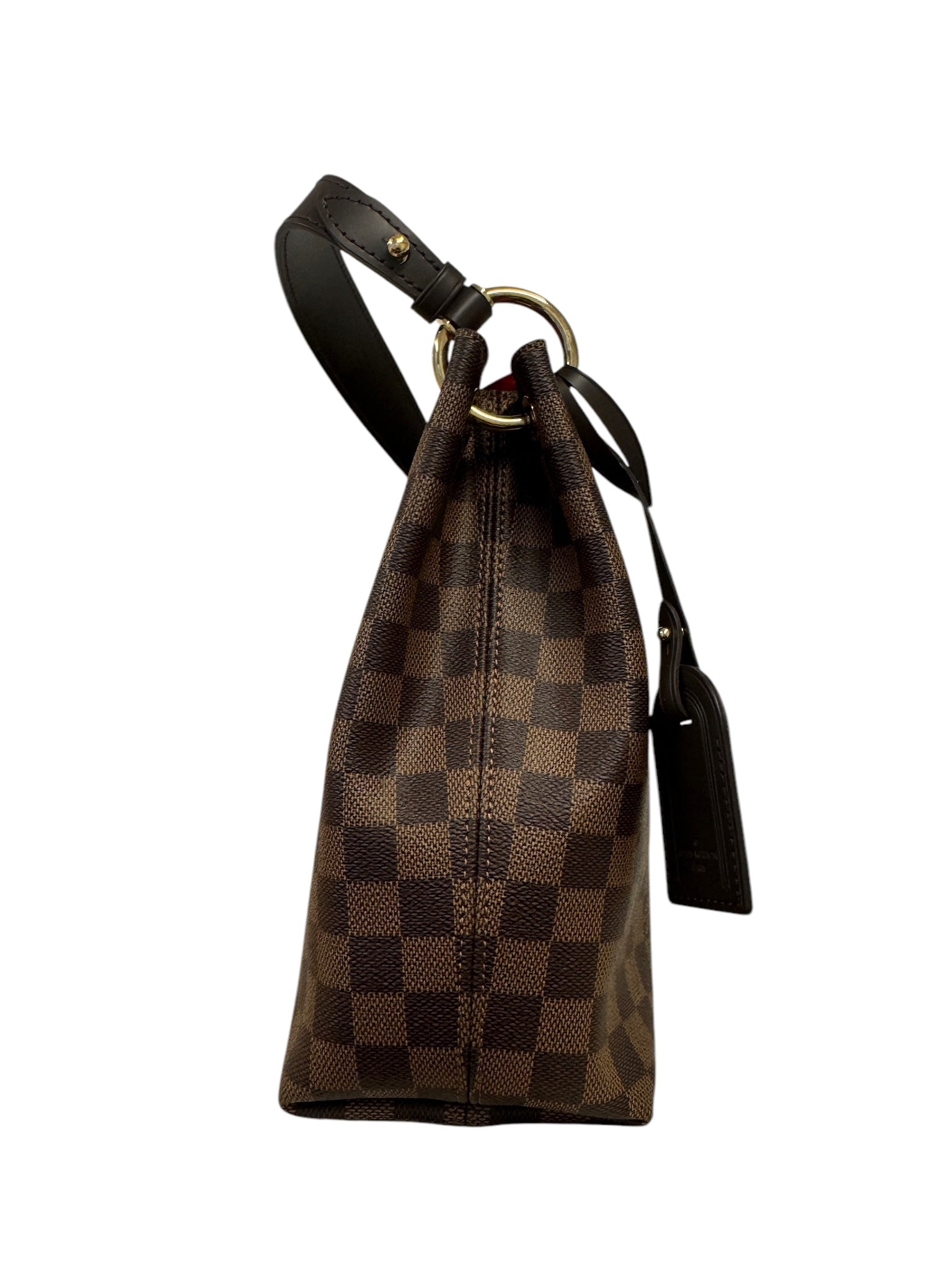 This PRE-OWNED LV Damier Ebene Canvas Graceful PM is a must-have for any fashion enthusiast! With a MSRP of 1,850, this bag is an excellent value. From its perfect size to its durable canvas material, every detail of this bag is crafted with the utmost care. The exterior color of brown is versatile and timeless, while the included box, dustbag, ID tag, receipt, and gift ribbon make it the perfect addition to your collection. Made in the US with dimensions of 11.5 x 10.5 x 4.5 and a strap length of 6.00, this bag is both stylish and functional. Own a piece of luxury with this gorgeous bag!