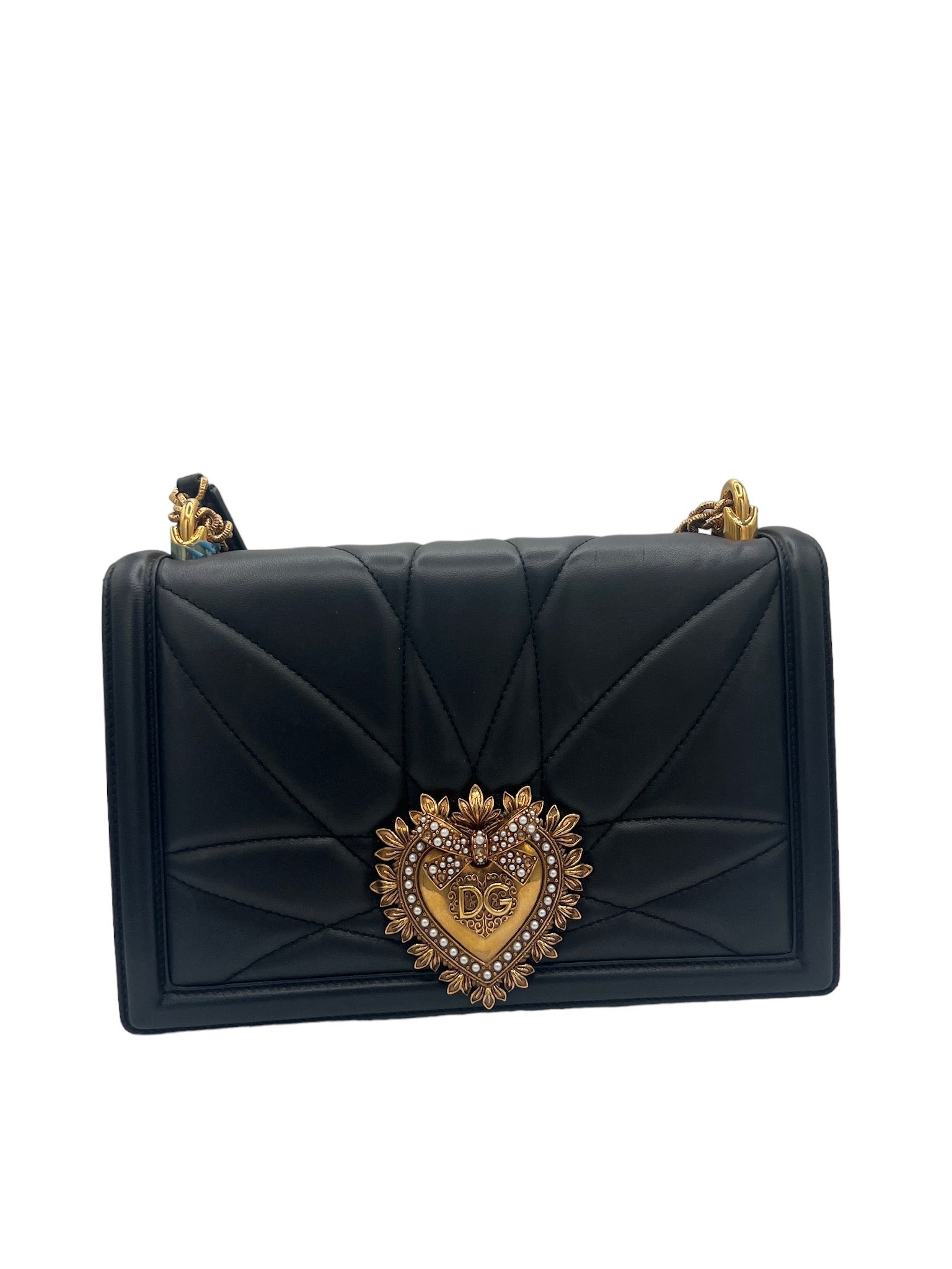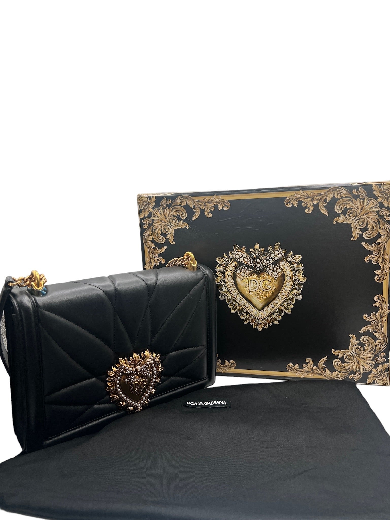 This stunning DOLCE&GABBANA Black Leather Devotion Shoulder Bag will definitely become your go-to accessory as soon as you add it to your collection!