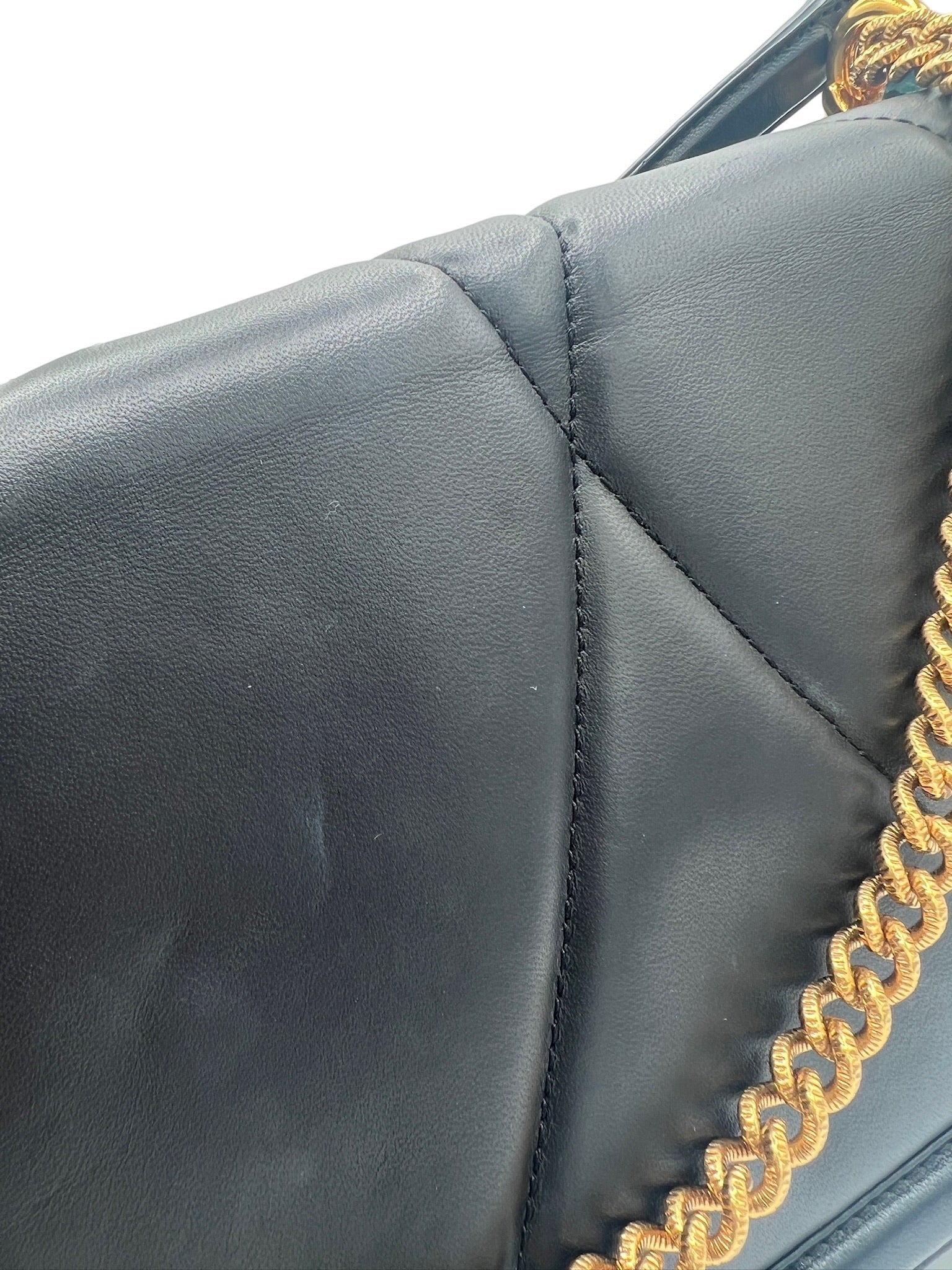 - Description & Condition: This product is pre-owned but has been maintained very well; hence its condition description type is "very good". We have ensured its authenticity via our trusted authenticator/agency entrupy. *Details: The bag is in very good condition overall. On the outside, there are small scratches, small dirt marks, and some glitter adhesion. There is also minor metal coat peeling at the bottom with slight corner rubbing at the main opening. Inside, there are small scratches, small dirt marks, and light dirt marks, particularly noticeable on the pocket where there is metal coat peeling. Please note that the accessories are damaged: the box has scratches, dirt marks, and is slightly crushed, while the dust bag has slight dirt marks.