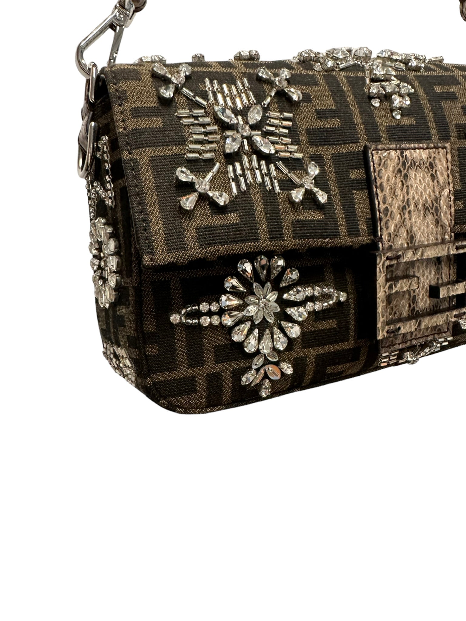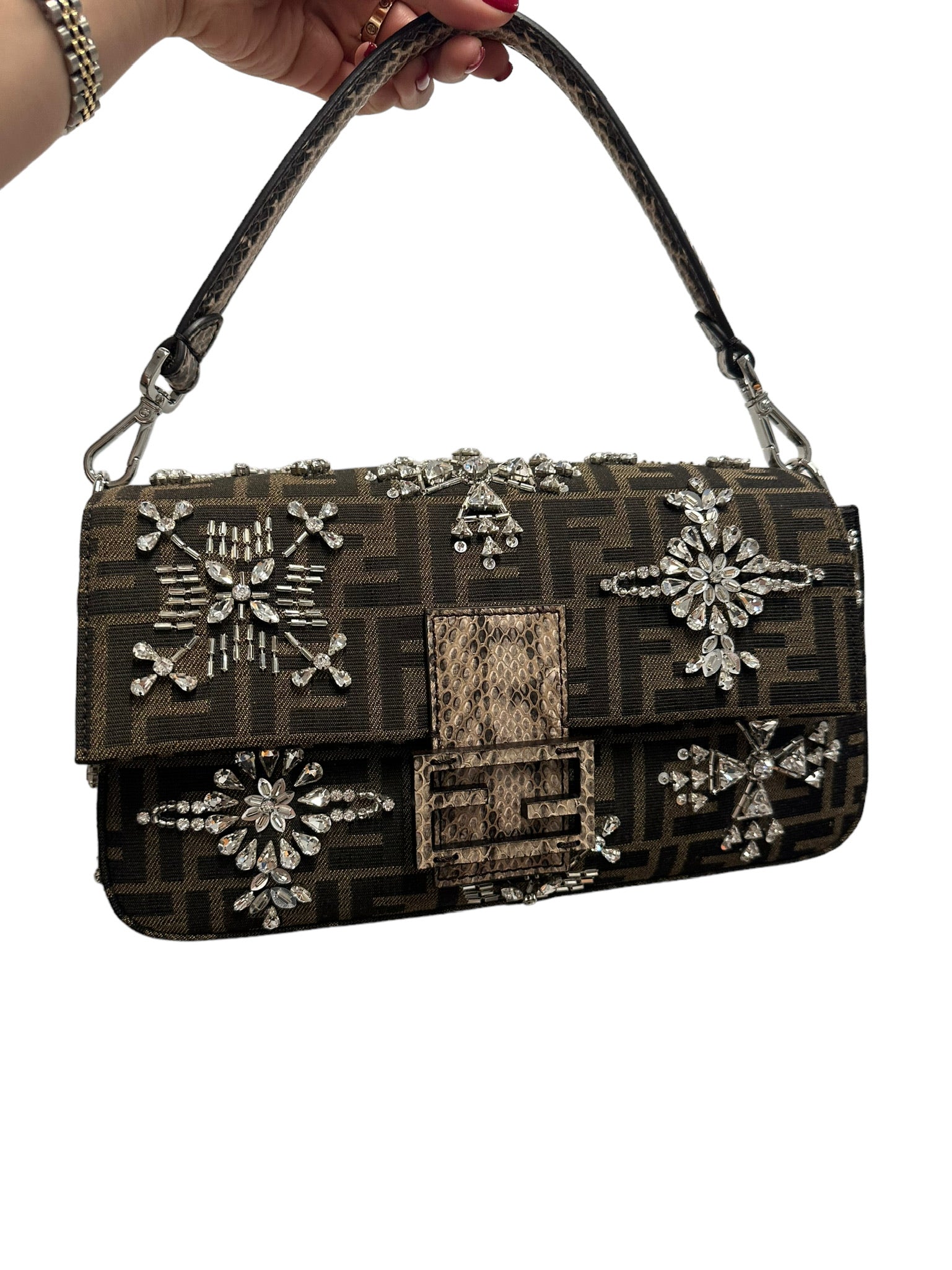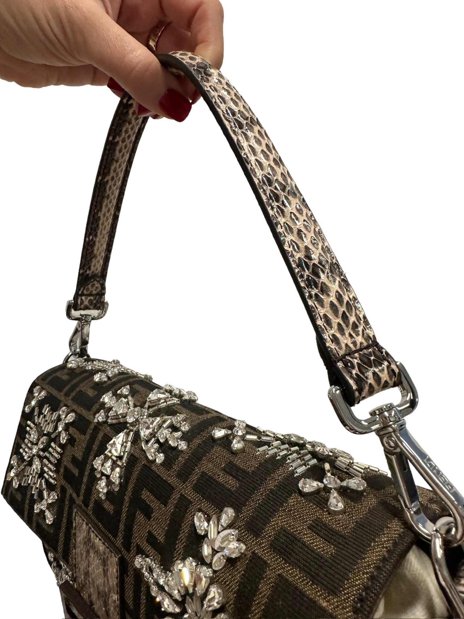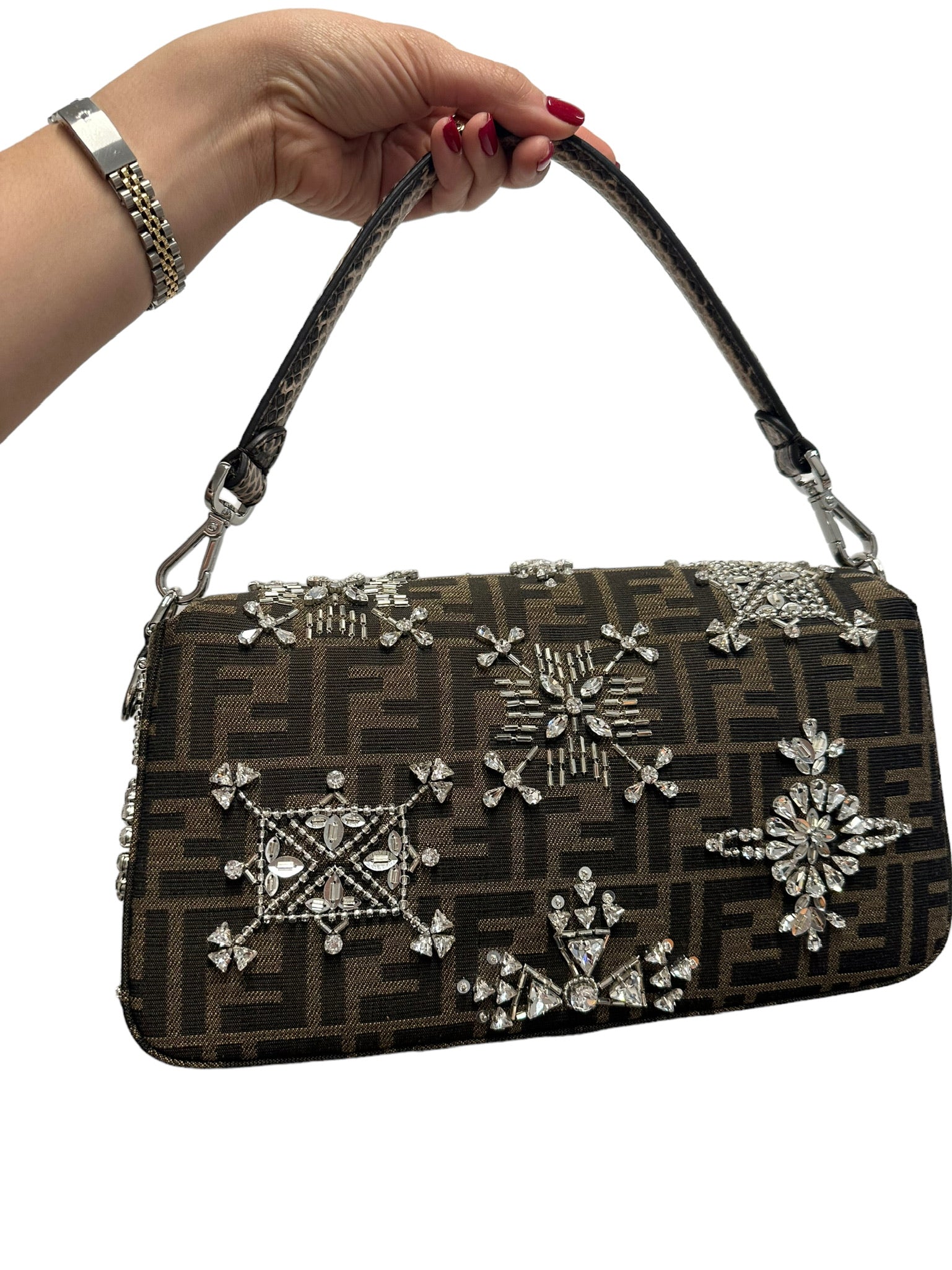 FENDI - Brown Zucca Canvas Emebellished Re-Edition Baguette