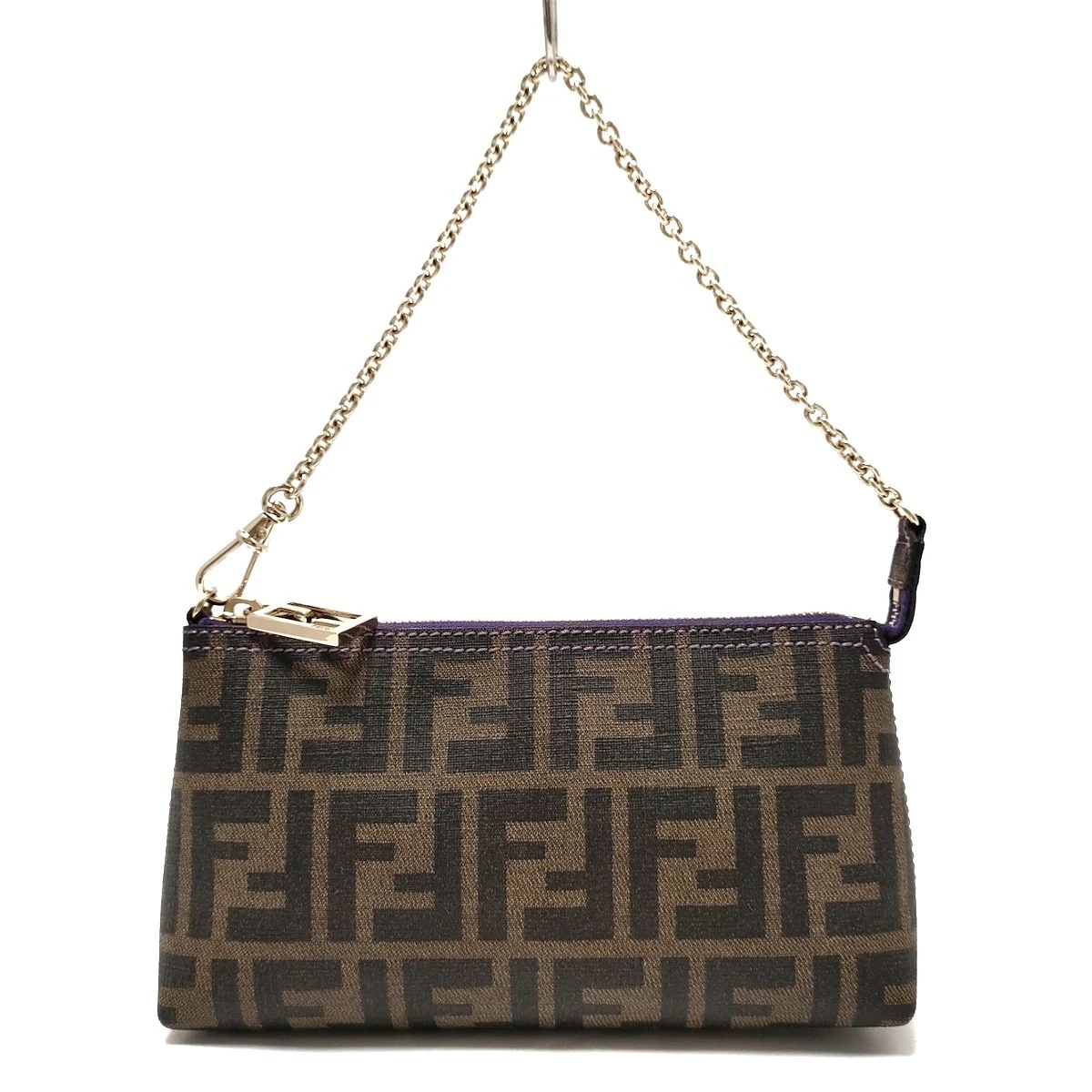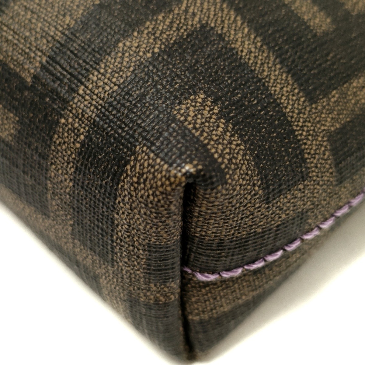 This pre-owned FENDI Zucca Brown Black PVC Handbag is a stylish and versatile top handle bag perfect for everyday use.