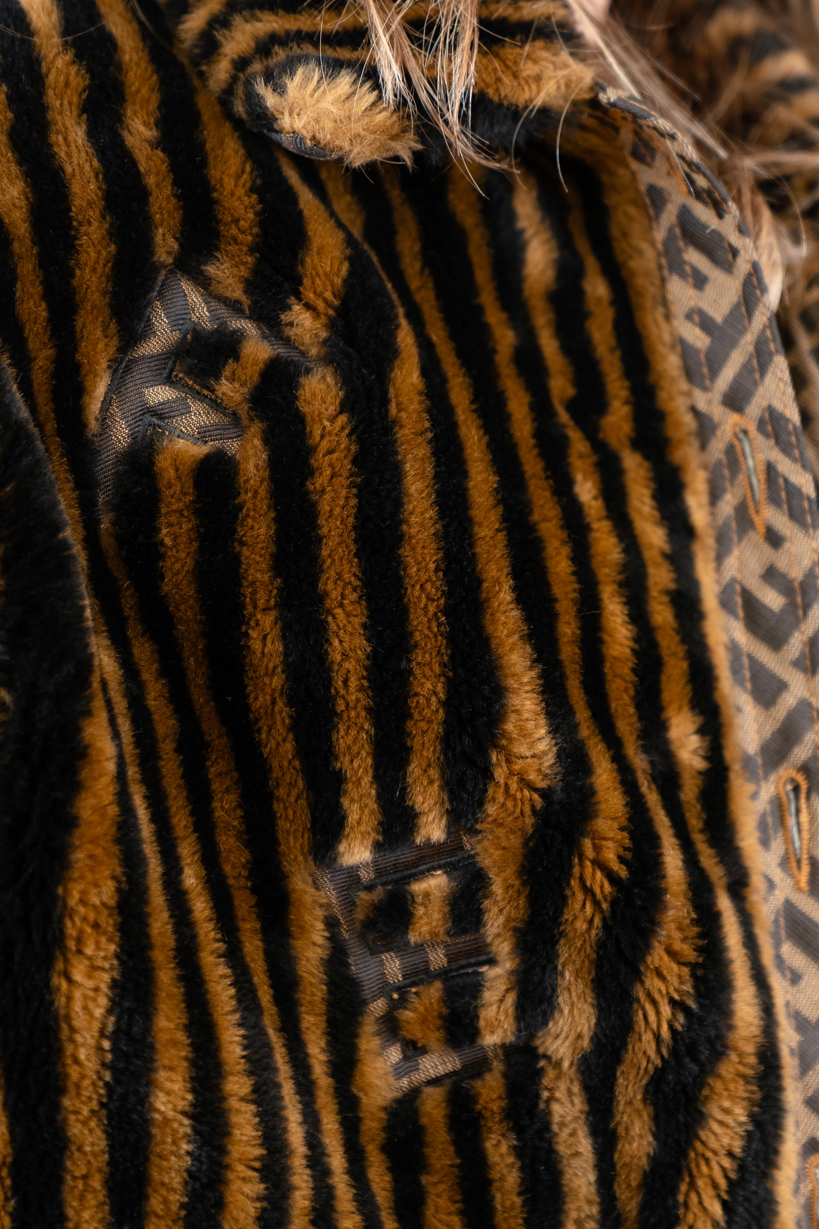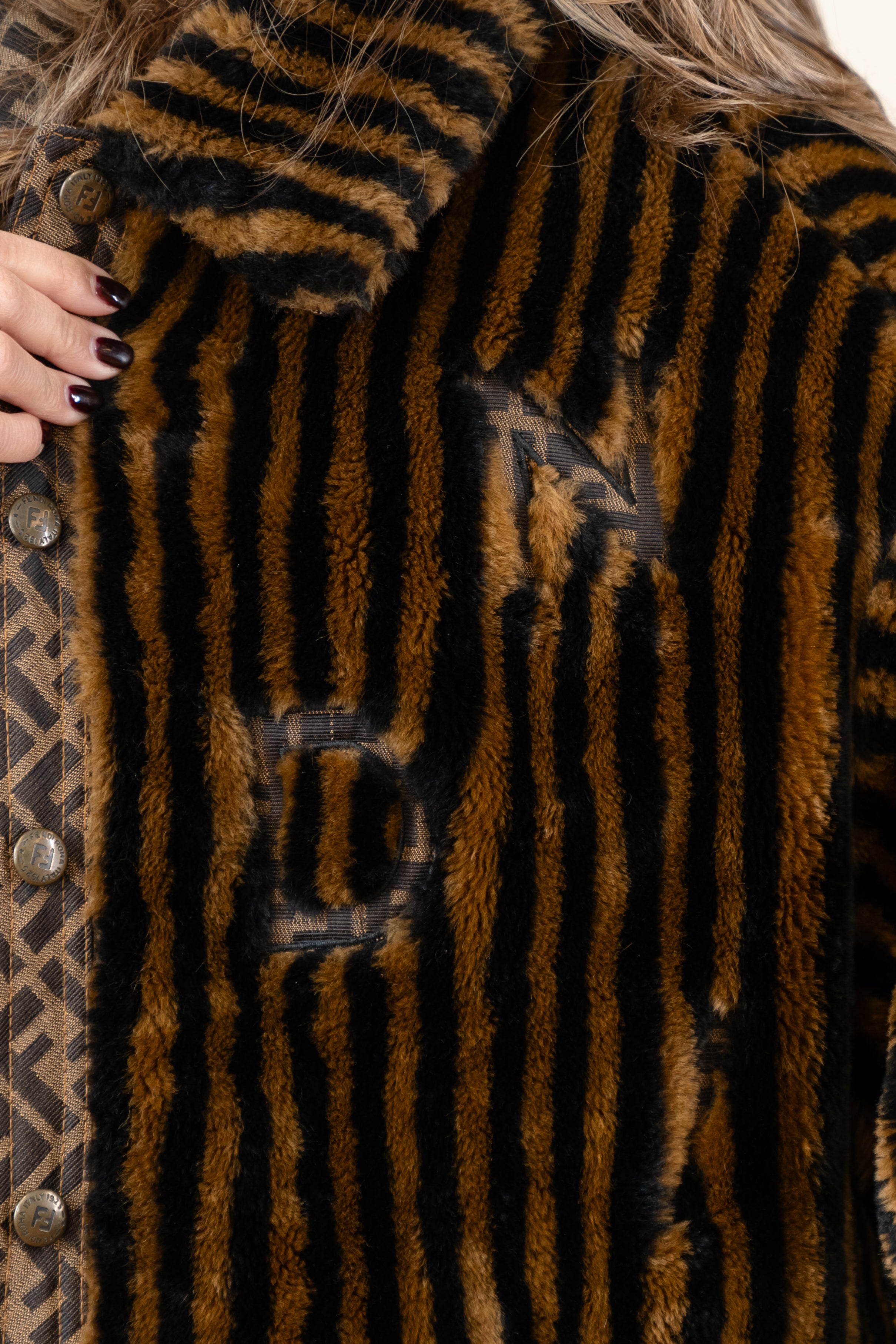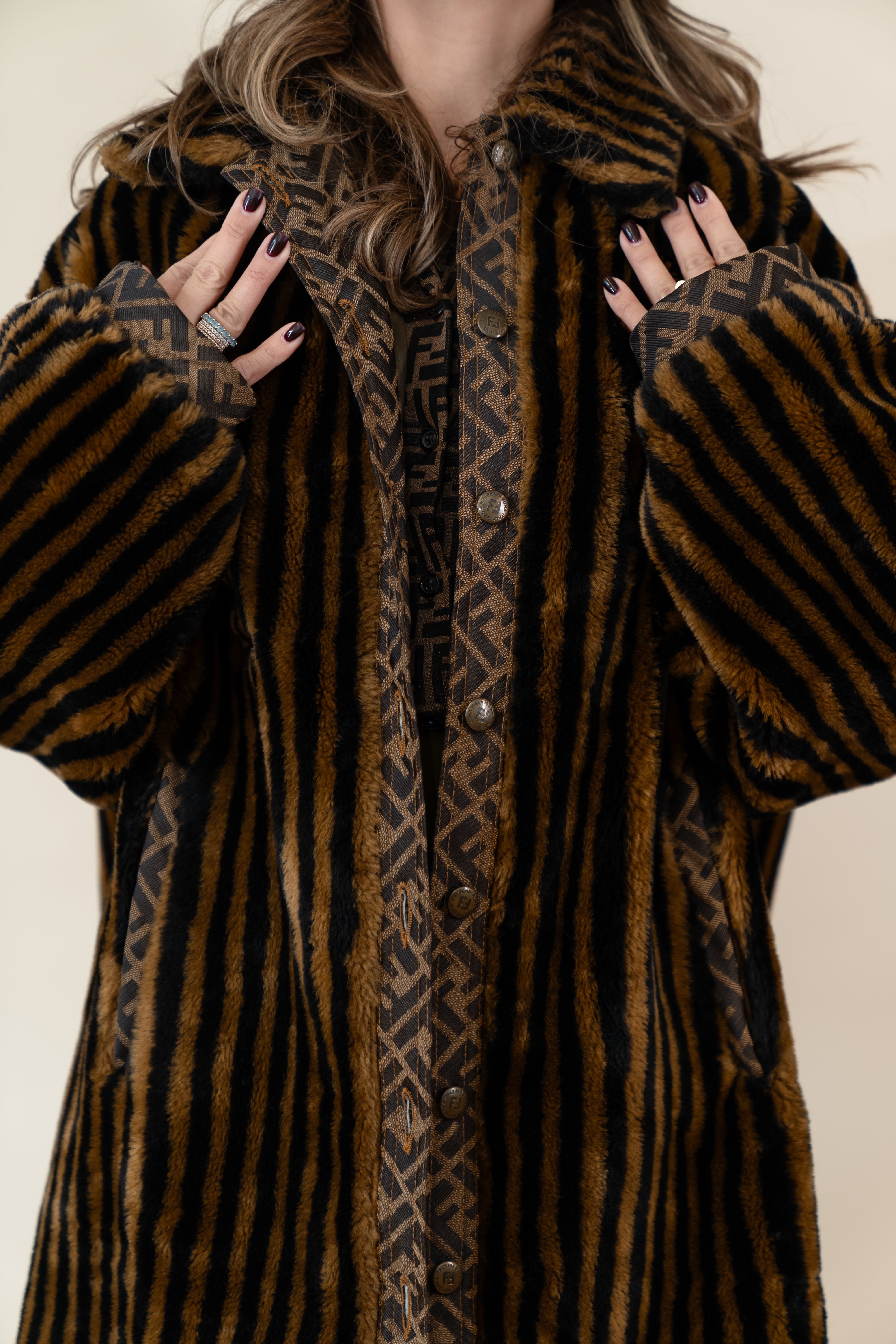 Elevate your wardrobe with this Fendi Vintage Brown Striped Logo Coat. Featuring the iconic Fendi logo and timeless brown stripes, this coat merges classic luxury with distinctive style. Crafted for warmth and sophistication, it’s perfect for making a bold statement during cooler seasons while showcasing your refined taste.