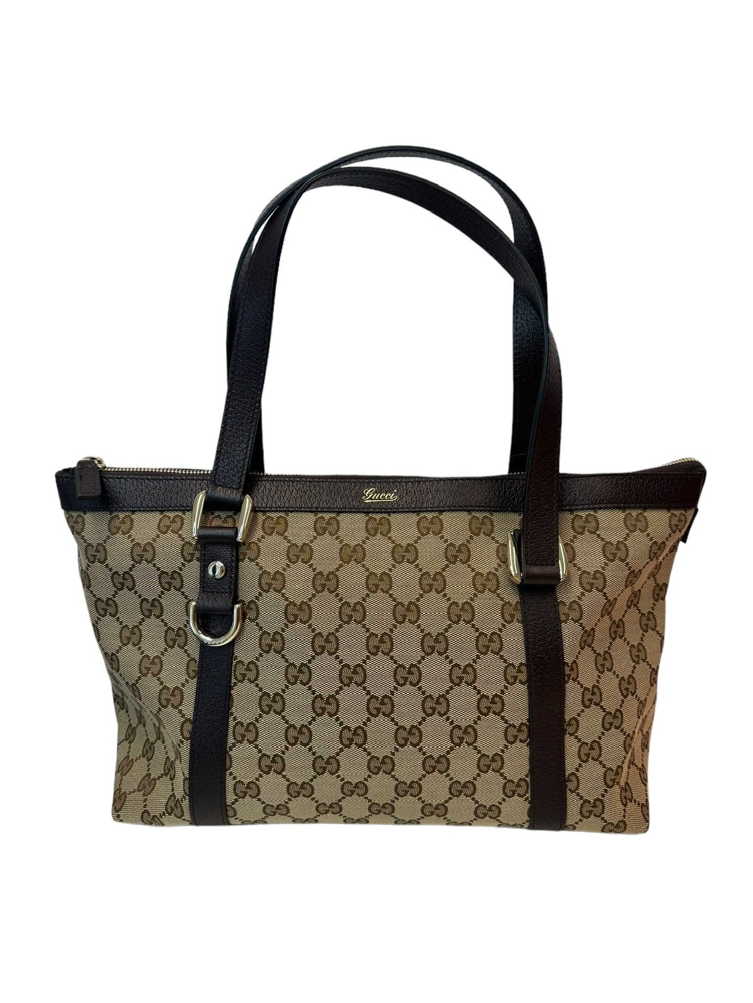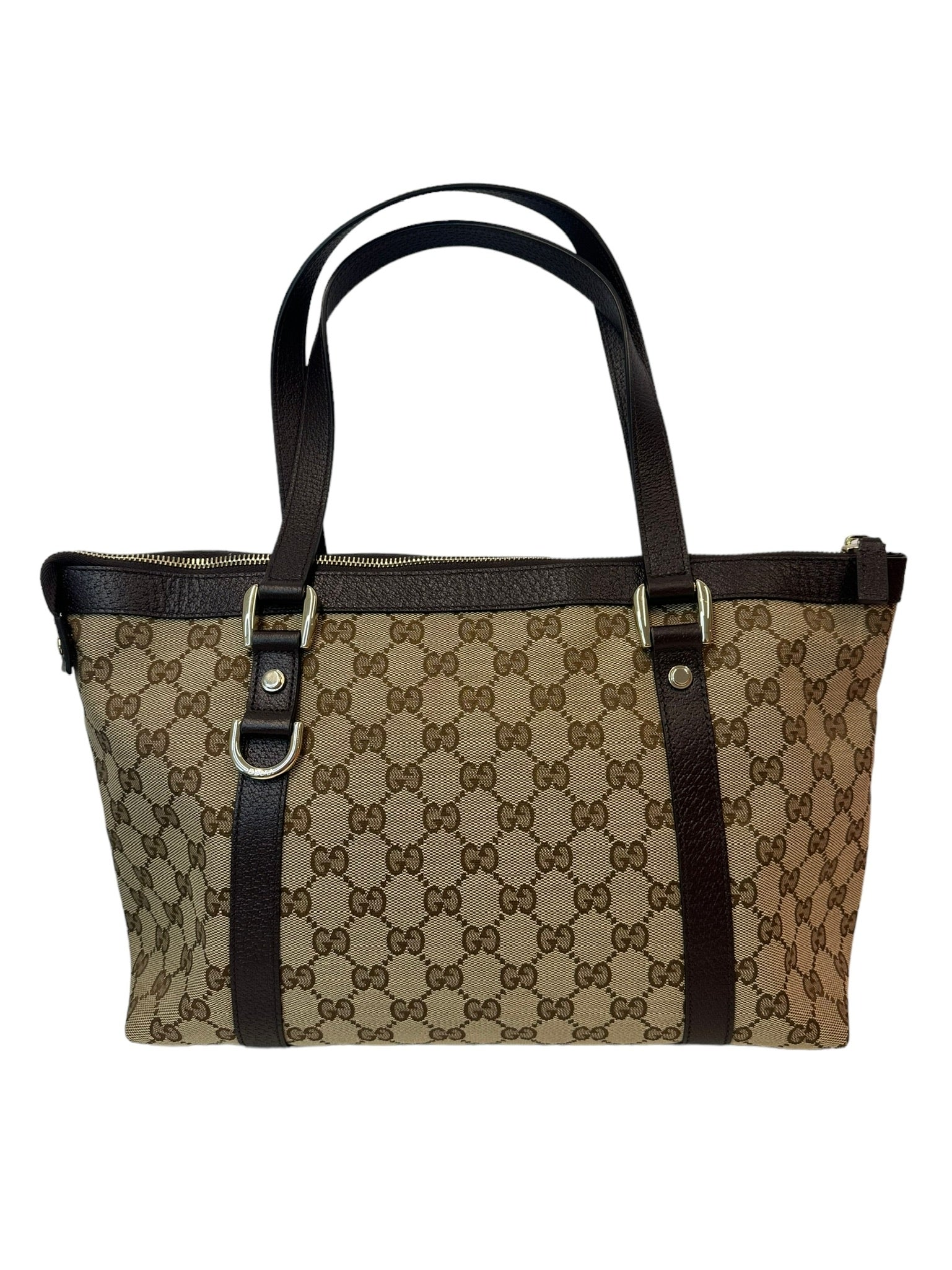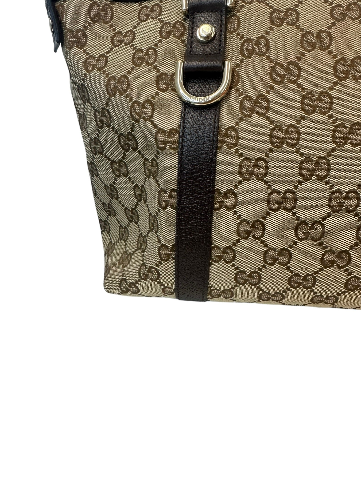 Expertly crafted with durable canvas and sleek silver hardware, the GUCCI Abbey GG Tote is perfect for everyday use. Its high-quality materials ensure longevity, making it a stylish and practical investment. Elevate your fashion game with this must-have accessory.