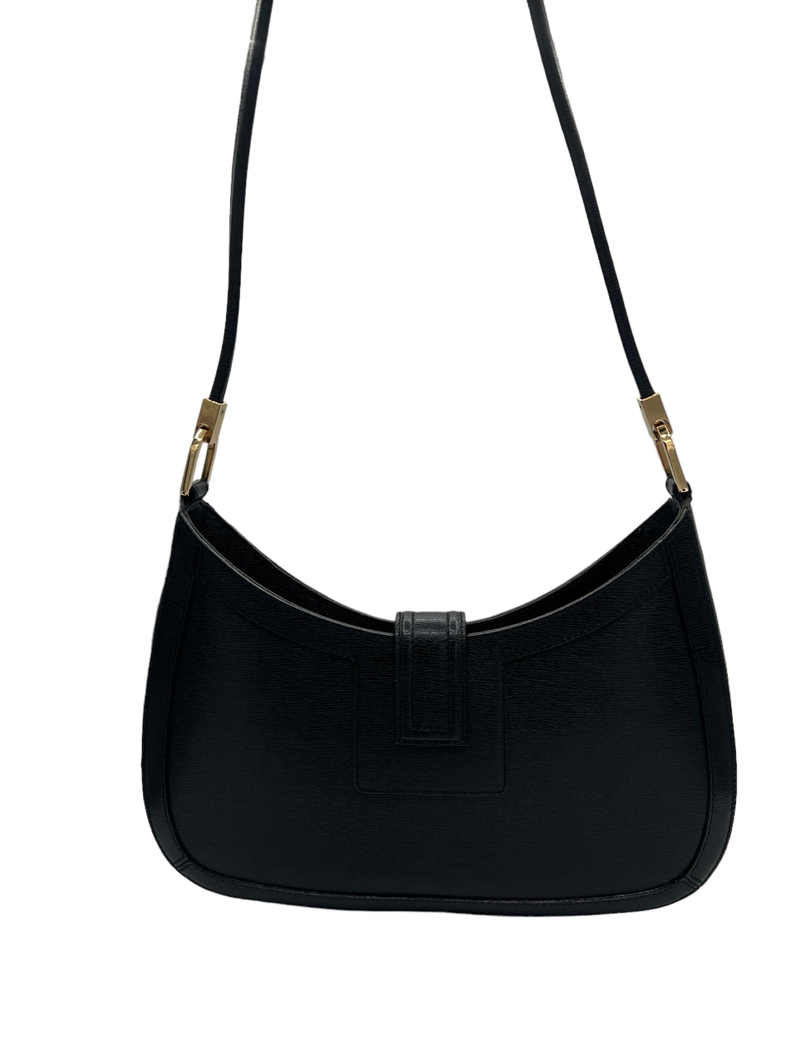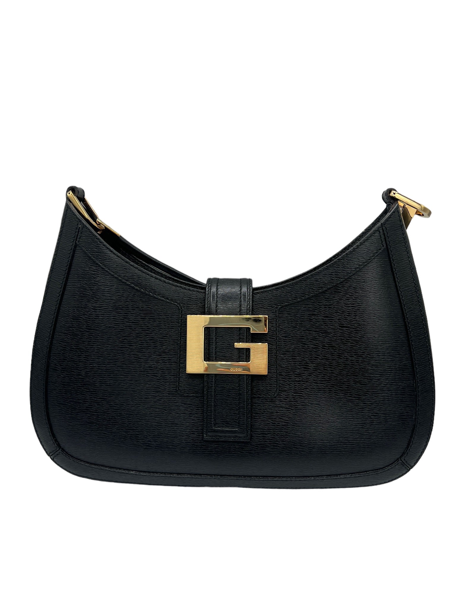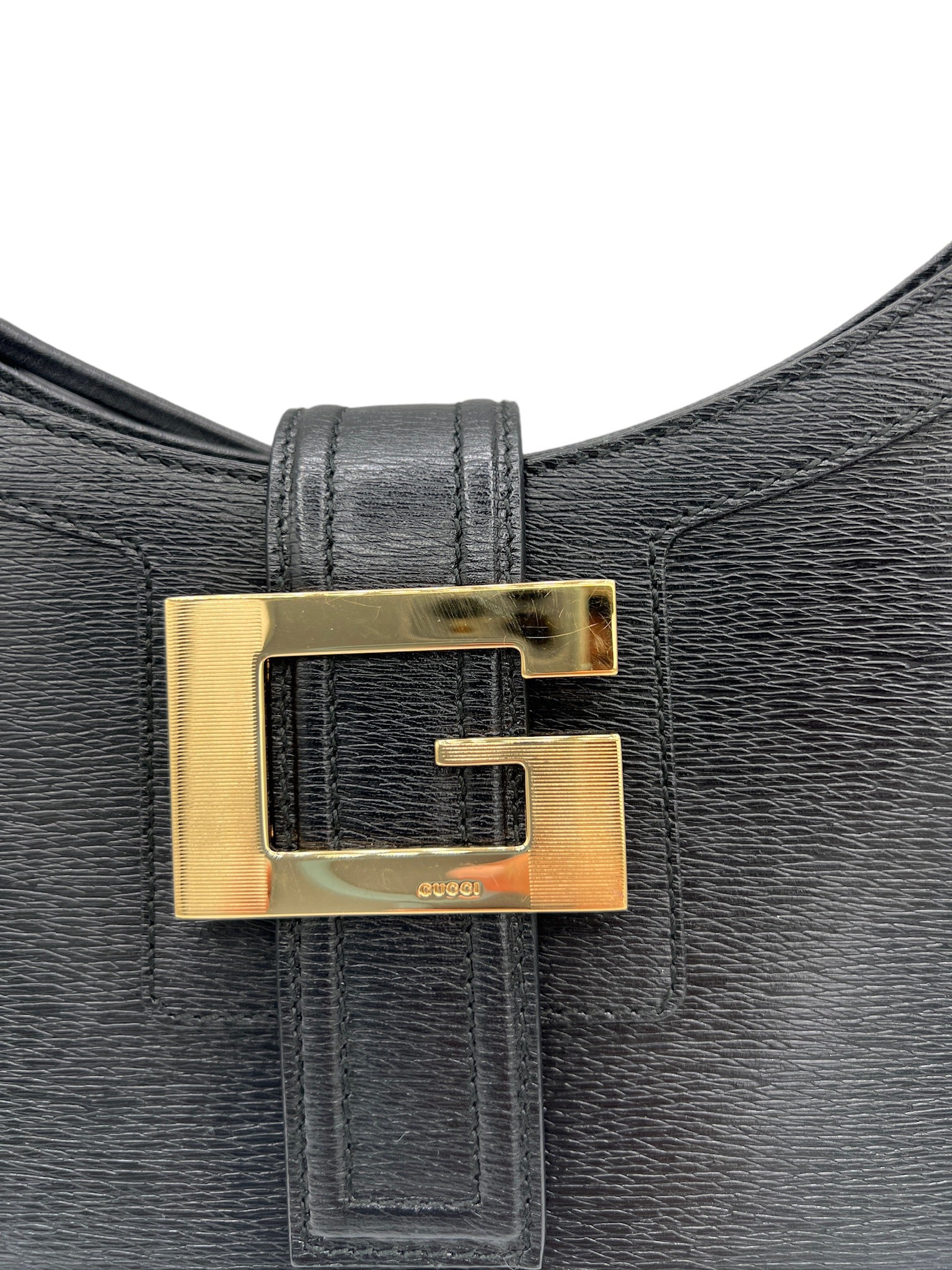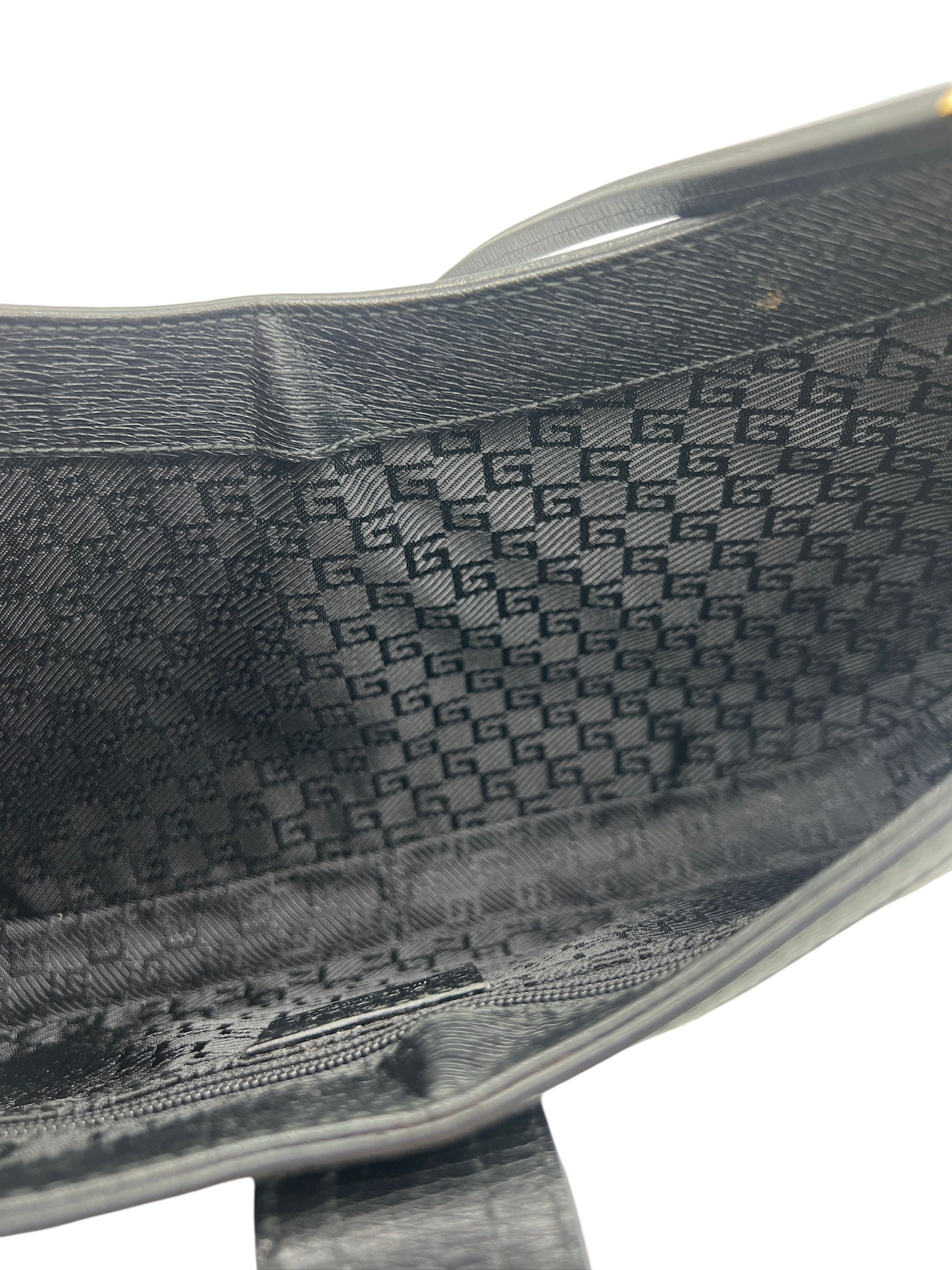 This pre-owned Gucci black leather shoulder bag is the perfect addition to your wardrobe with its sleek and sophisticated design.