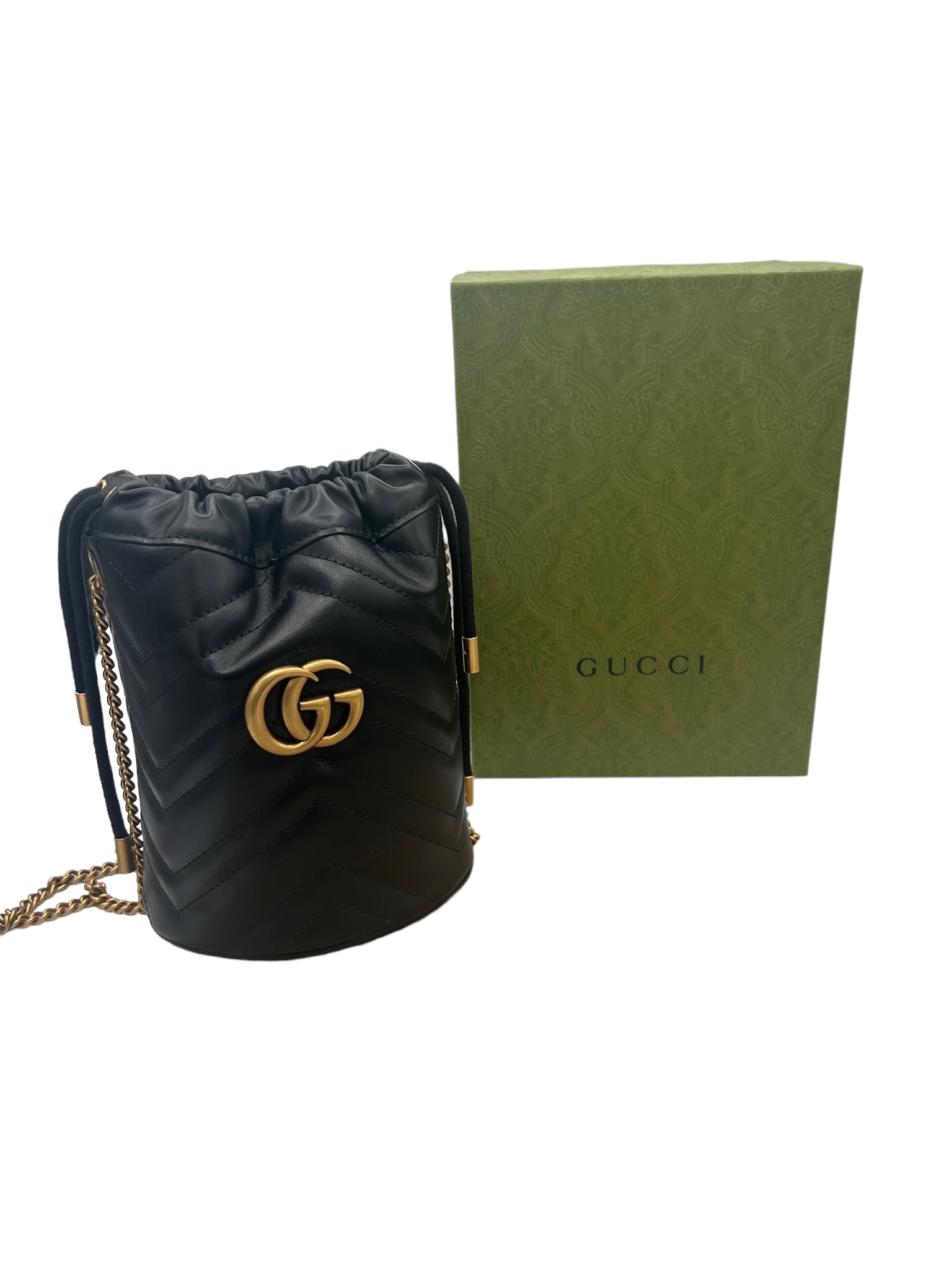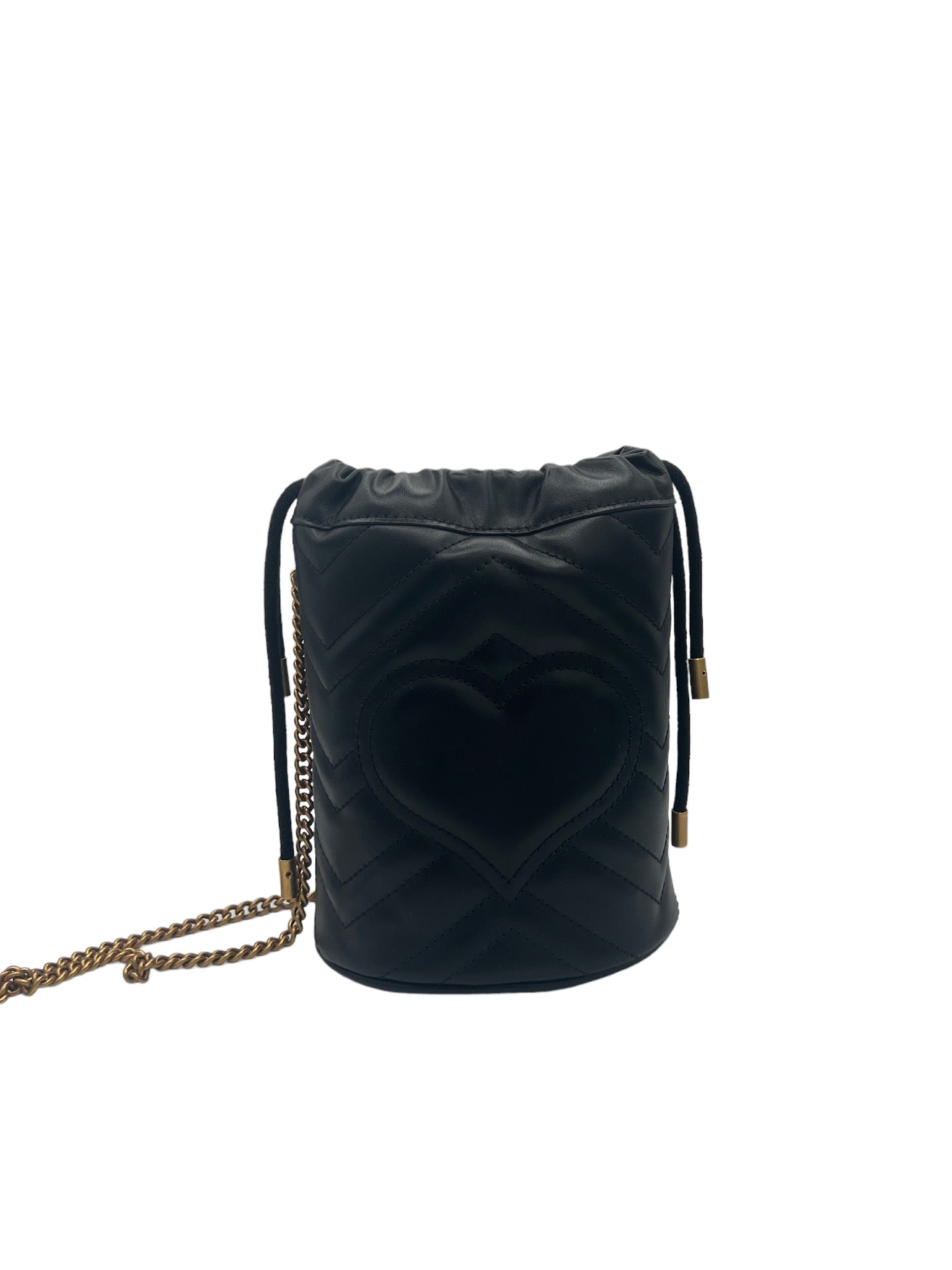 GUCCI - Black Matelasse Leather Mini GG Marmont Bucket Bag