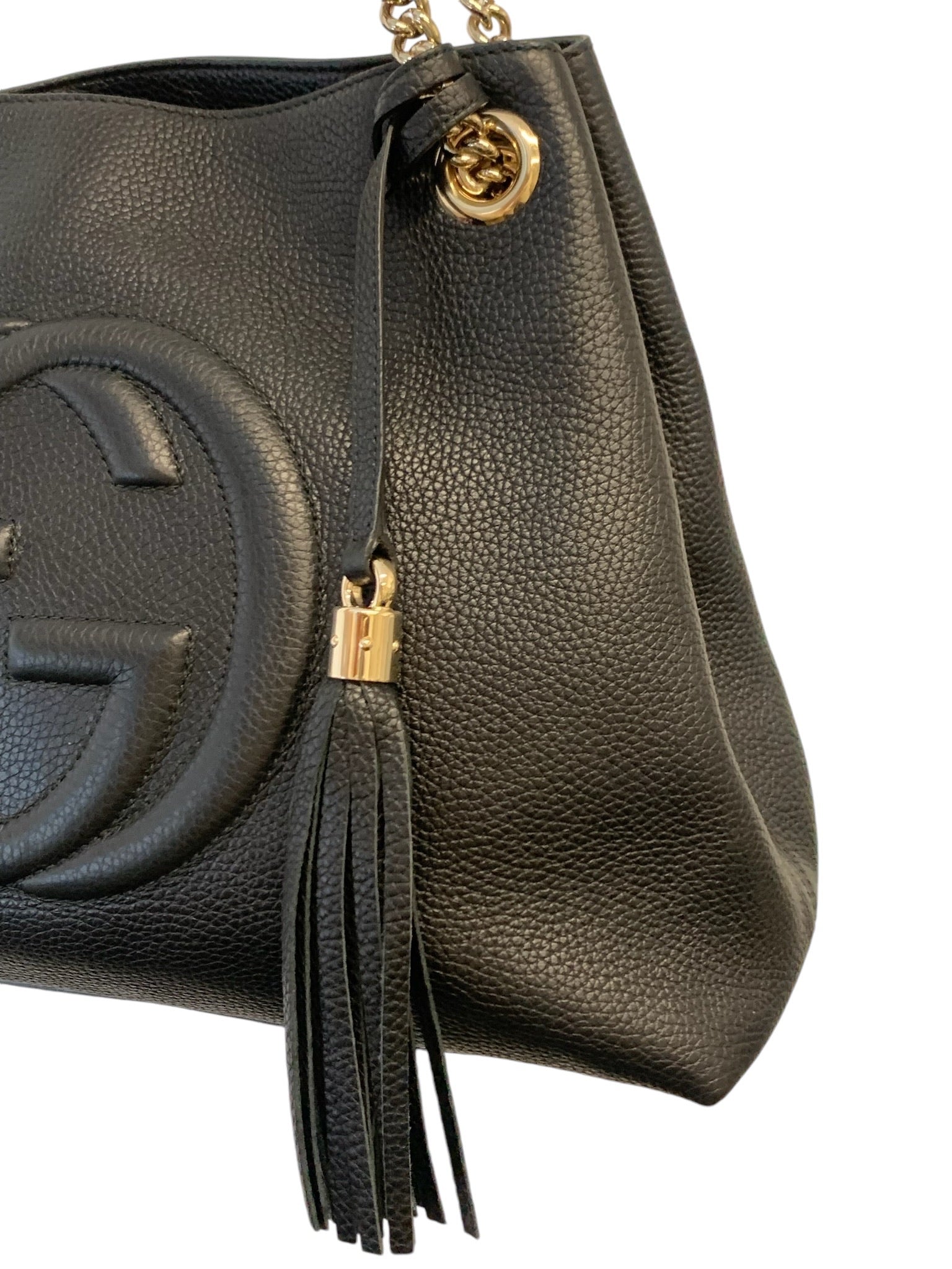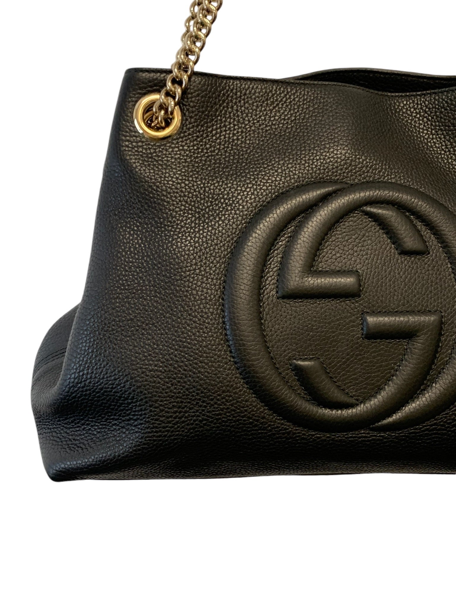 GUCCI - Black Pebbled Leather Soho Disco Chain Tote