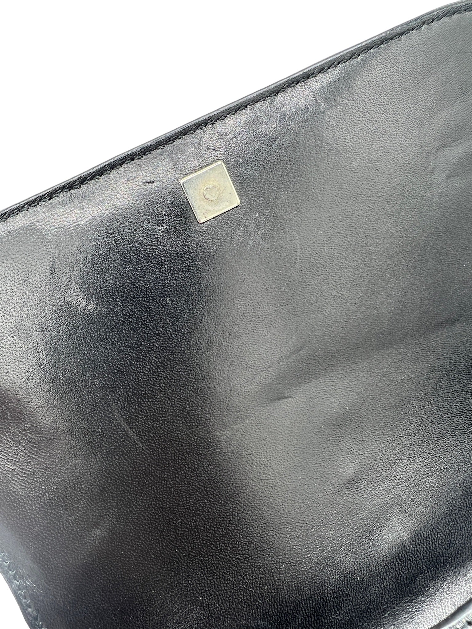 This Pre-Owned GUCCI Black Vintage Shoulder Bag is a must-have for any fashion enthusiast. Featuring silver hardware, this bag exudes a vintage charm that will elevate any outfit.