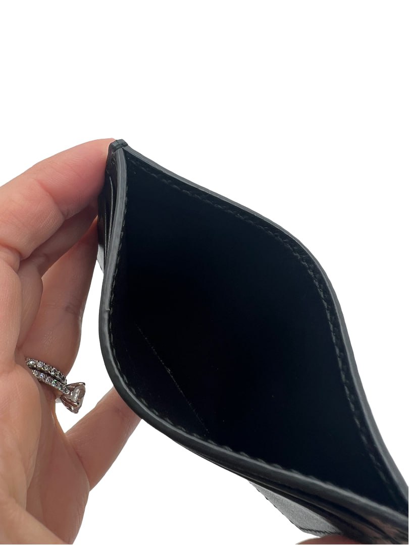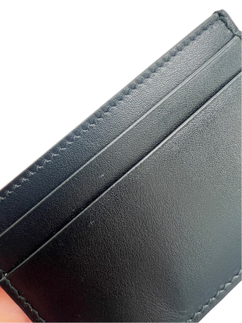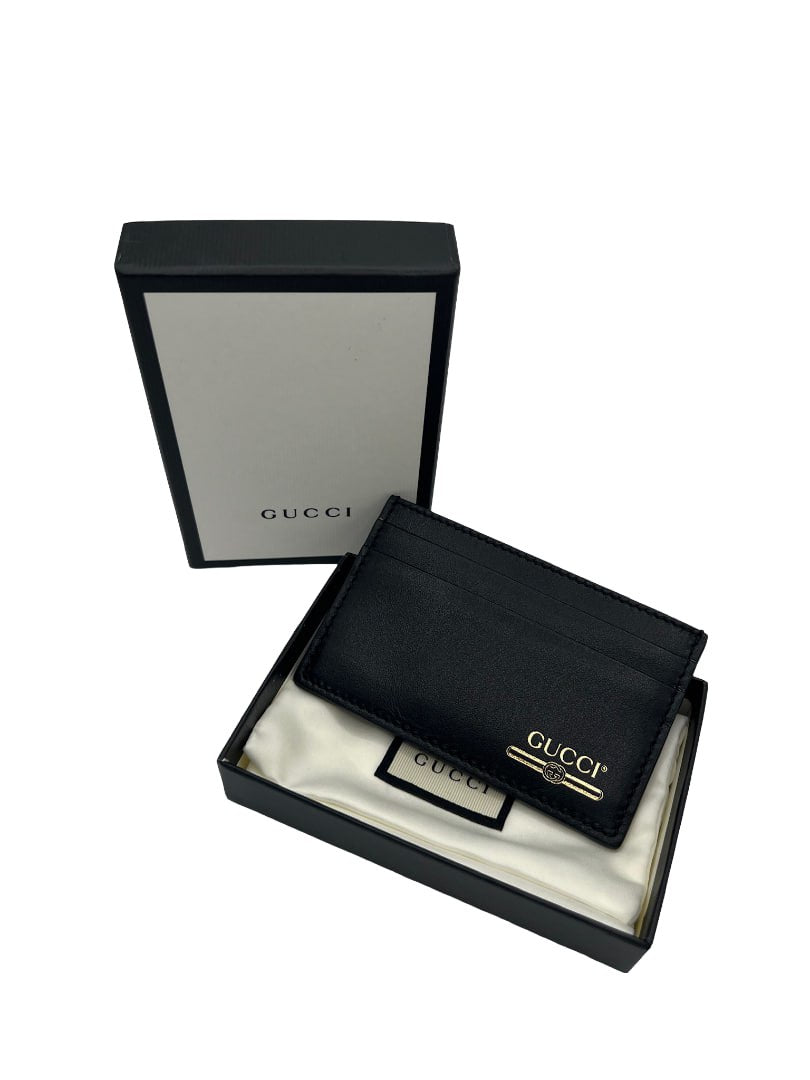 This pre-owned GUCCI card case in black and gold leather is a sleek and practical accessory for any fashion-savvy individual. Crafted from high-quality leather, this small leather good is in excellent condition. Its compact size easily fits into bags or pockets while keeping your cards organized. Authenticity is guaranteed by an entrupy authenticator.