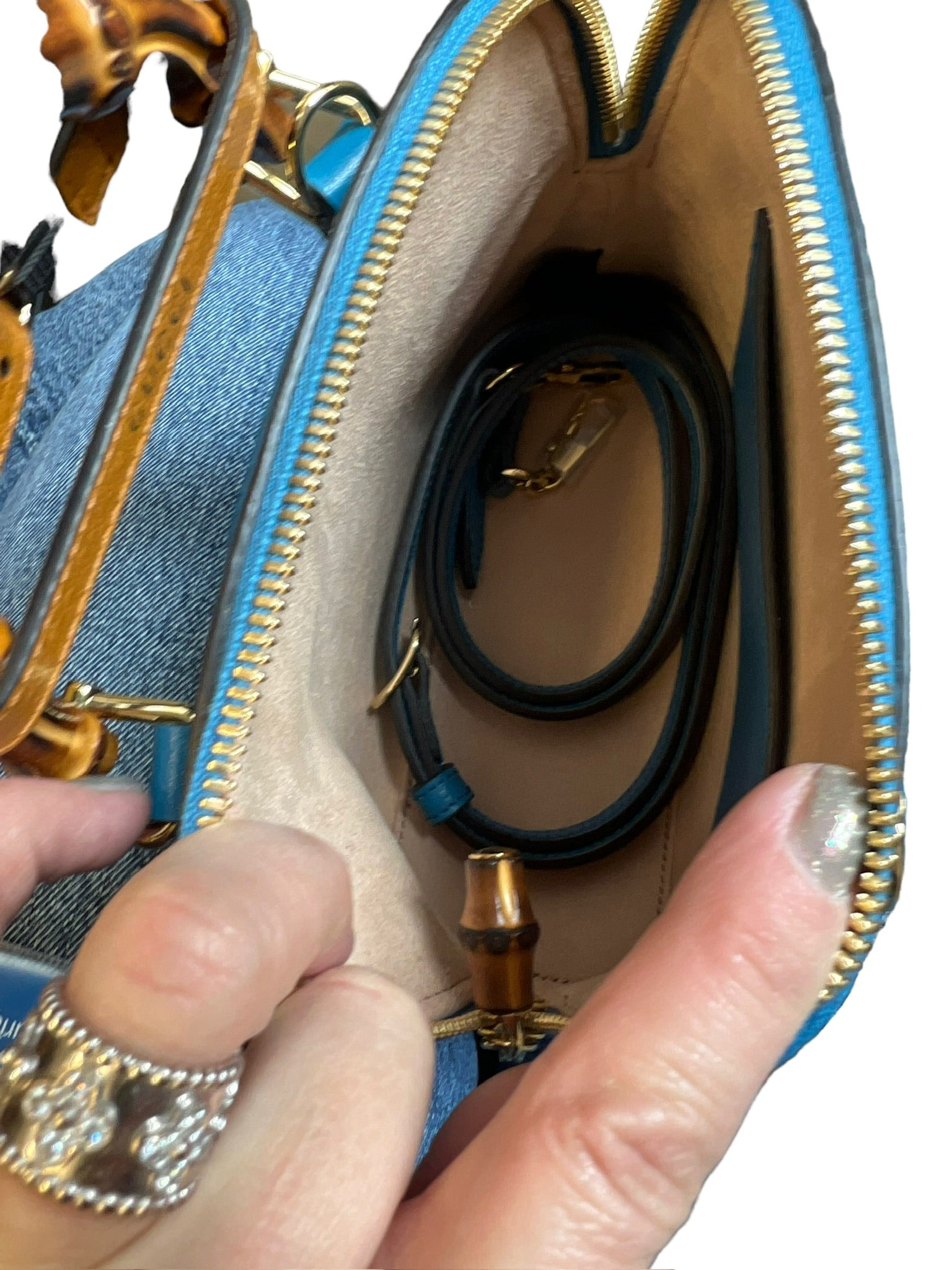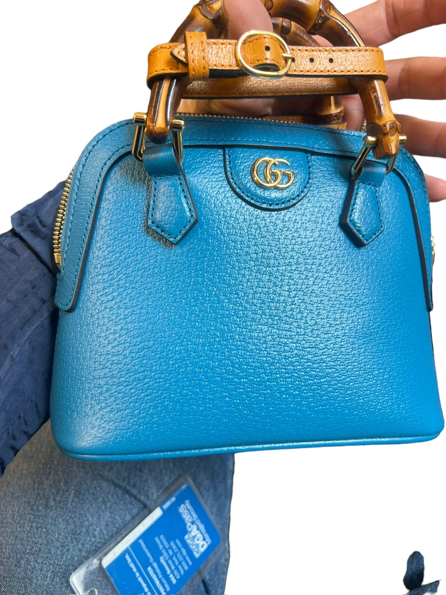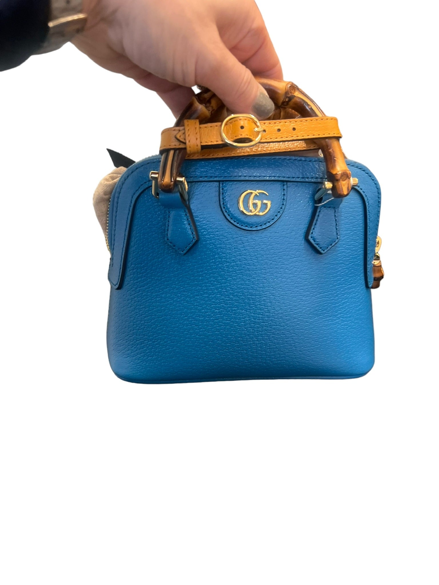 GUCCI - Diana Mini Bamboo Double G Tote Bag Blue Leather