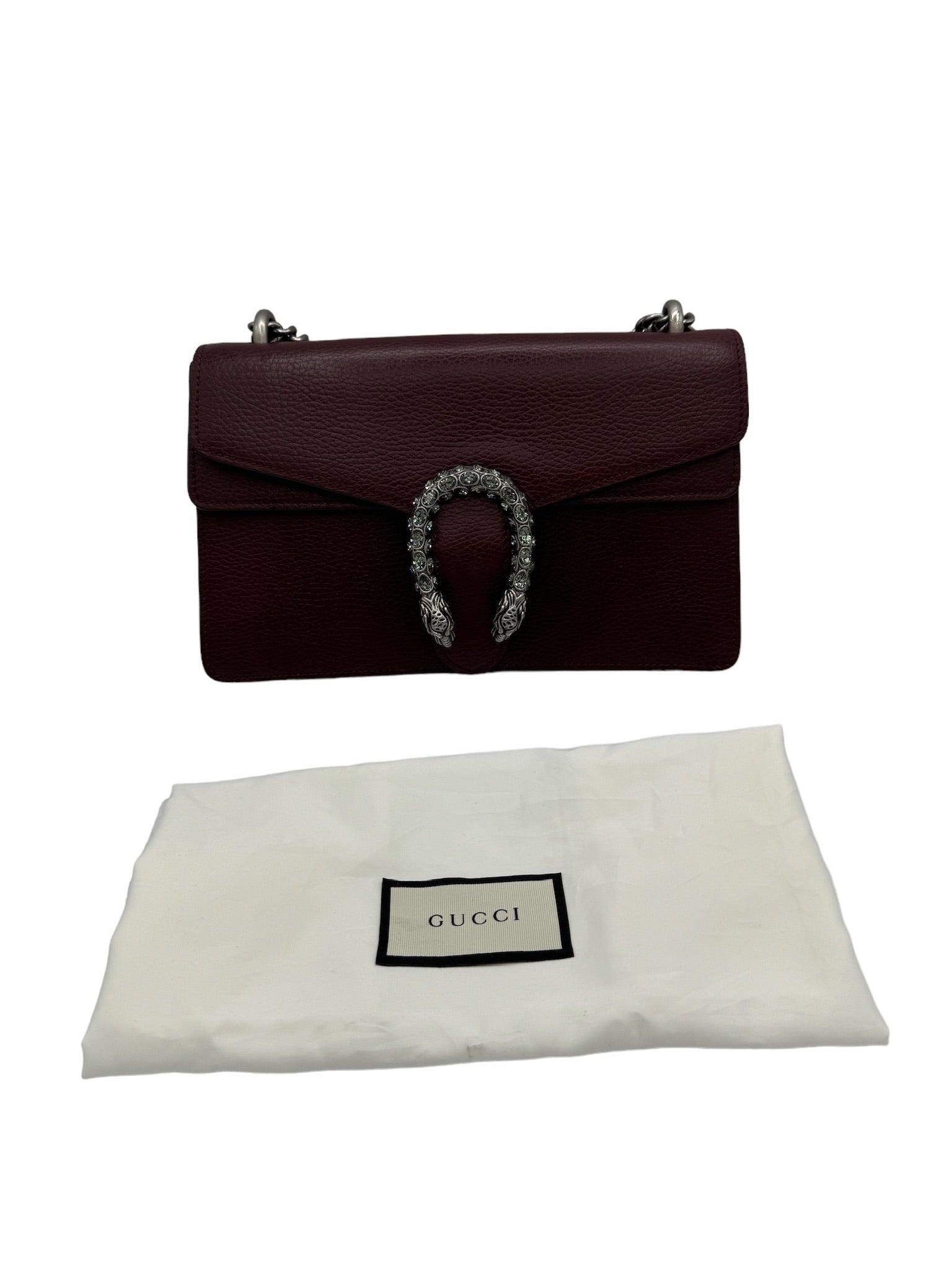 Introducing the GUCCI Dionysus Bordeaux Leather Shoulder Bag - a pre-owned, stylish and classic shoulder bag perfect for any occasion.