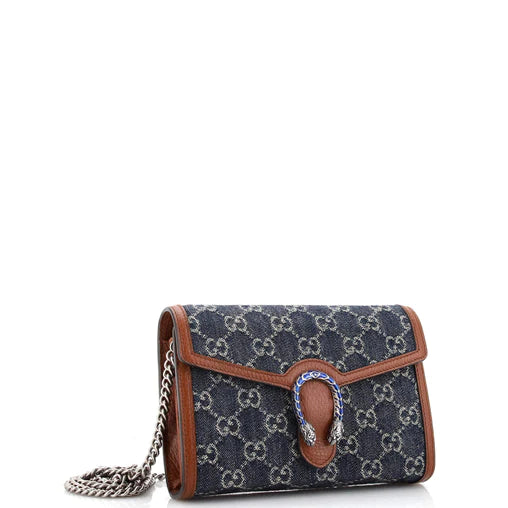 GUCCI - Dionysus Chain Wallet GG Denim Small